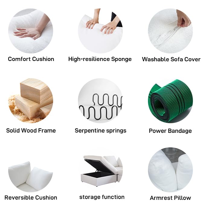 • 👪【Easy To Clean and Install】Each module's cover is detachable, washable, and replaceable. Multiple color cloth covers are available for selection and customization. making it very easy to maintain and clean the sofa. You can easily take off the covers for washing or replacement. This design not only offers convenience but also ensures that your sofa remains clean and tidy at all times.