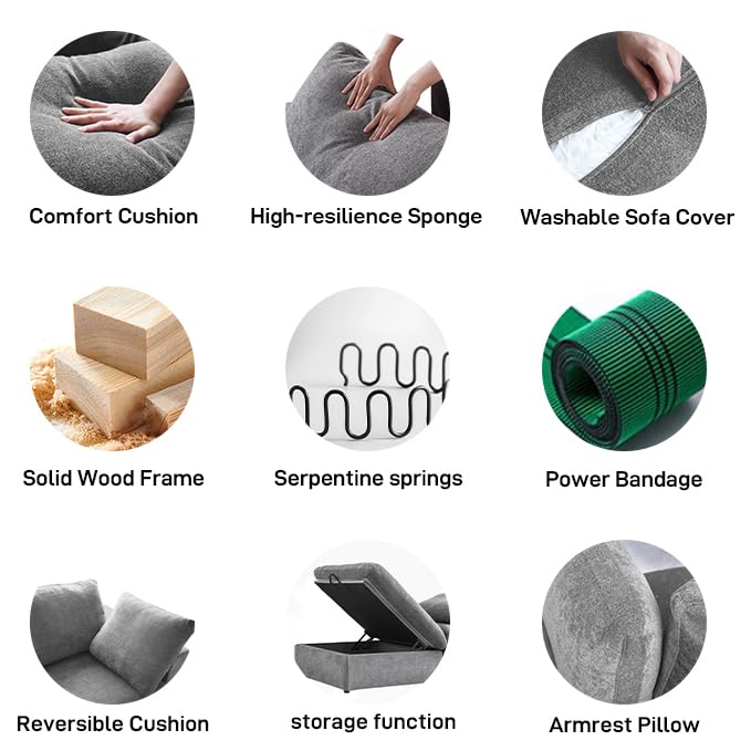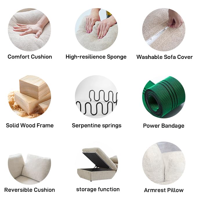 • 👪【Stable & Durable】The features a sturdy Solid Wood frame that provides stable support, ensuring excellent durability. The sofa fabric is high quality cotton and linen, skin-friendly, no pilling.The filling is high-quality sponge, down,Doll cotton, which does not collapse or deform after sitting for a long time. No matter how many people in your household use the sofa, it can withstand the test of time and provide long-lasting support and comfort.