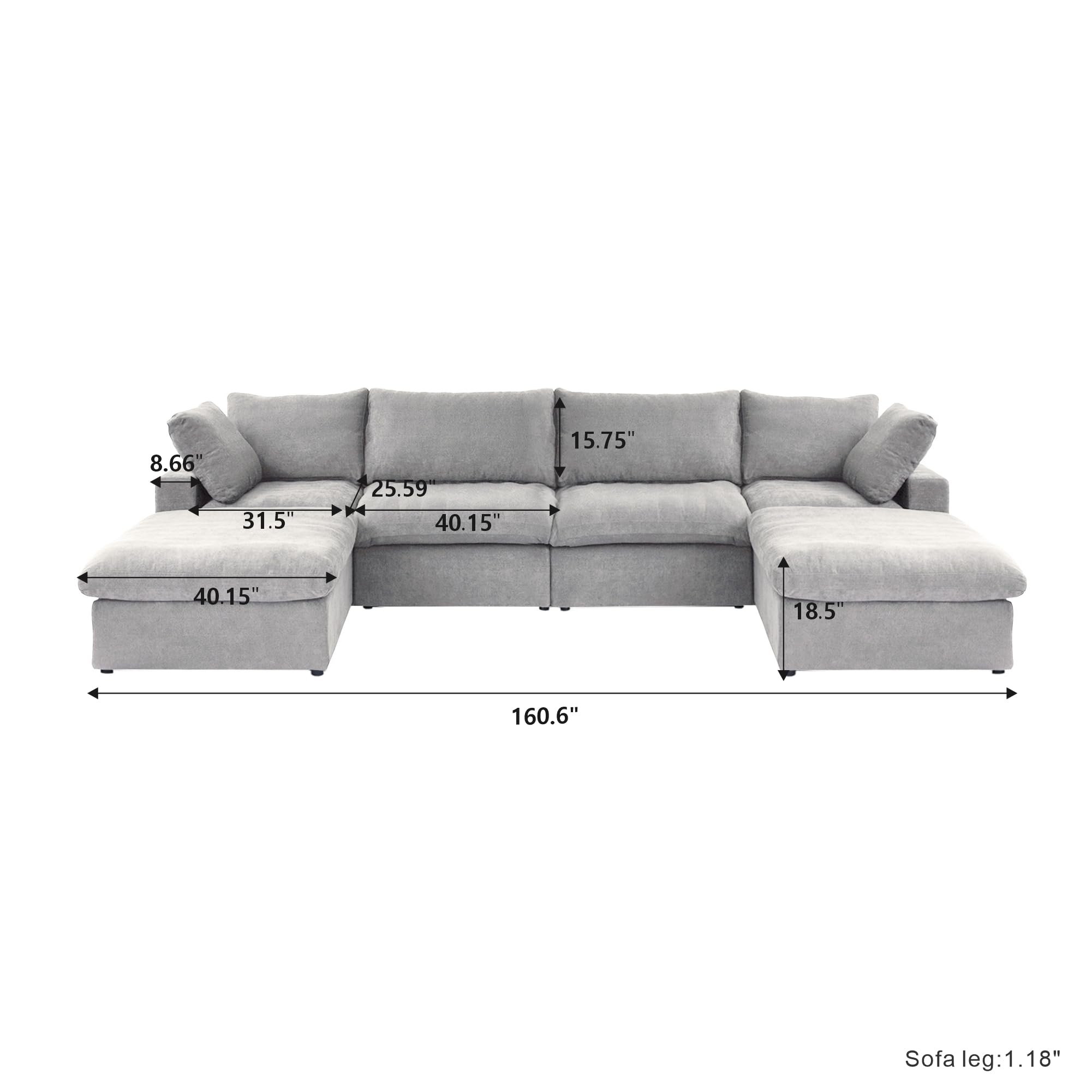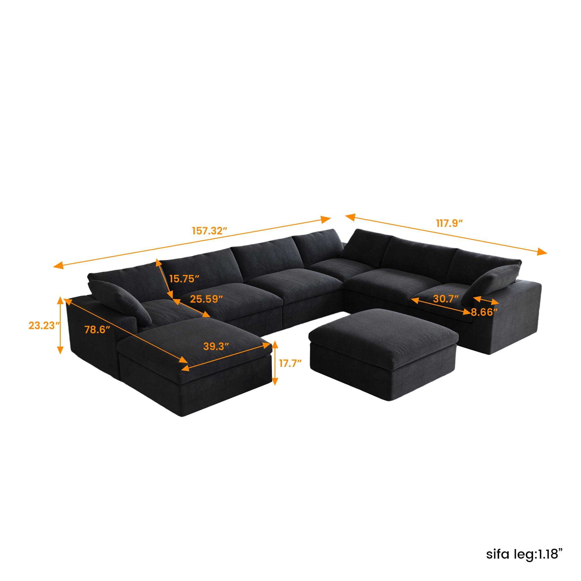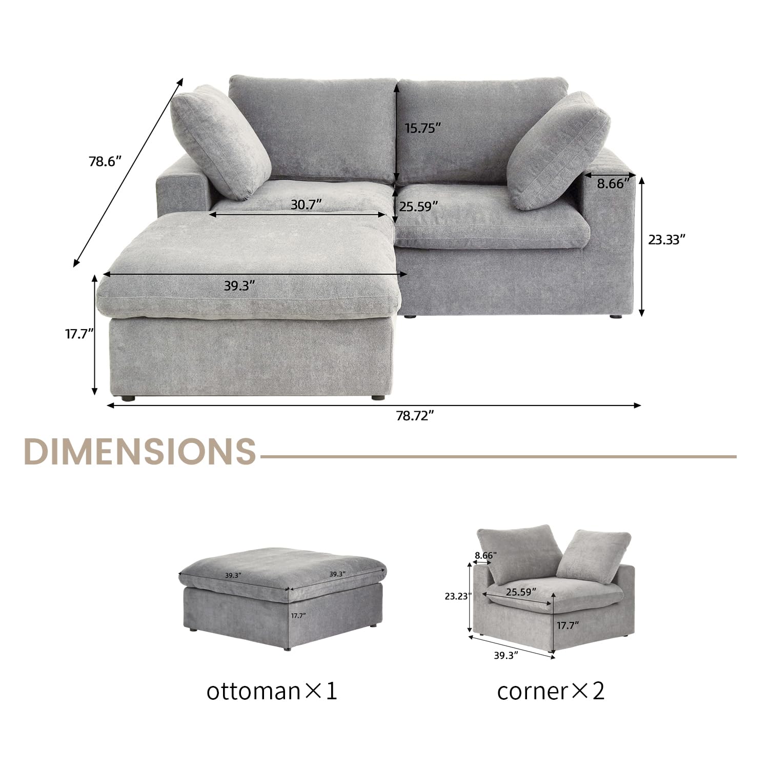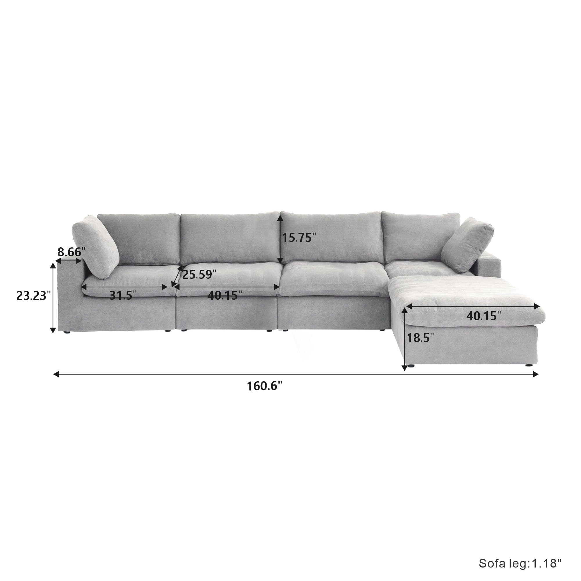 • 👪【Including】3 Seater Sofa + 2 Middle Sofas+1 Ottoman. 2 Pillows. Overall Size: 160.6 "W x 80.3"D x 23.23 "H. Sofa legs: 1.18" H. This item's simple and generous design, with coordinated color schemes, is suitable for various decoration styles