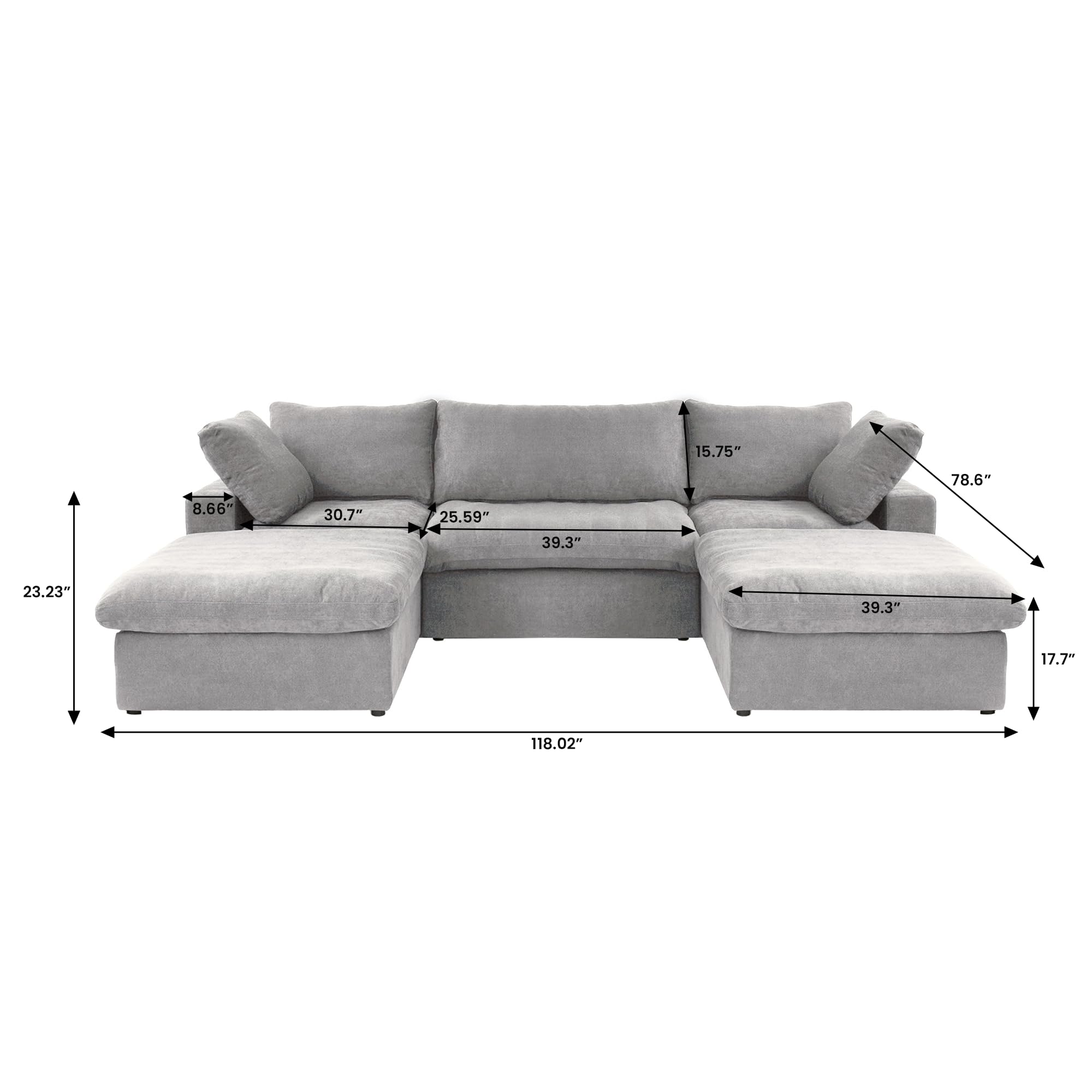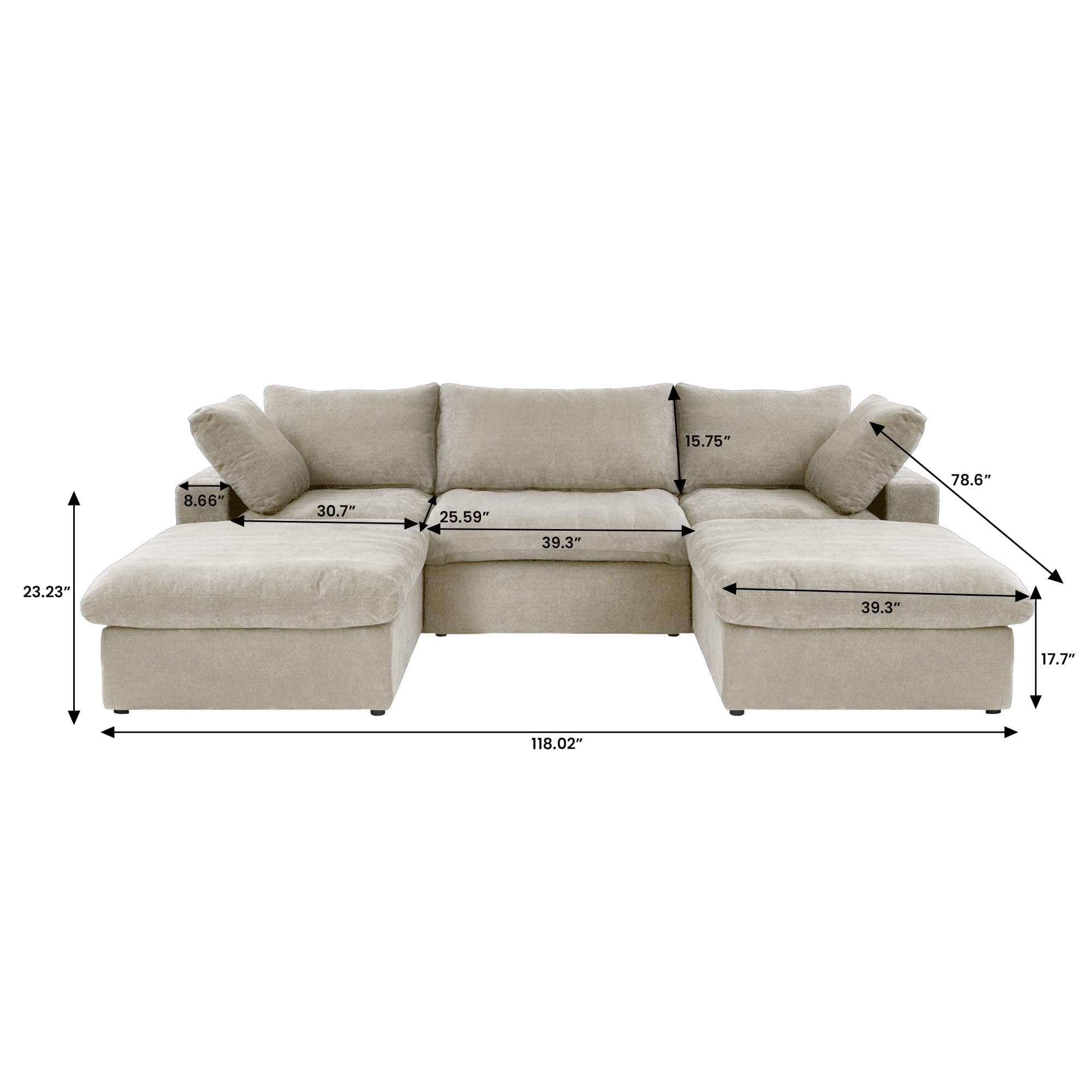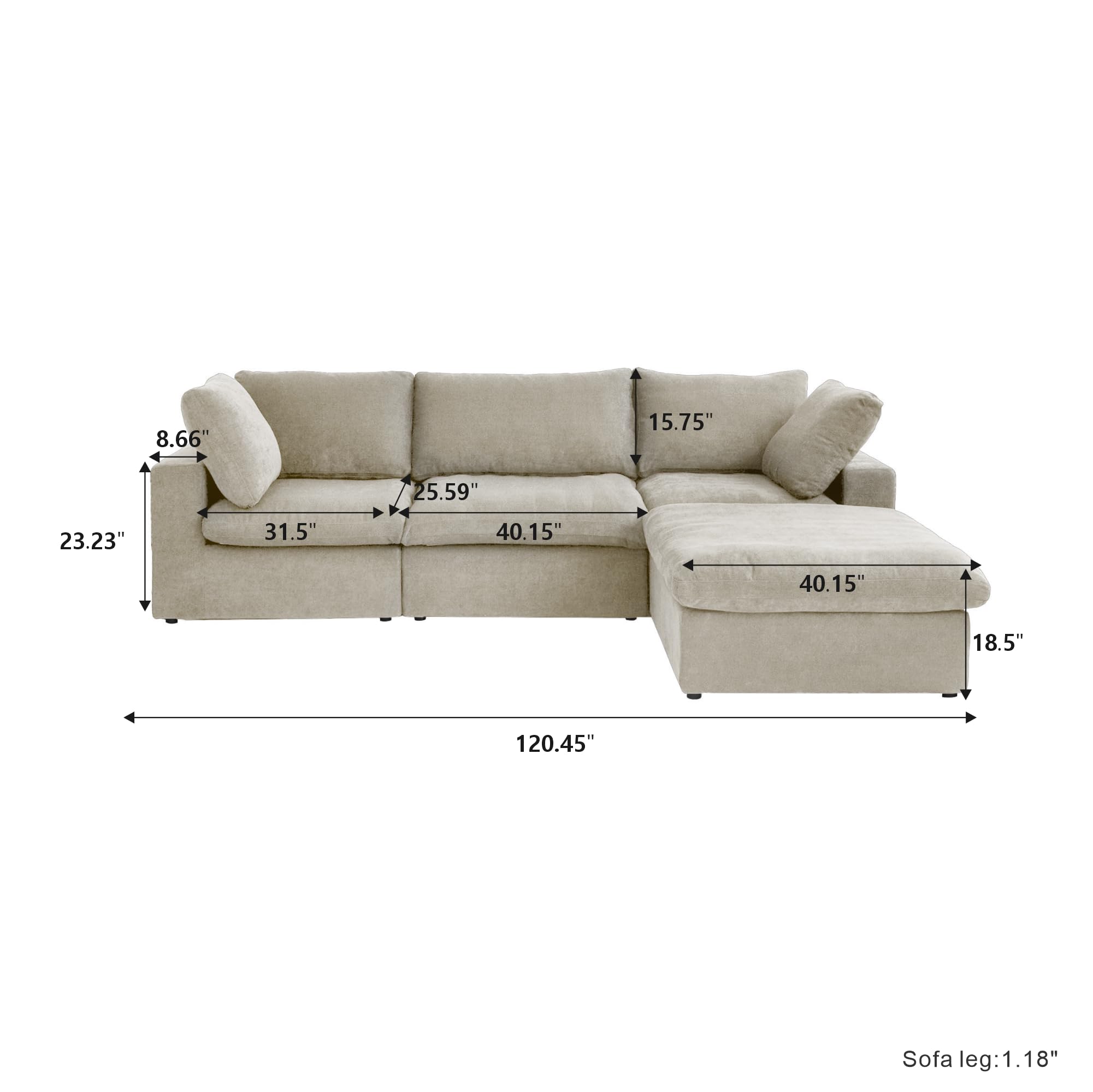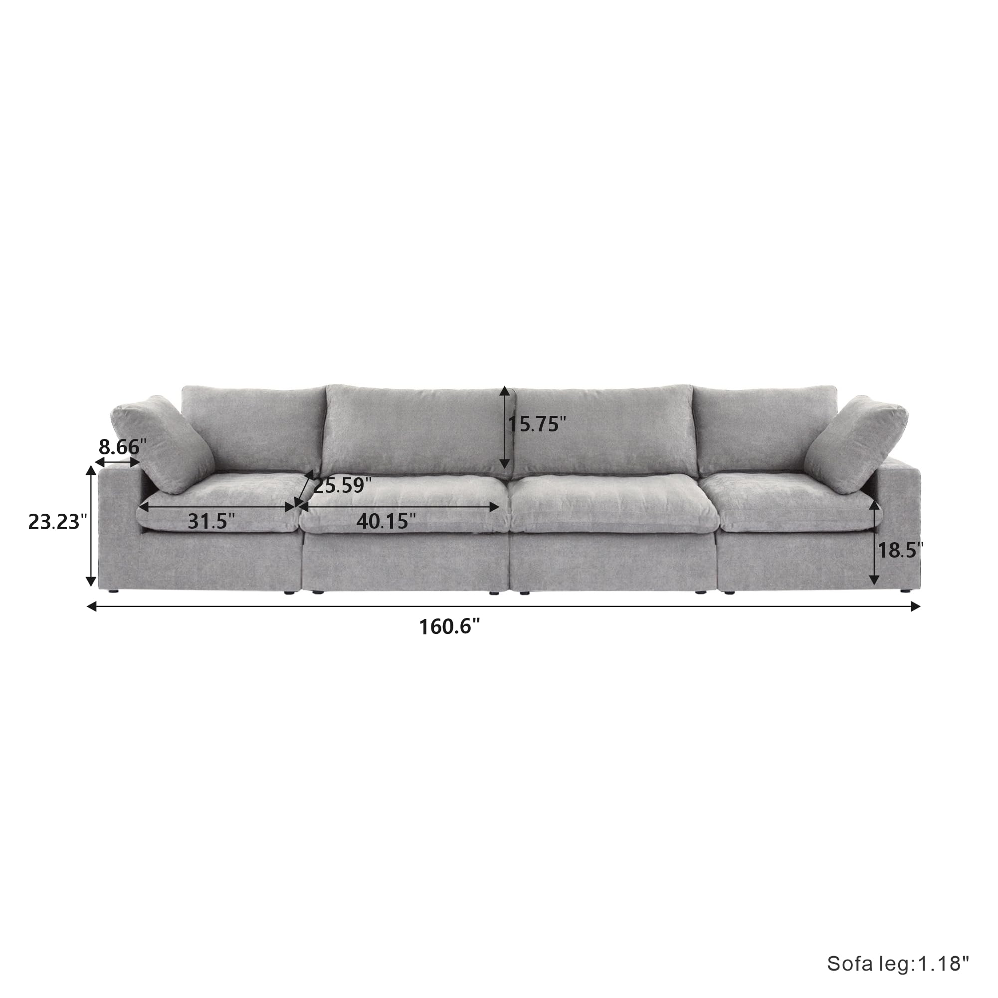 • 👪【Including】3 Seater Sofa + 2 Middle Sofas+1 Ottoman. 2 Pillows. Overall Size: 160.6 "W x 80.3"D x 23.23 "H. Sofa legs: 1.18" H. This item's simple and generous design, with coordinated color schemes, is suitable for various decoration styles