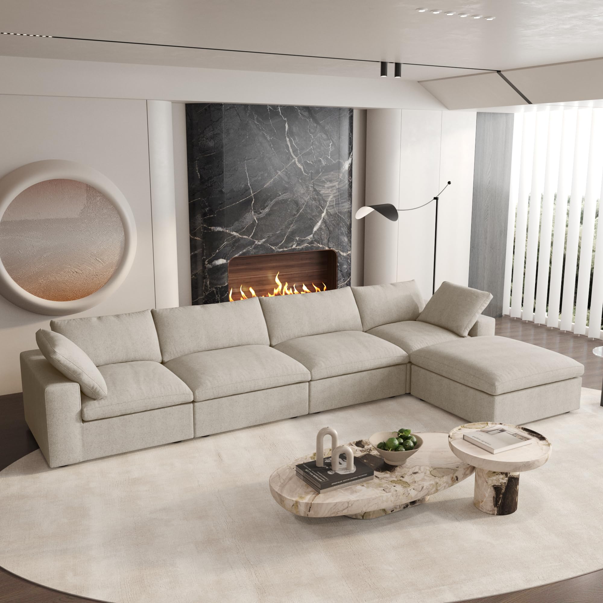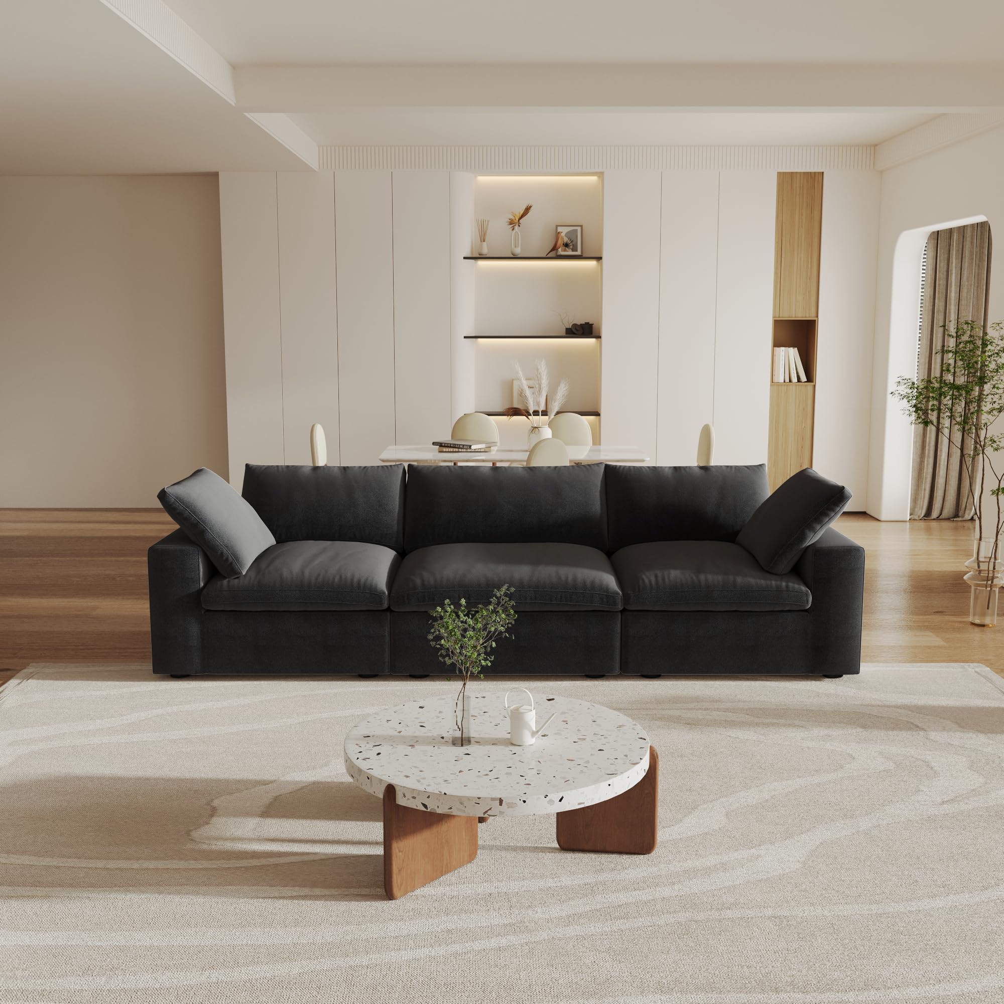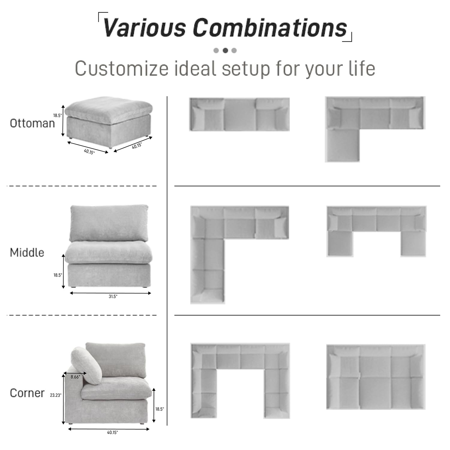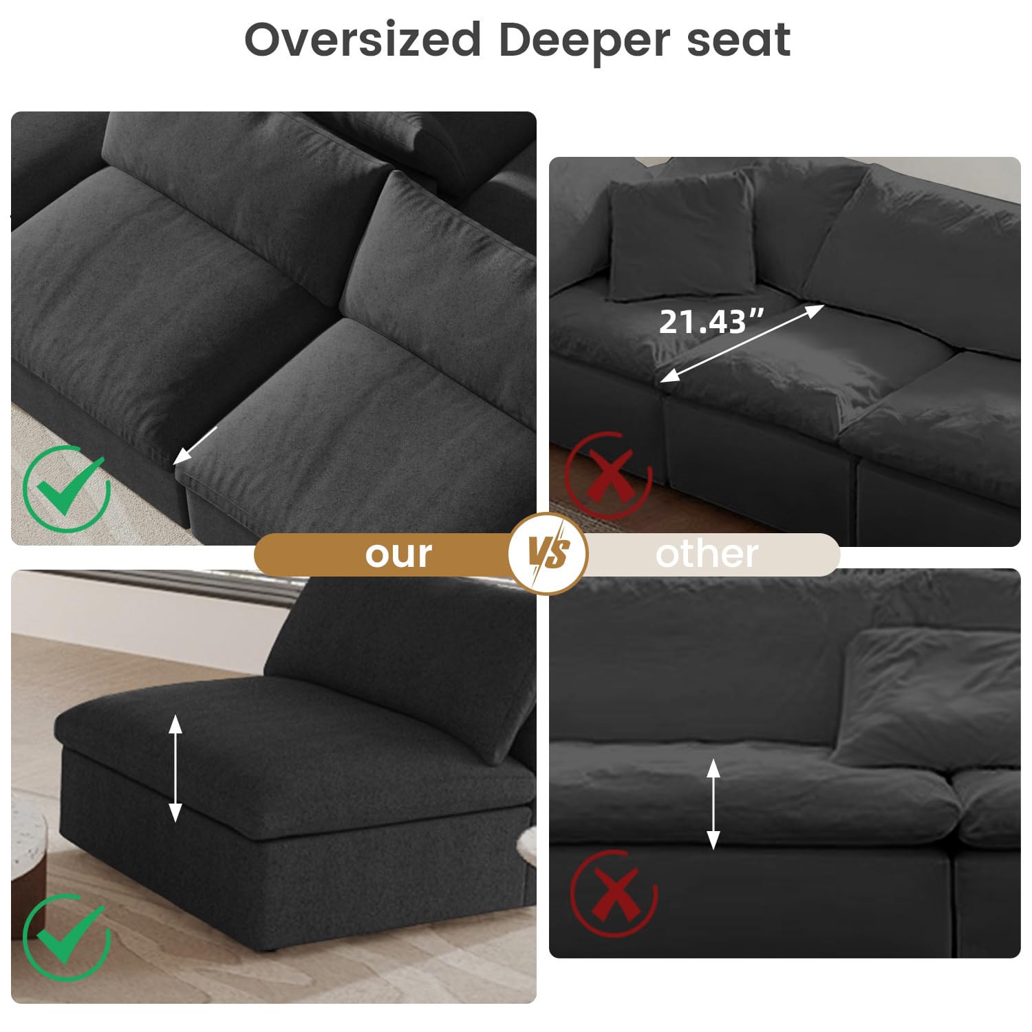 • 👪【Epitome Of Comfortable & Elegant】The Cloud Modular Sofa is filled with sponge and down feathers on the inside, providing a soft and comfortable feel, just like sitting on a cloud. Large sitting width, large sitting depth. Plenty of room to stretch out and relax. Whether you want to relax or enjoy a good read, this sofa will offer you an incredibly comfortable experience.