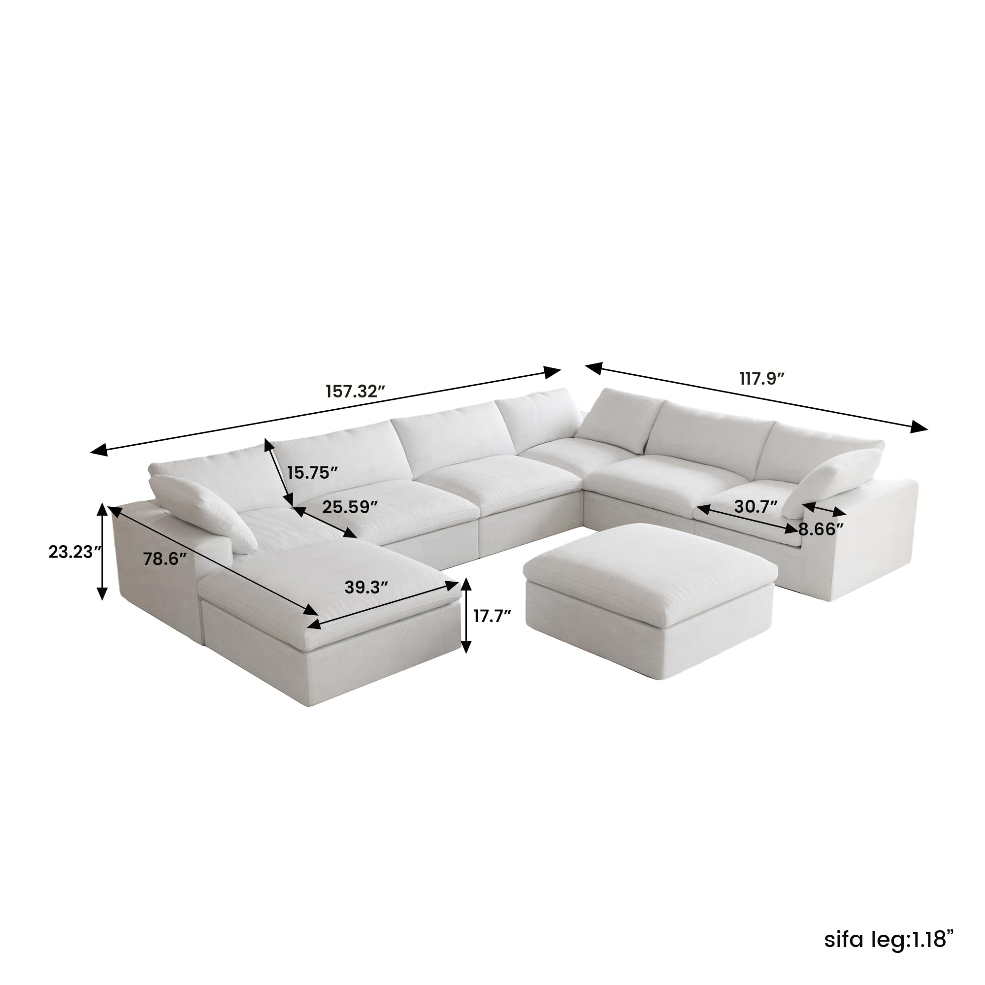 160.6" Cloud Couch Modular Sectional Sofa for Livingroom,Oversized Convertible Sofa with Storage Ottomans,6 Seat Wide Couches,Cushion Covers Removable (Khaki, 6 Seater)