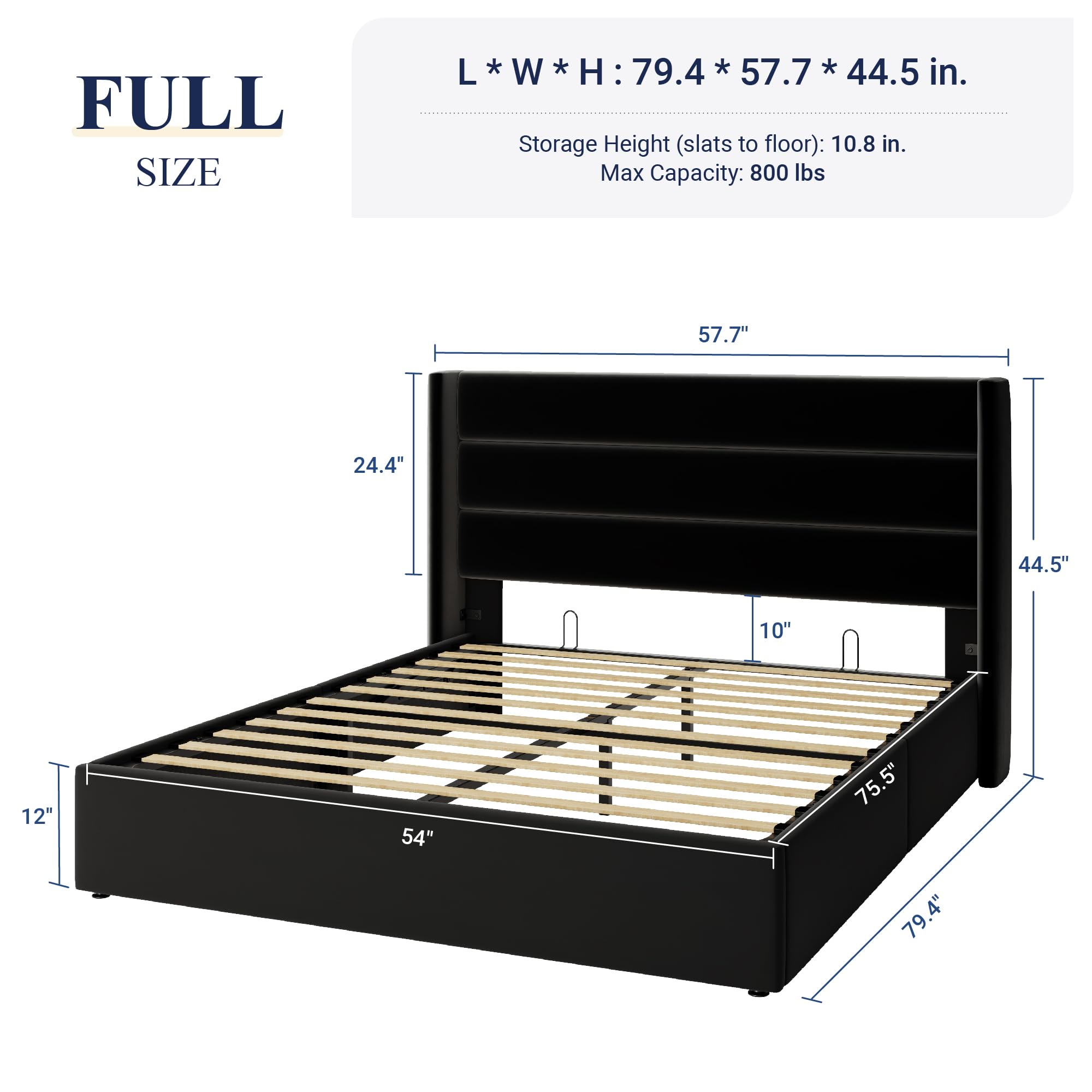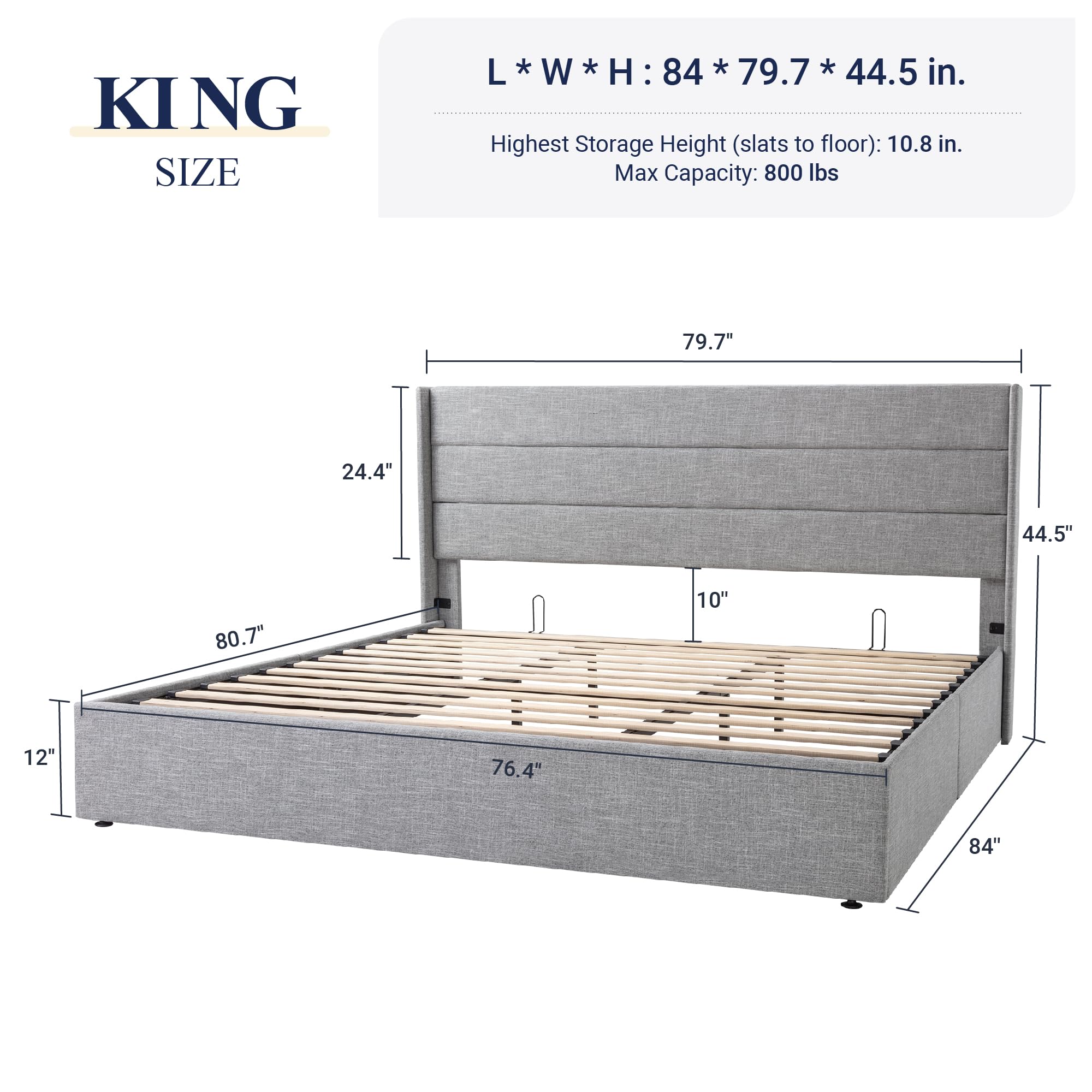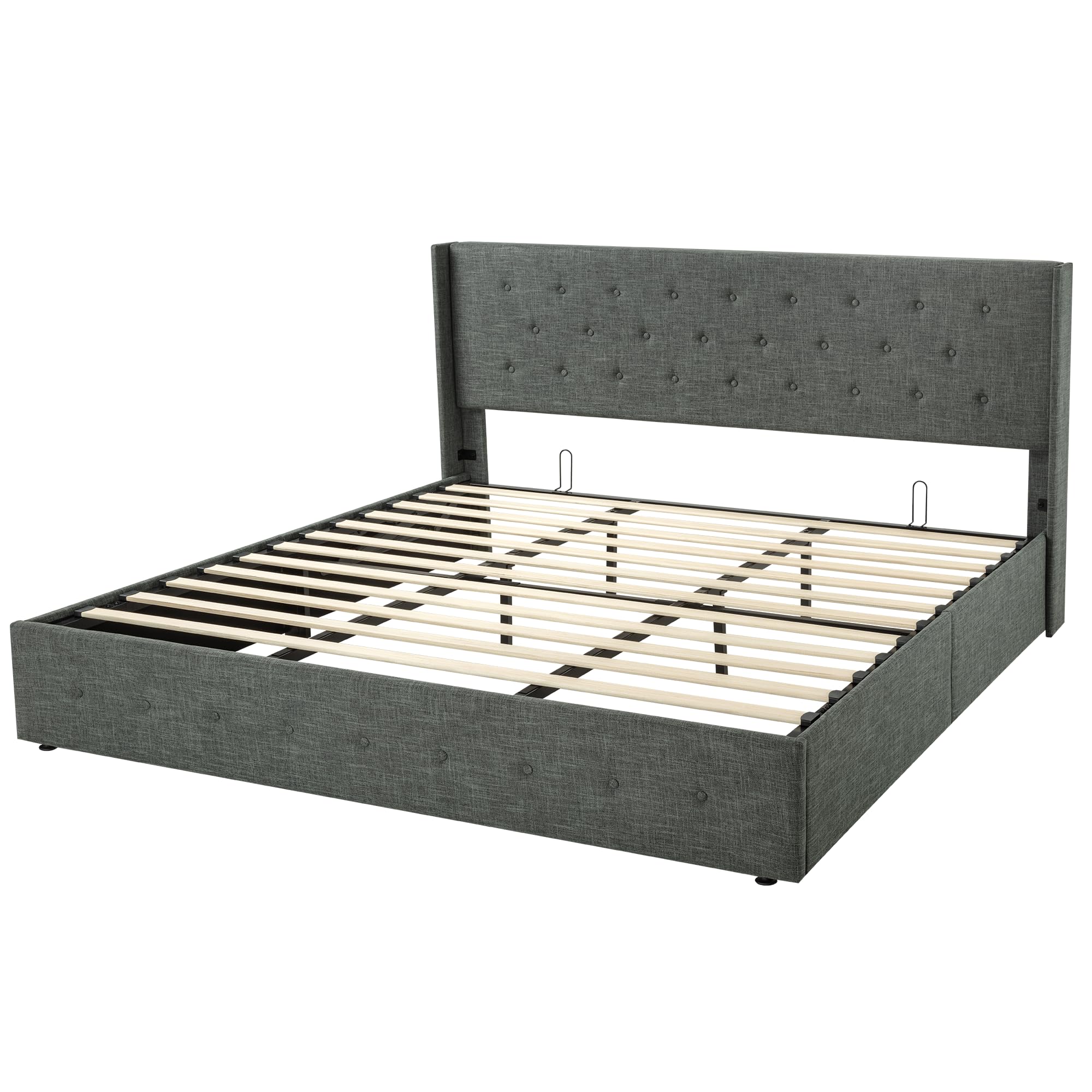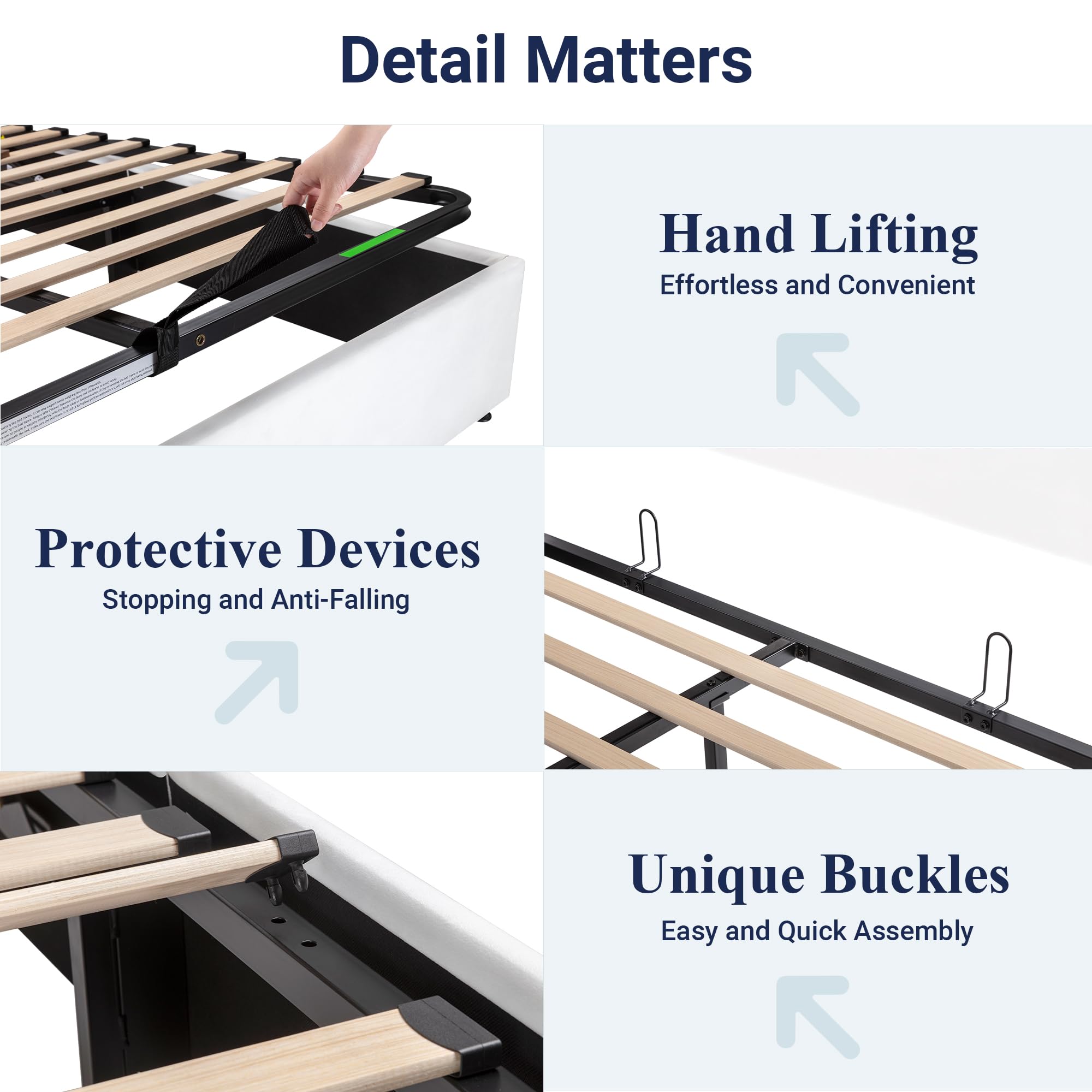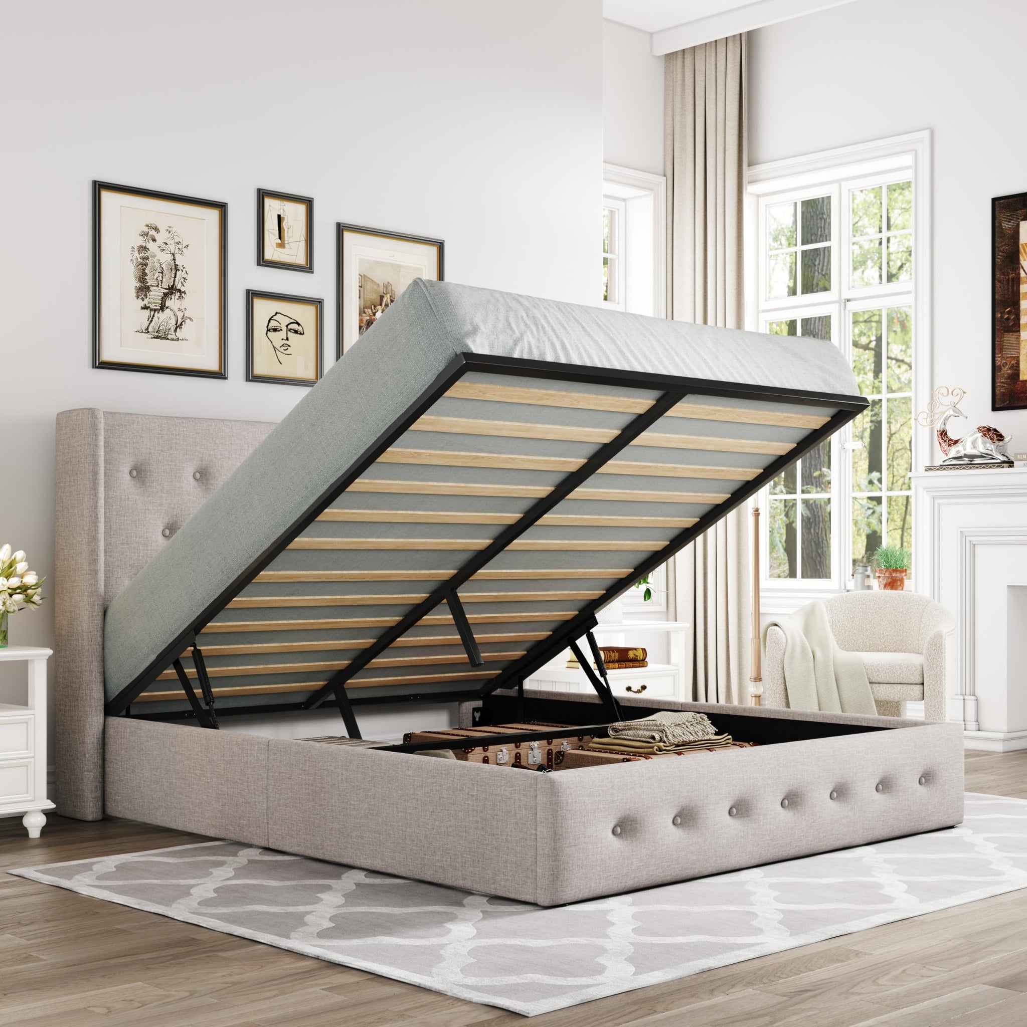 Space-Saving Storage: With its lifting up storage feature, this bed frame provides ample space to store extra bedding, clothing, shoes, and other items, especially helpful for smaller bedrooms or apartments where storage space is limited