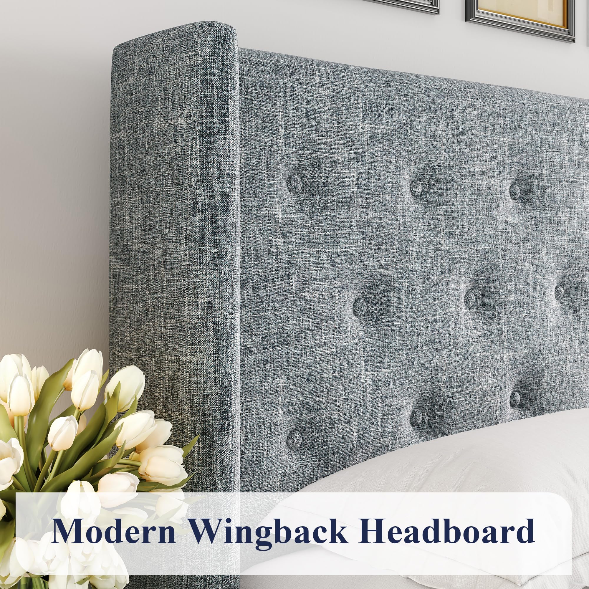 Elegant Headboard: High wingback headboard adds elegant aesthetics to your bedroom. Horizontal channel pattern illuminates stylish and minimalist trends