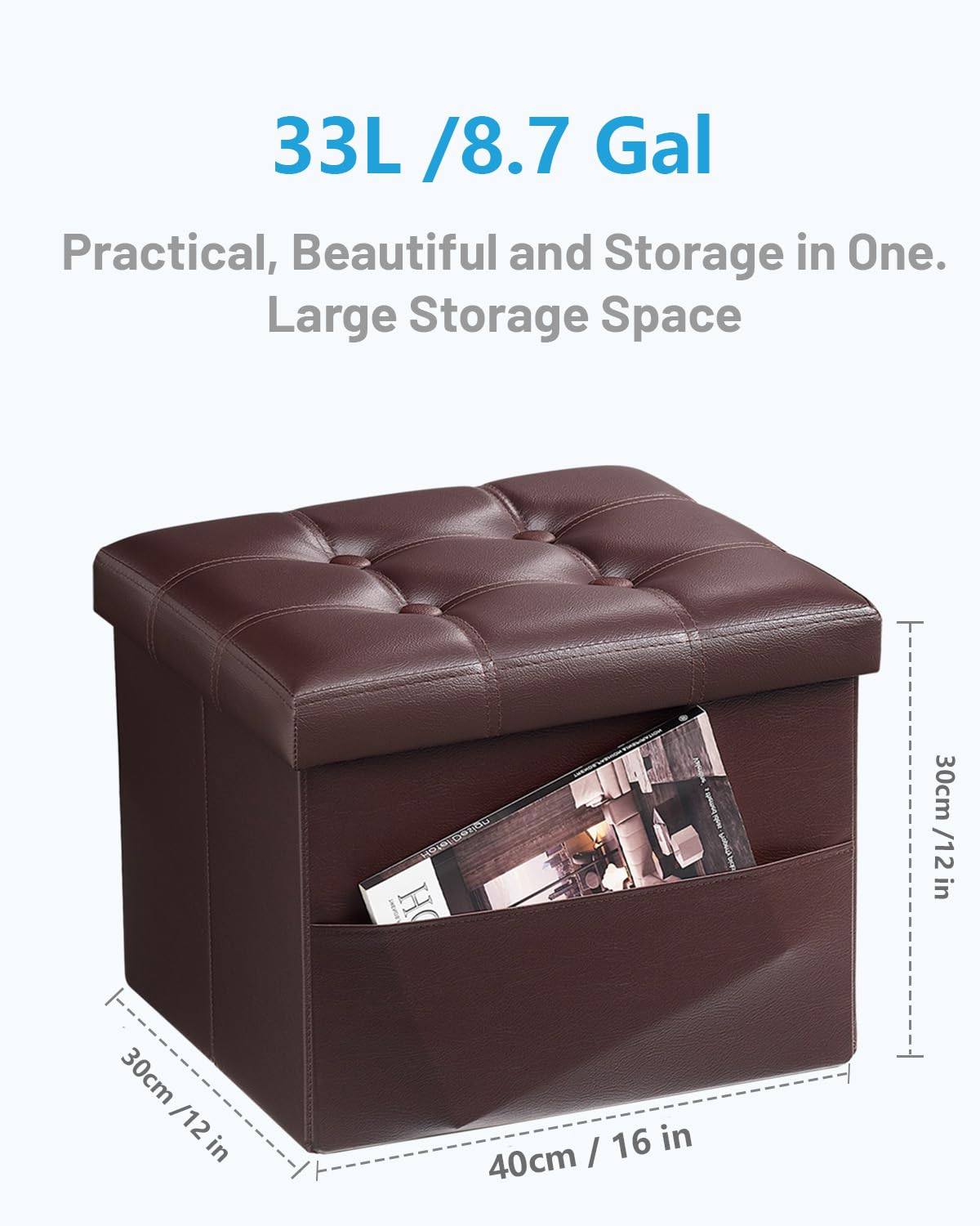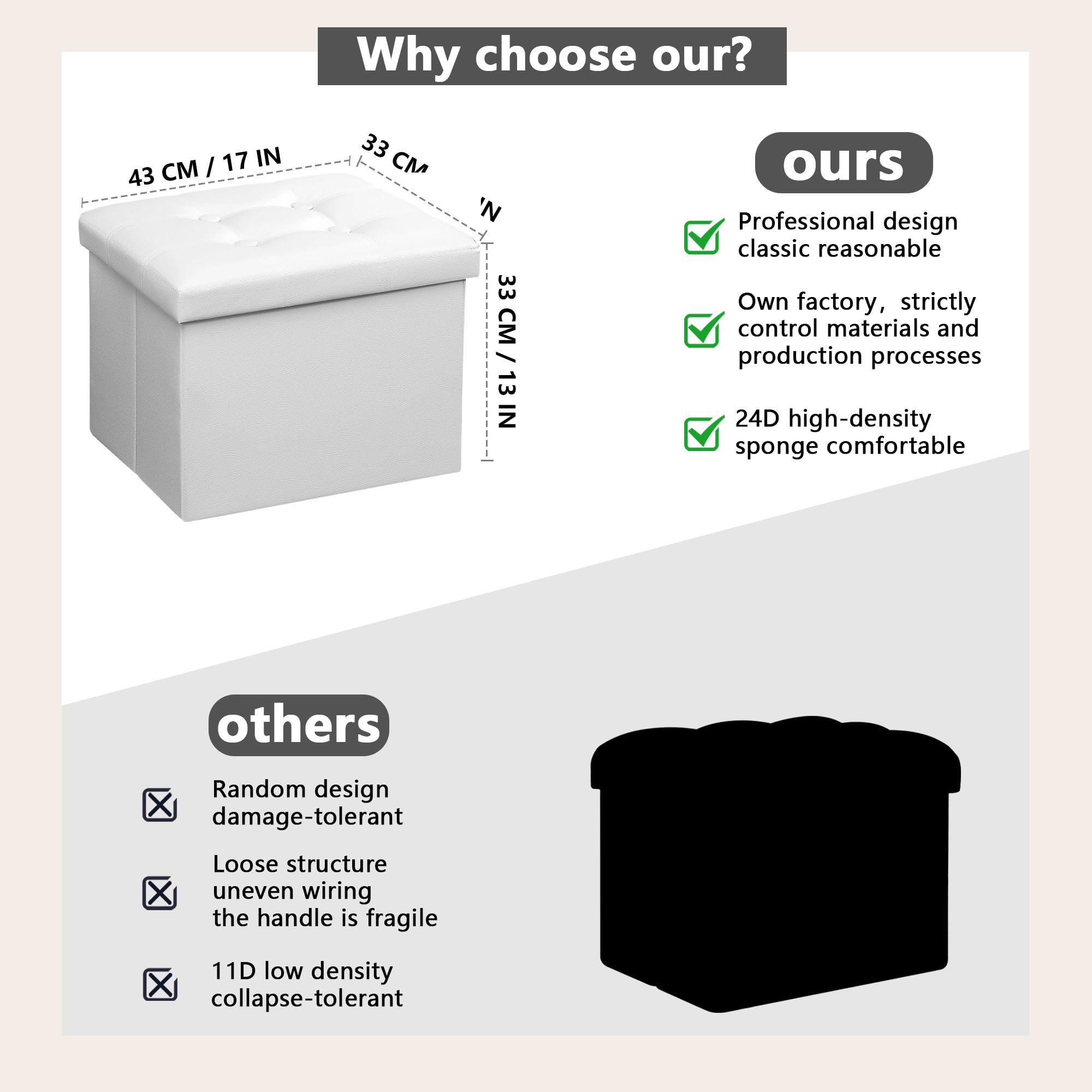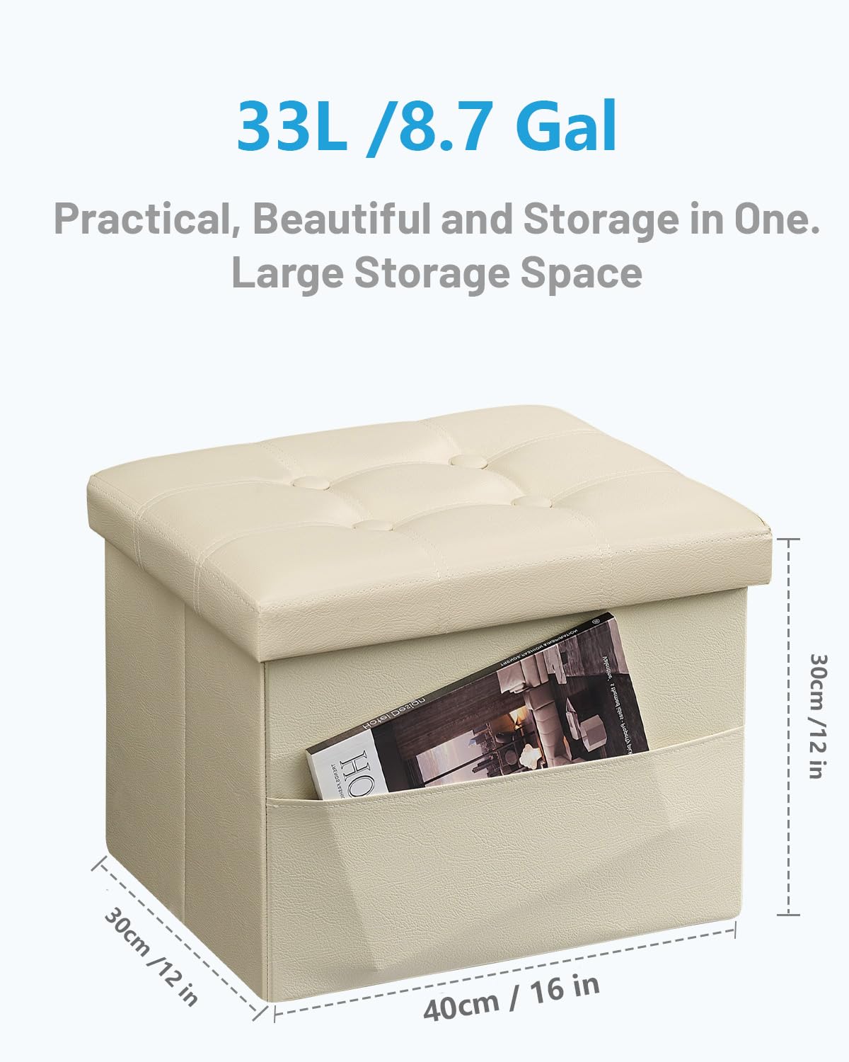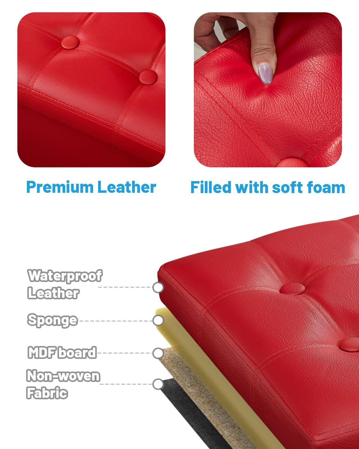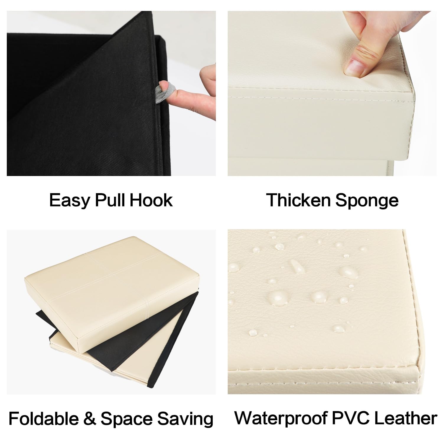 • 【Comfortable and Durable】This storage footstool is made of high-end leather fabric, which is odor-free, filled with high-resilience foam inside, and the thick cushioning pad brings you a more comfortable experience when you sit or rest your feet. Our folding storage foot rest can durable construction ensures that the ottoman will last in your home for long periods of time.