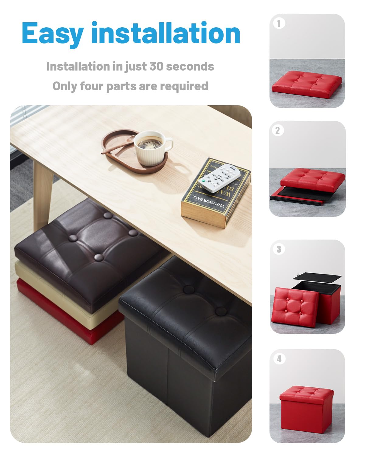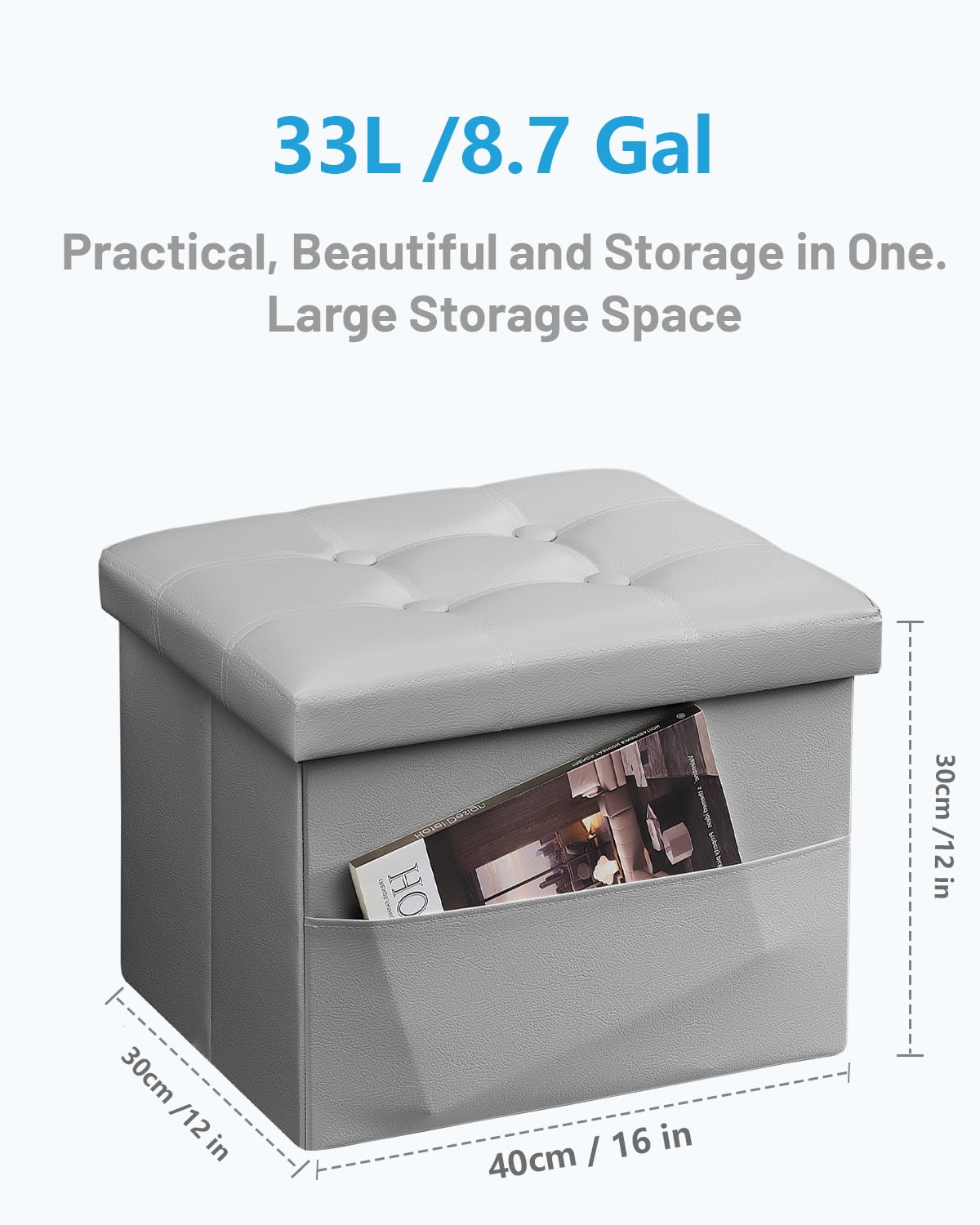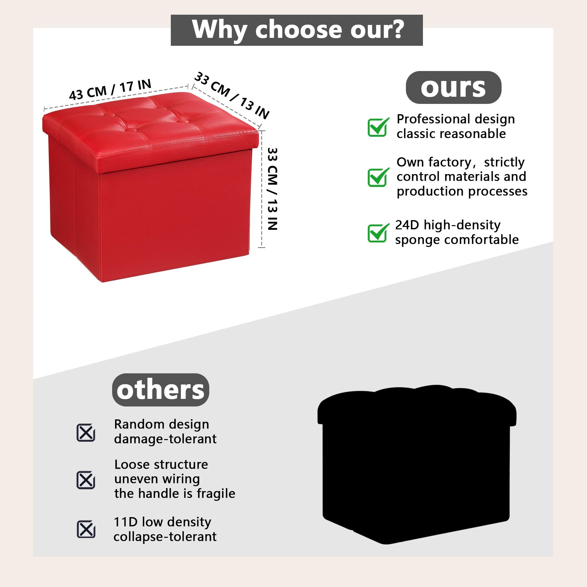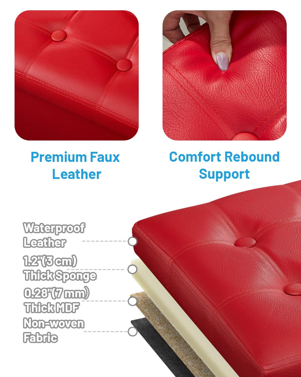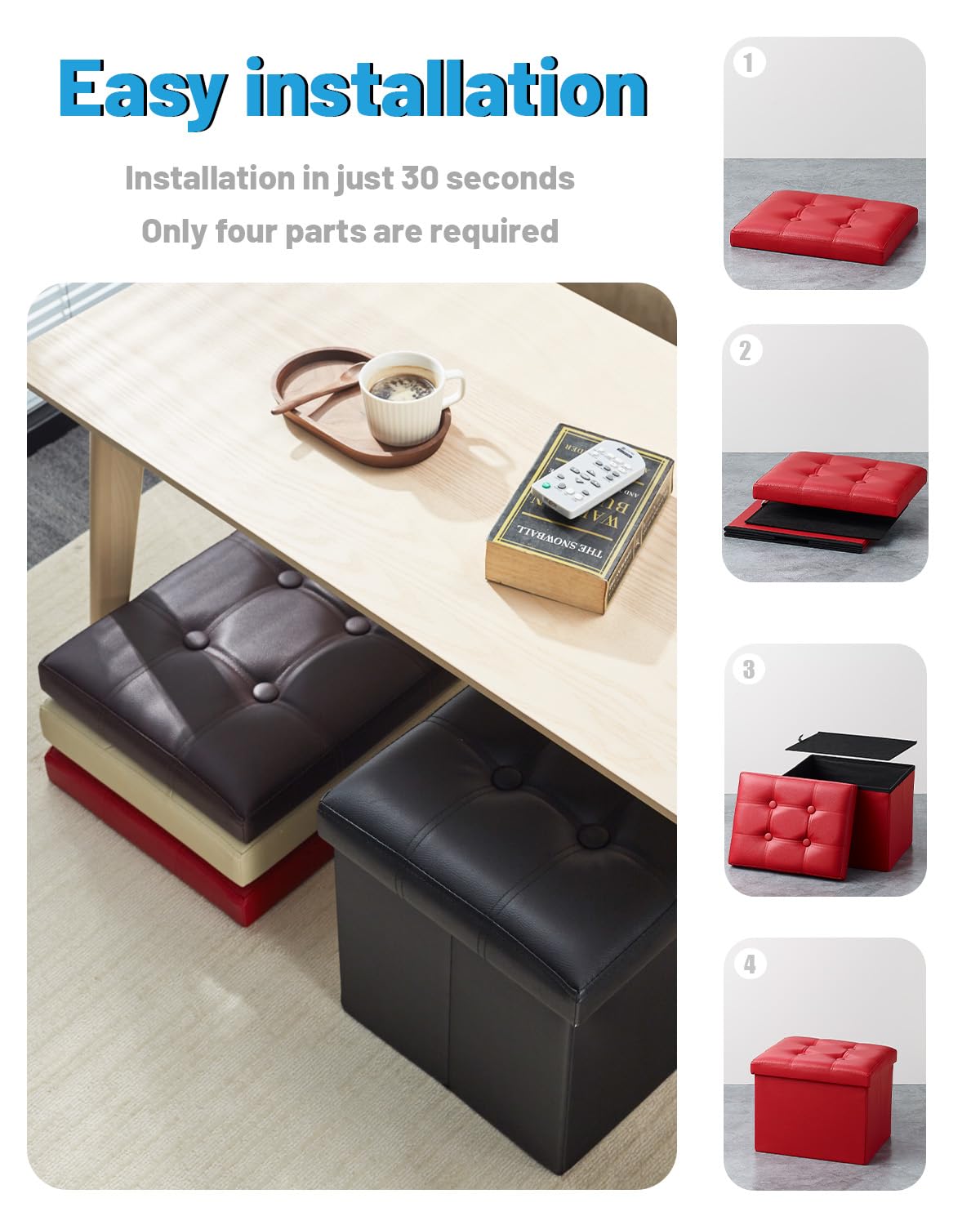 • 【Comfortable and Durable】This storage footstool is made of high-end leather fabric, which is odor-free, filled with high-resilience foam inside, and the thick cushioning pad brings you a more comfortable experience when you sit or rest your feet. Our folding storage foot rest can durable construction ensures that the ottoman will last in your home for long periods of time.