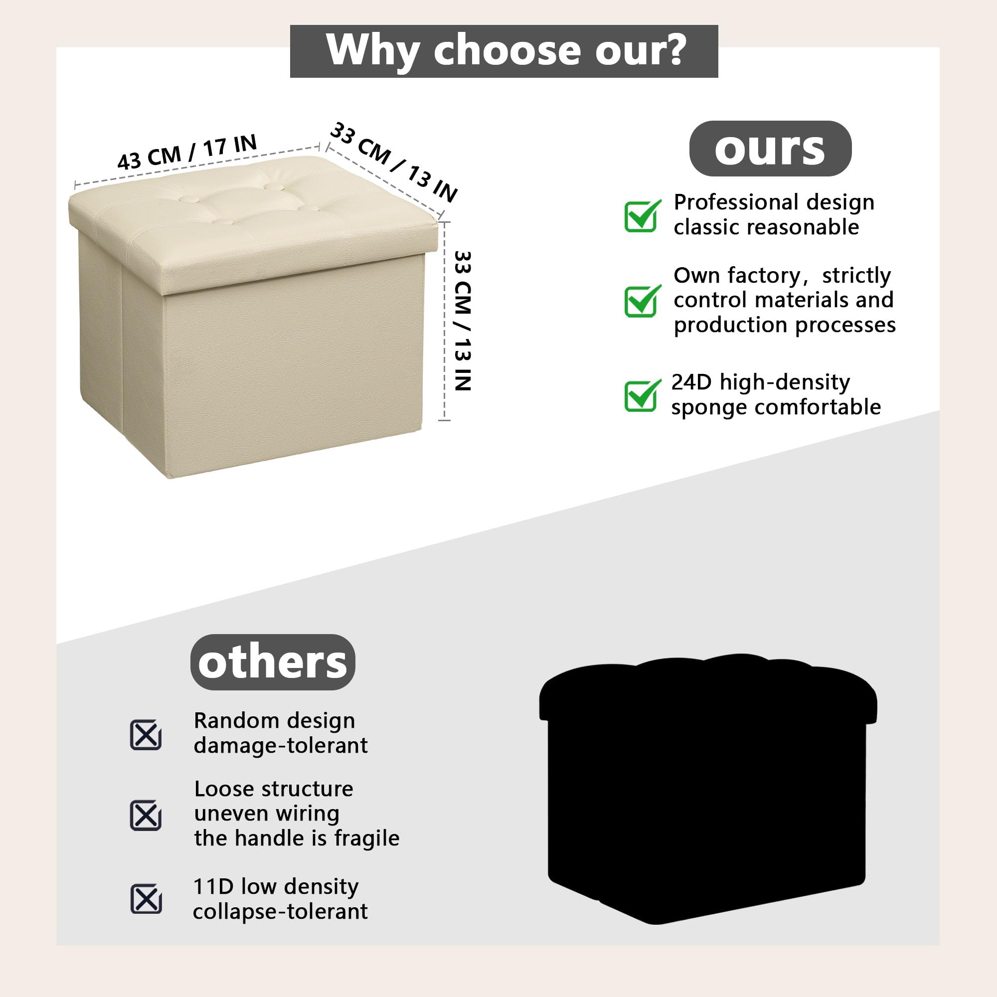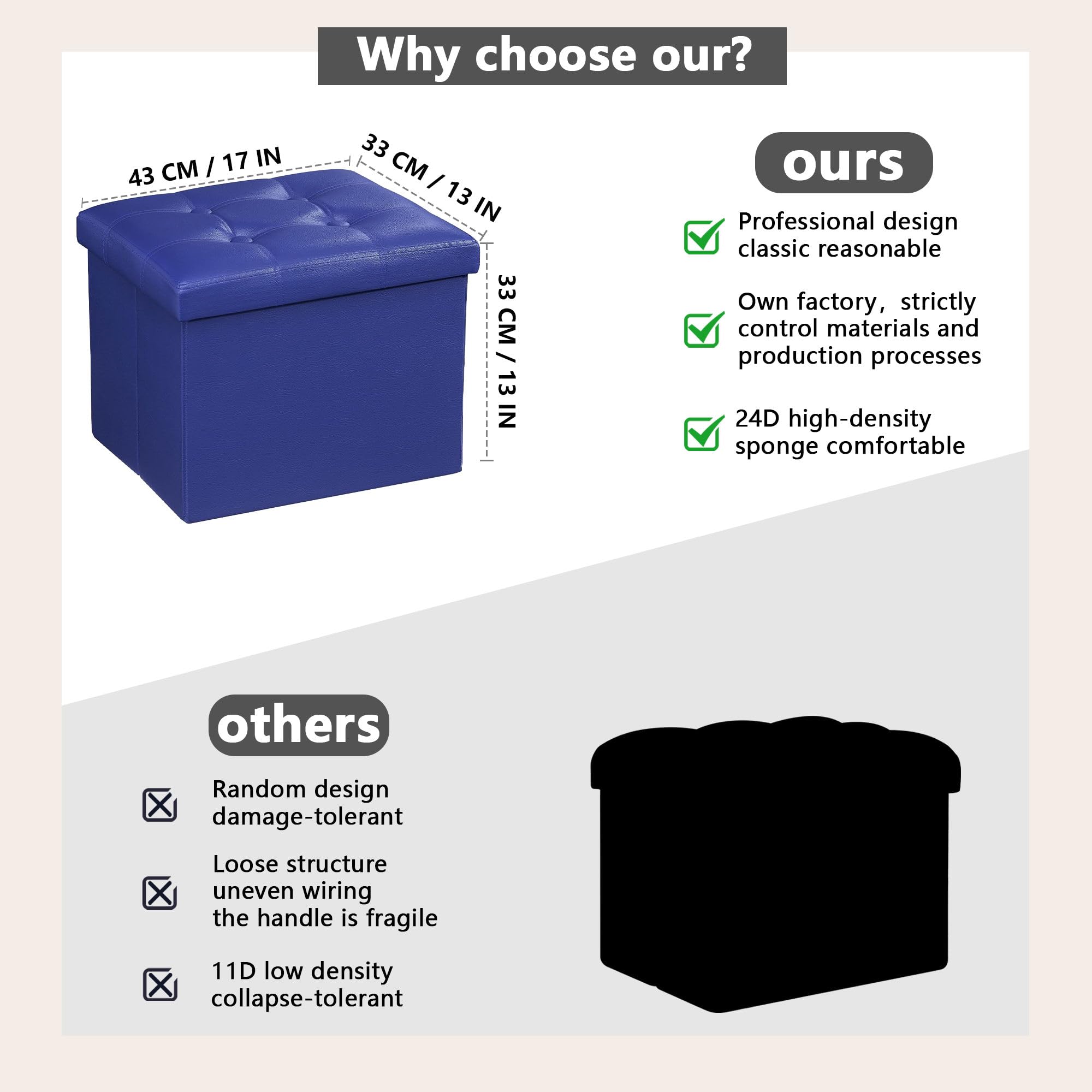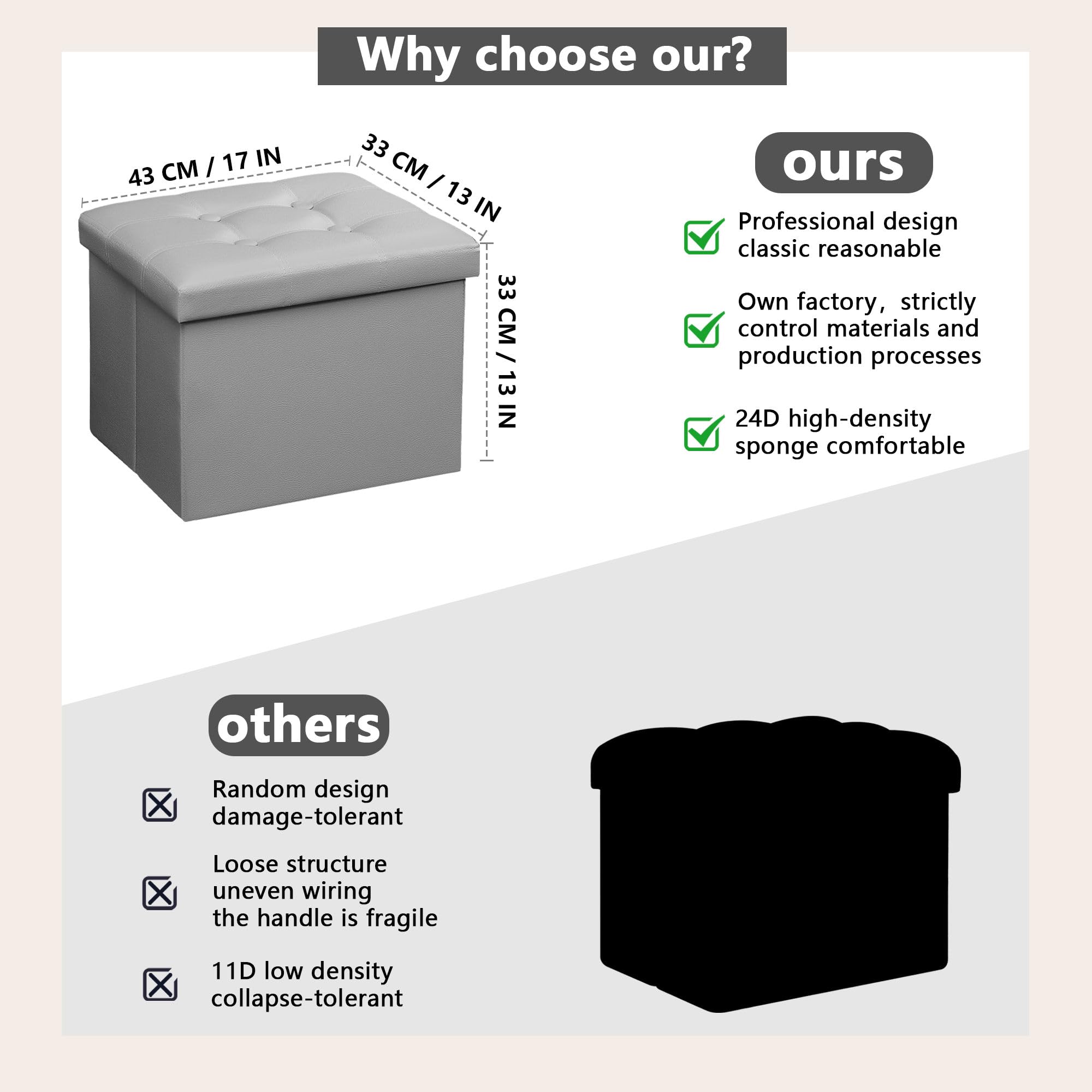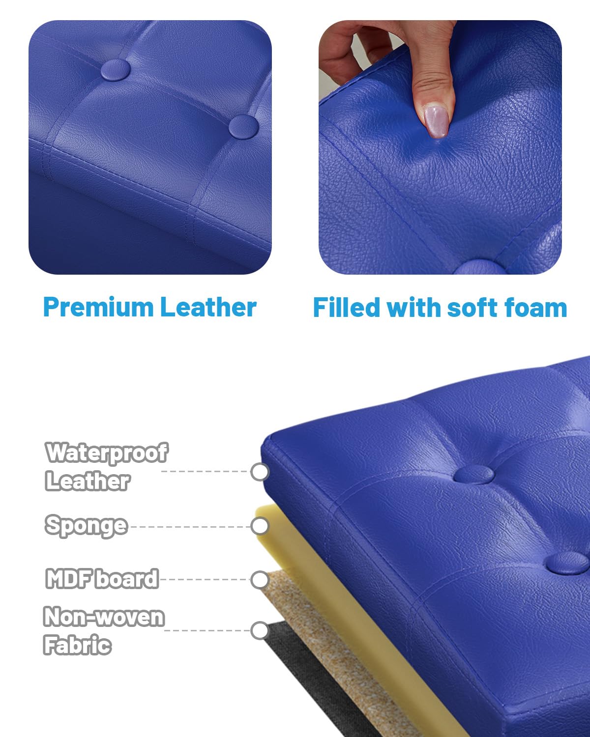 • 【Comfortable and Durable】This storage footstool is made of high-end leather fabric, which is odor-free, filled with high-resilience foam inside, and the thick cushioning pad brings you a more comfortable experience when you sit or rest your feet. Our folding storage foot rest can durable construction ensures that the ottoman will last in your home for long periods of time.