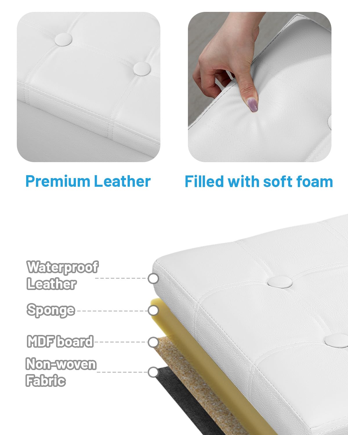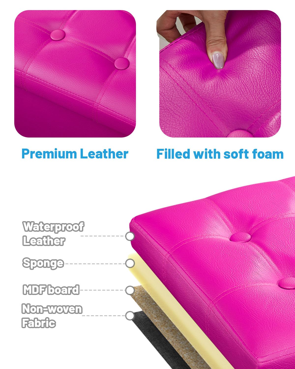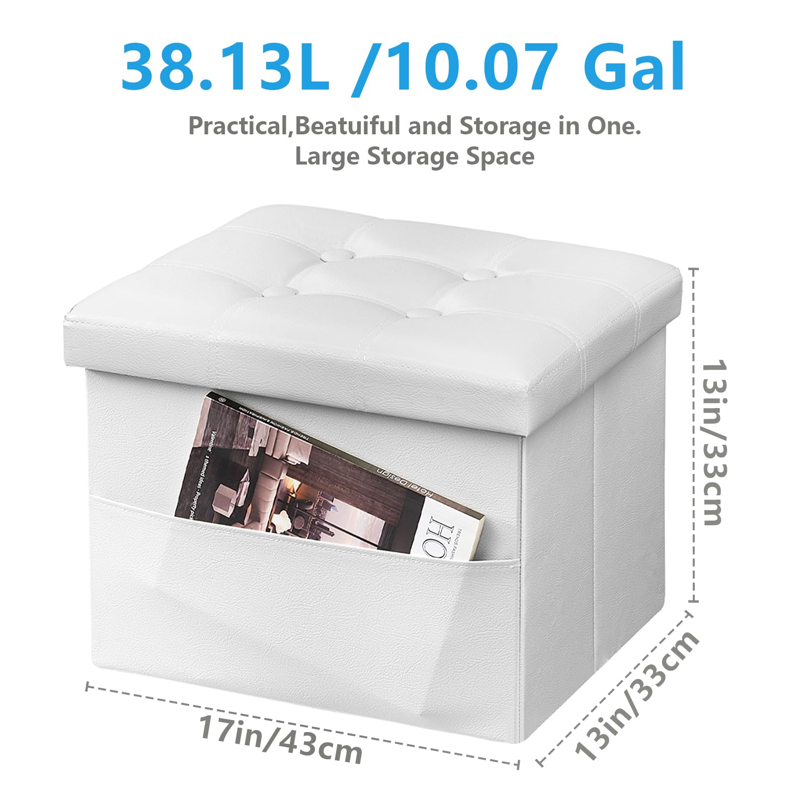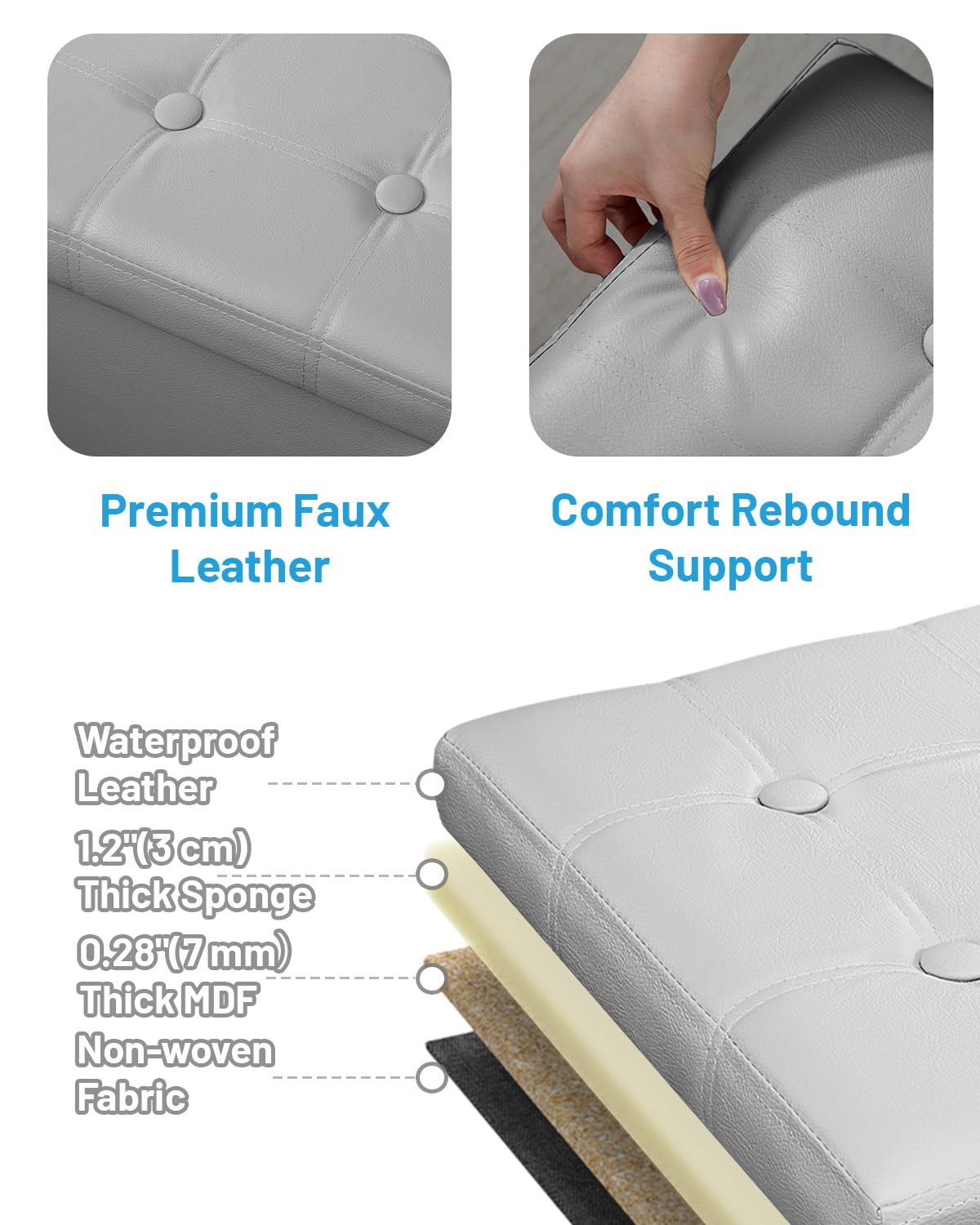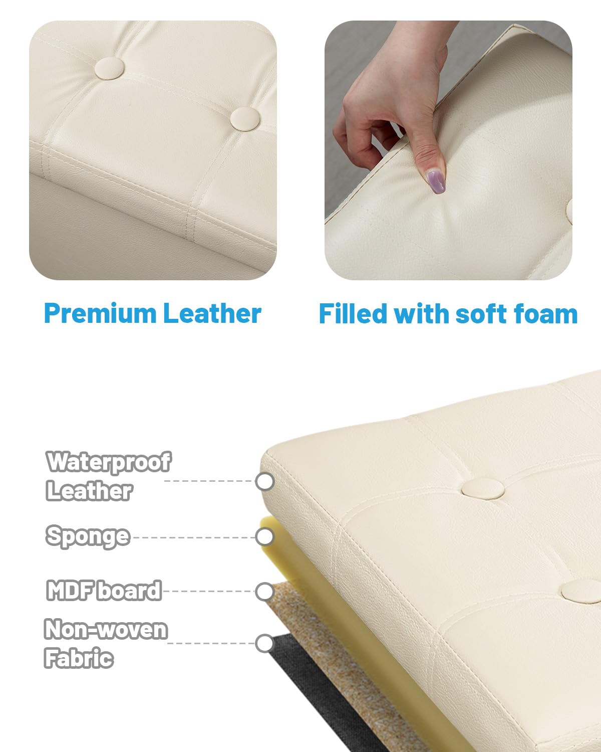 • 【Comfortable and Durable】This storage footstool is made of high-end leather fabric, which is odor-free, filled with high-resilience foam inside, and the thick cushioning pad brings you a more comfortable experience when you sit or rest your feet. Our folding storage foot rest can durable construction ensures that the ottoman will last in your home for long periods of time.