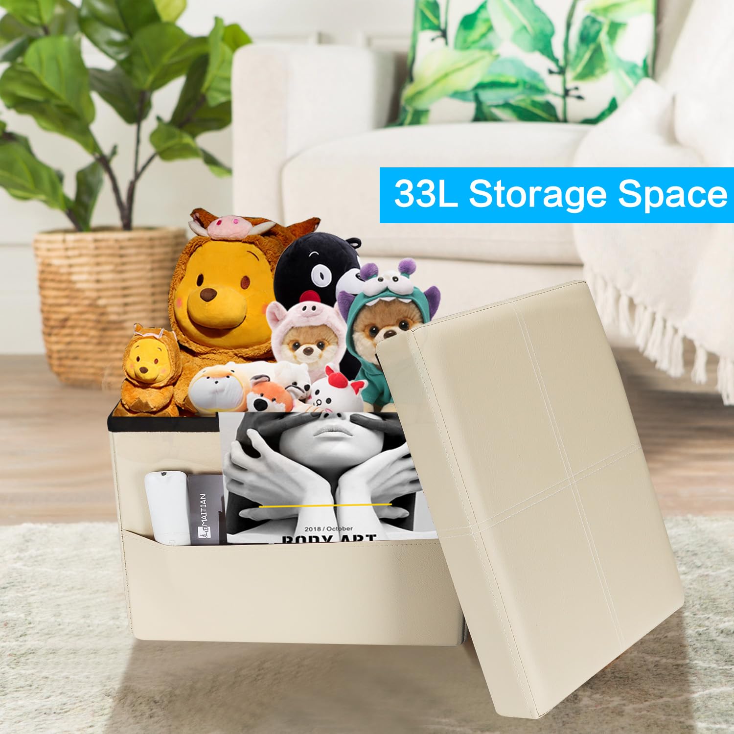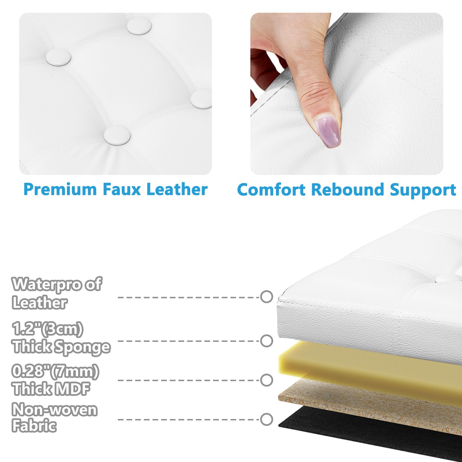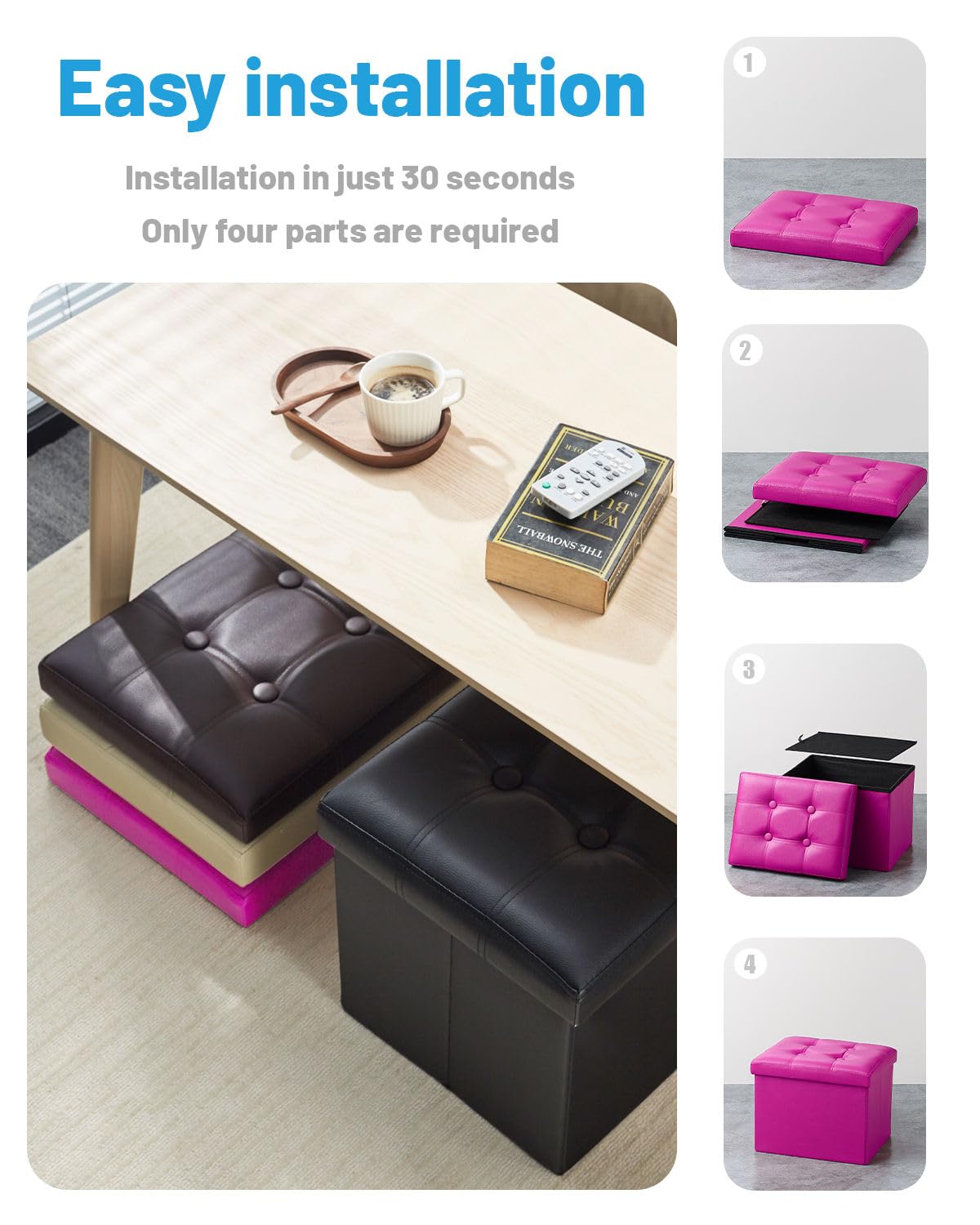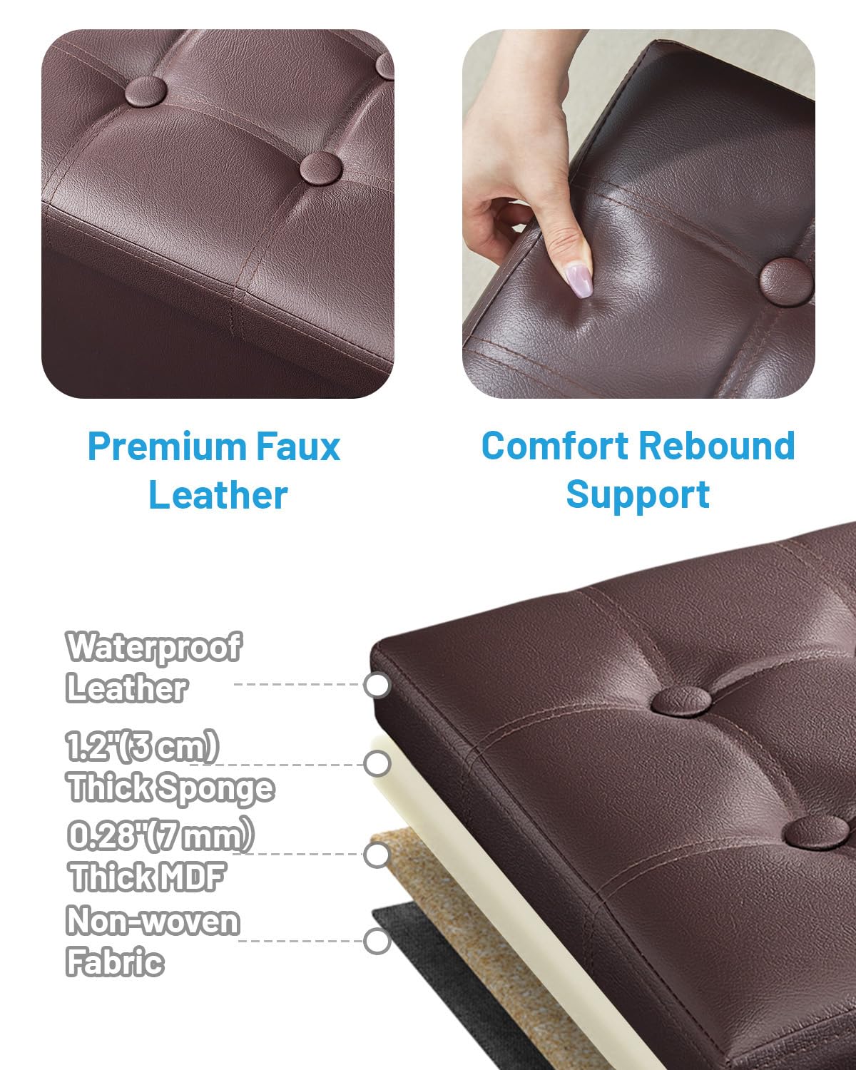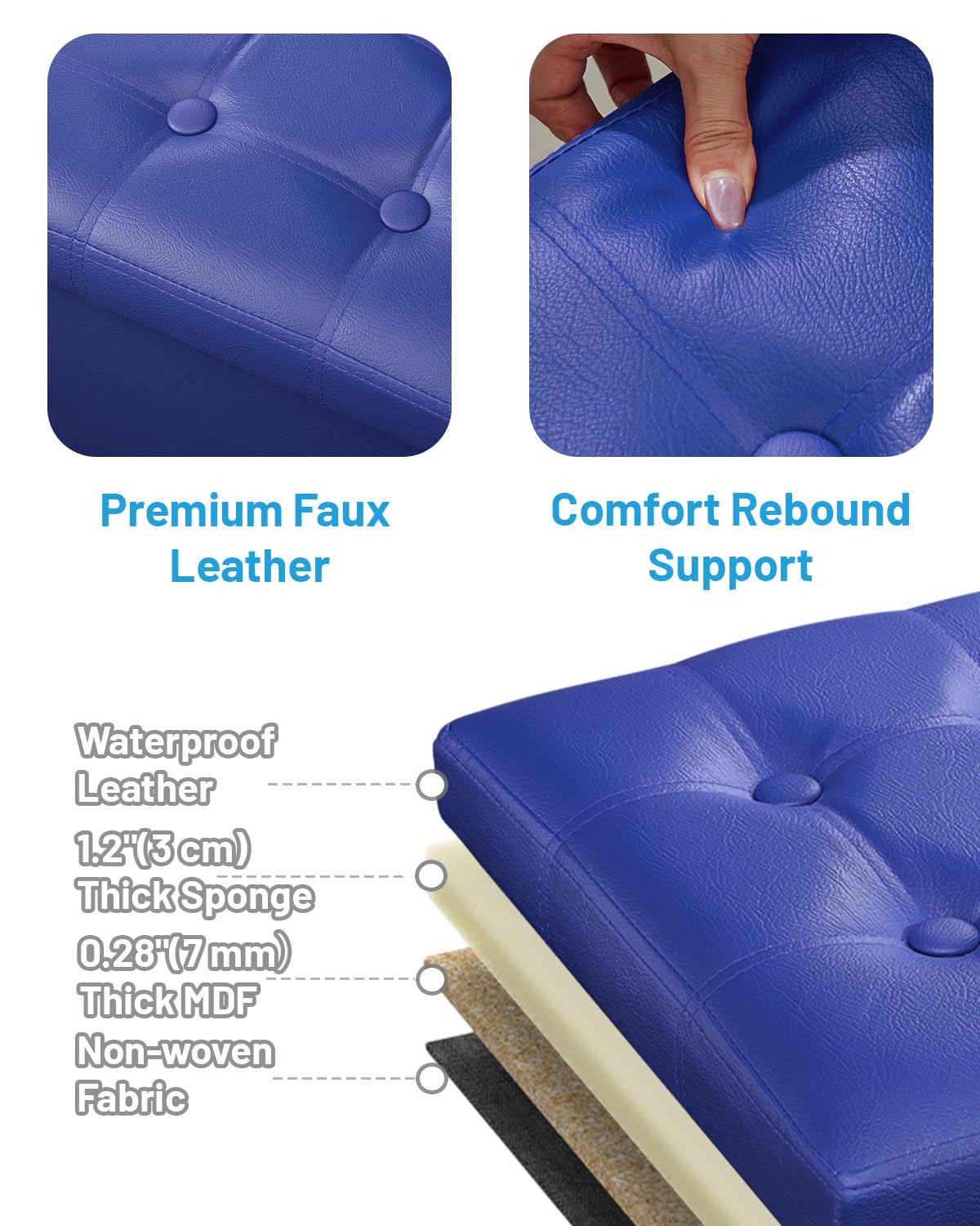 • 【Comfortable and Durable】This storage footstool is made of high-end leather fabric, which is odor-free, filled with high-resilience foam inside, and the thick cushioning pad brings you a more comfortable experience when you sit or rest your feet. Our folding storage foot rest can durable construction ensures that the ottoman will last in your home for long periods of time.