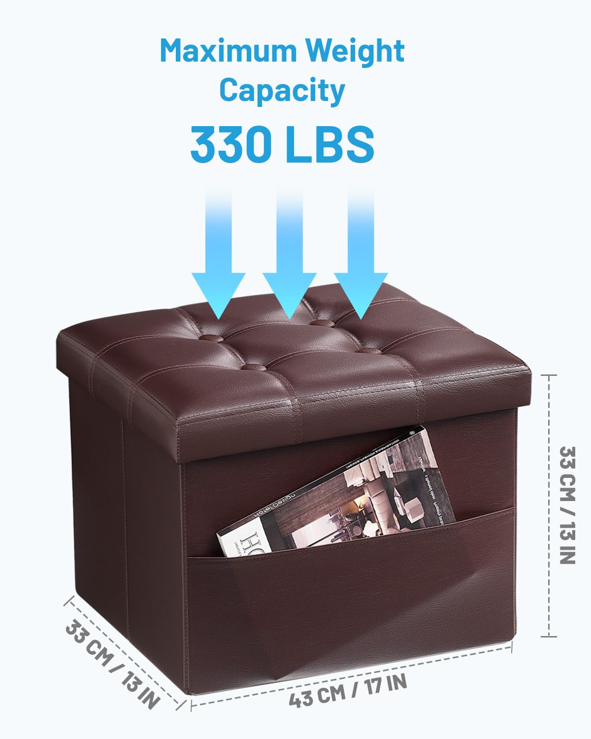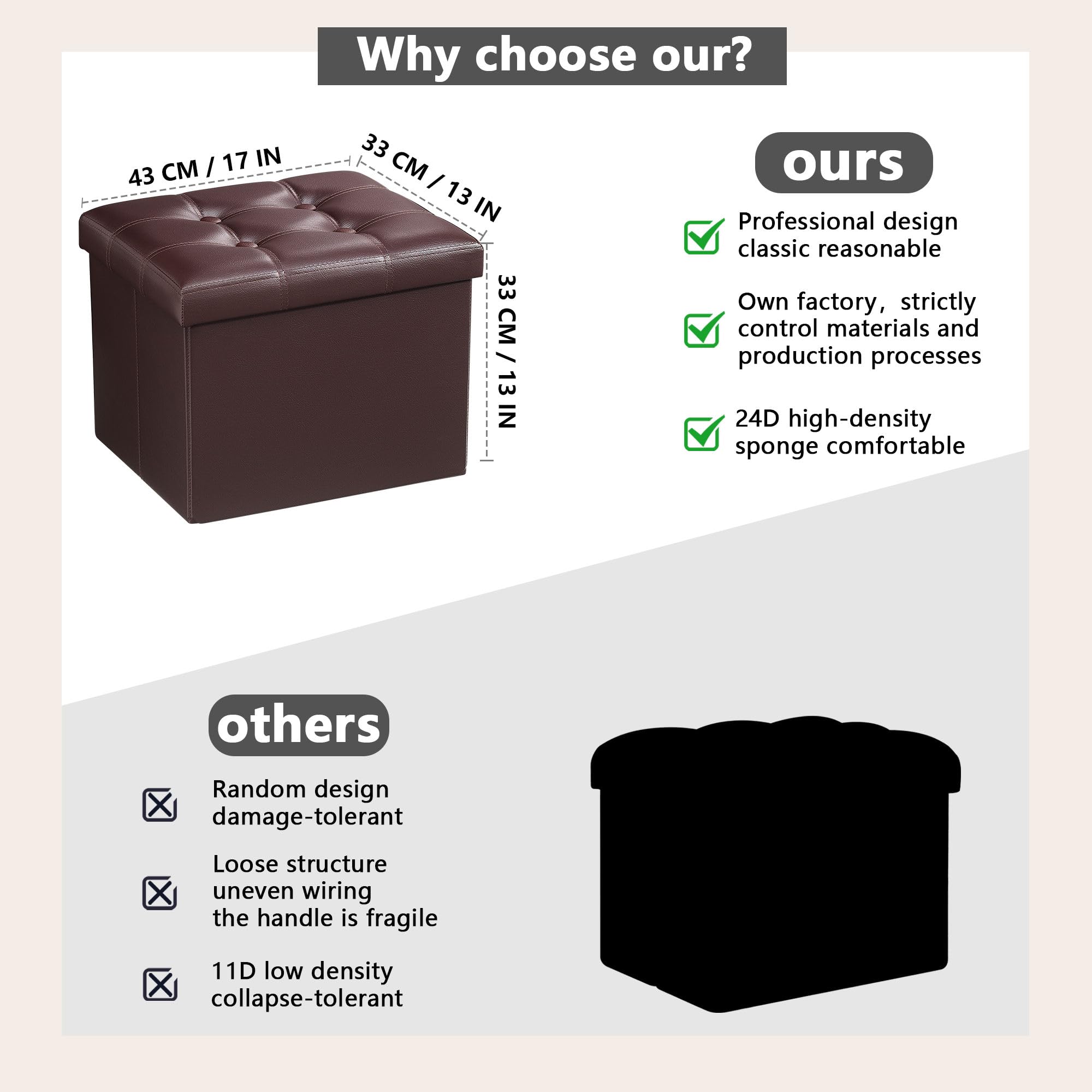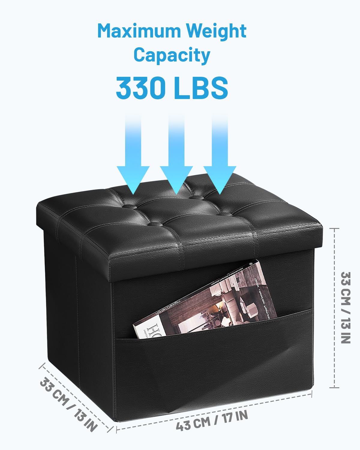 AmasSmile Storage Ottoman Folding Foot Rest Stool, Leather Footstool Bench, Short Ottoman Stool, Storage Foot Rest Store, Books (Black, 17" D x 13" W x 13" H)