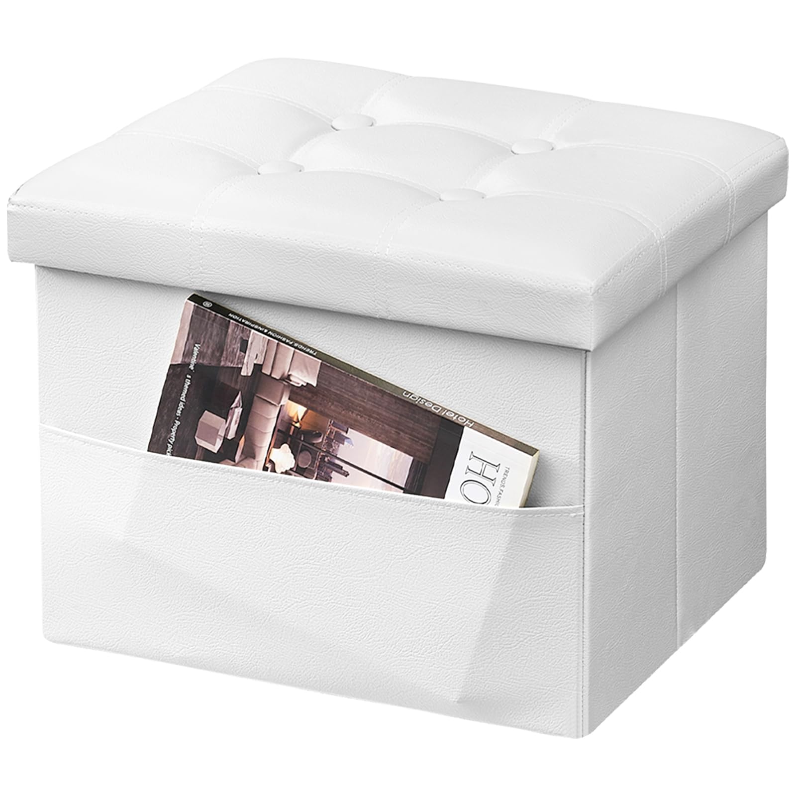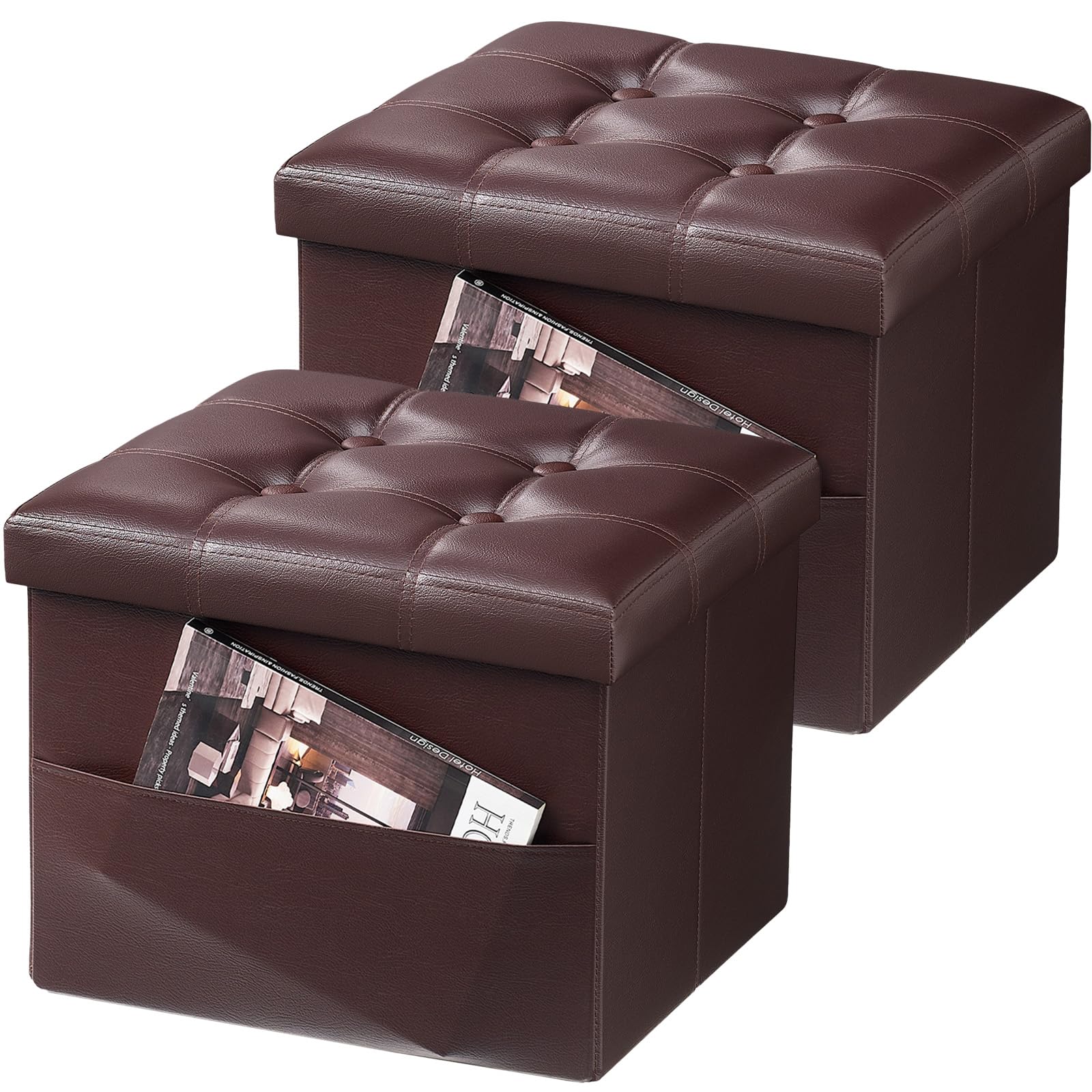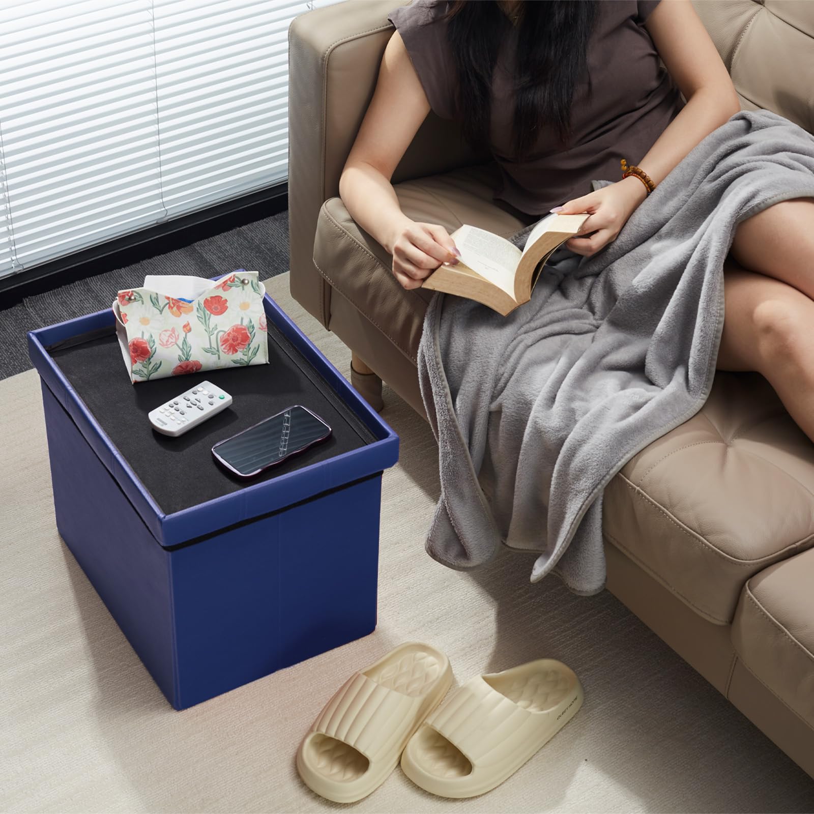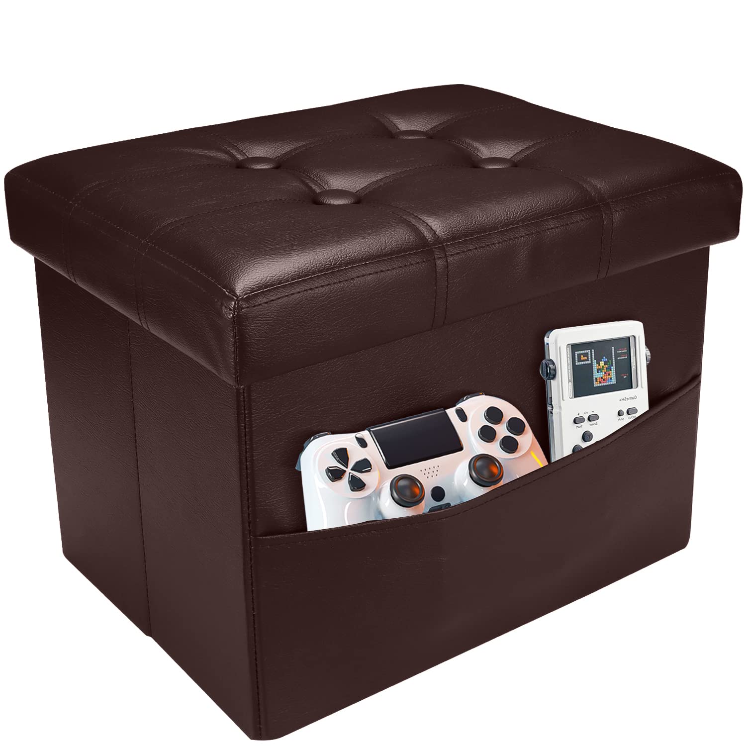 AmasSmile Storage Ottoman Folding Foot Rest Stool, Leather Footstool Bench, Short Ottoman Stool, Storage Foot Rest Store, Books (Black, 17" D x 13" W x 13" H)