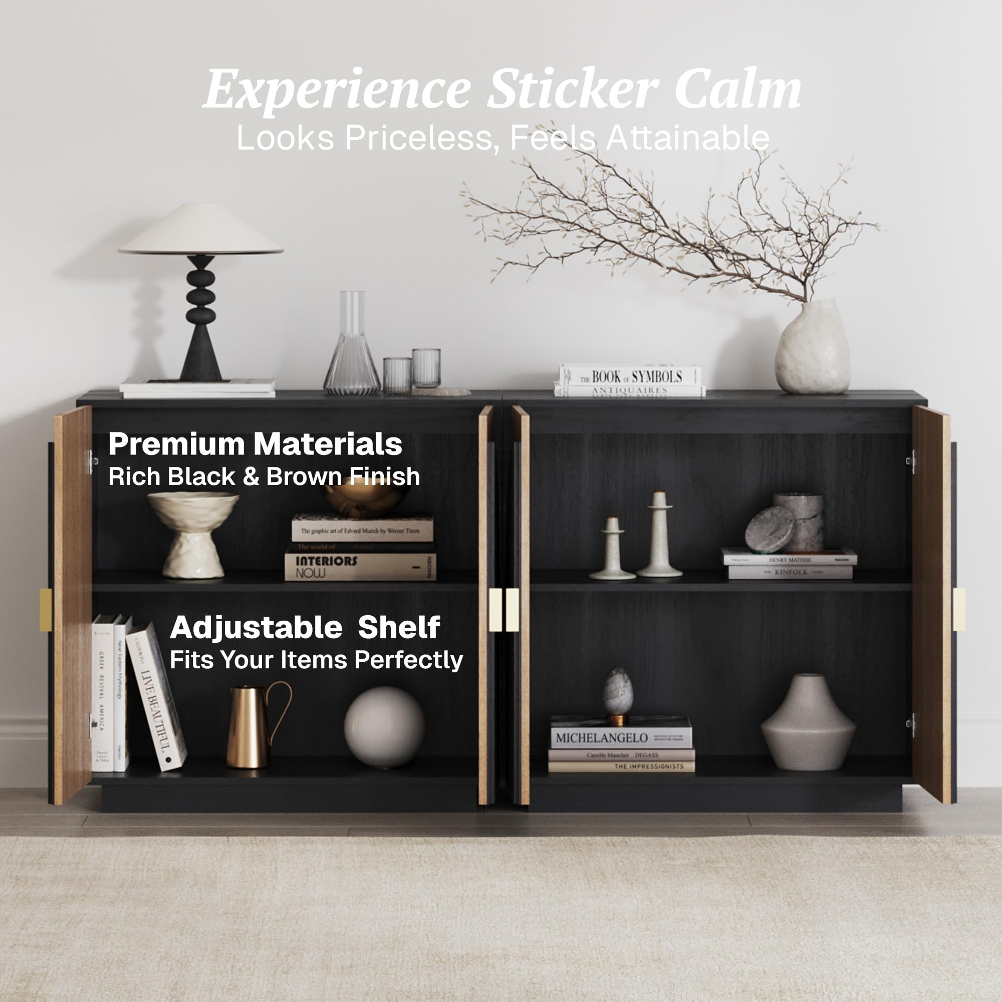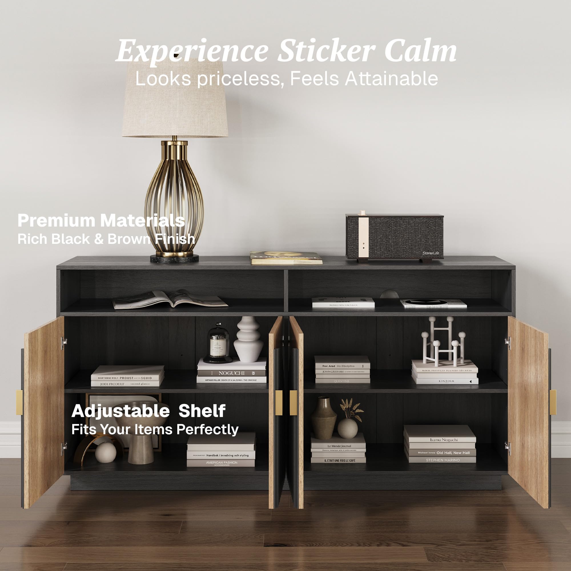 • Spacious Storage with Adjustable Shelves: Belleze buffet cabinet with storage boasts two large compartments, featuring a total of two adjustable shelves. Enjoy customizable storage solutions for dinnerware, kitchen essentials, and decorative items. It's perfect for maximizing your space and keeping your belongings organized efficiently.