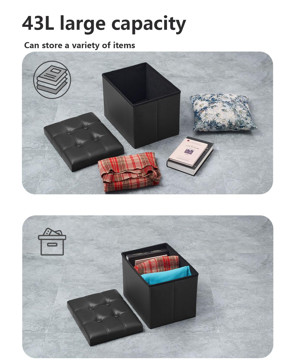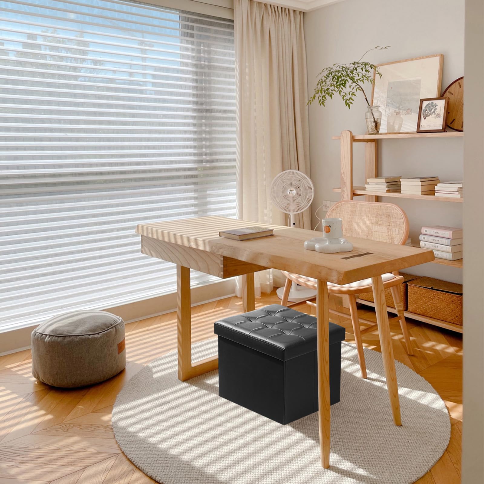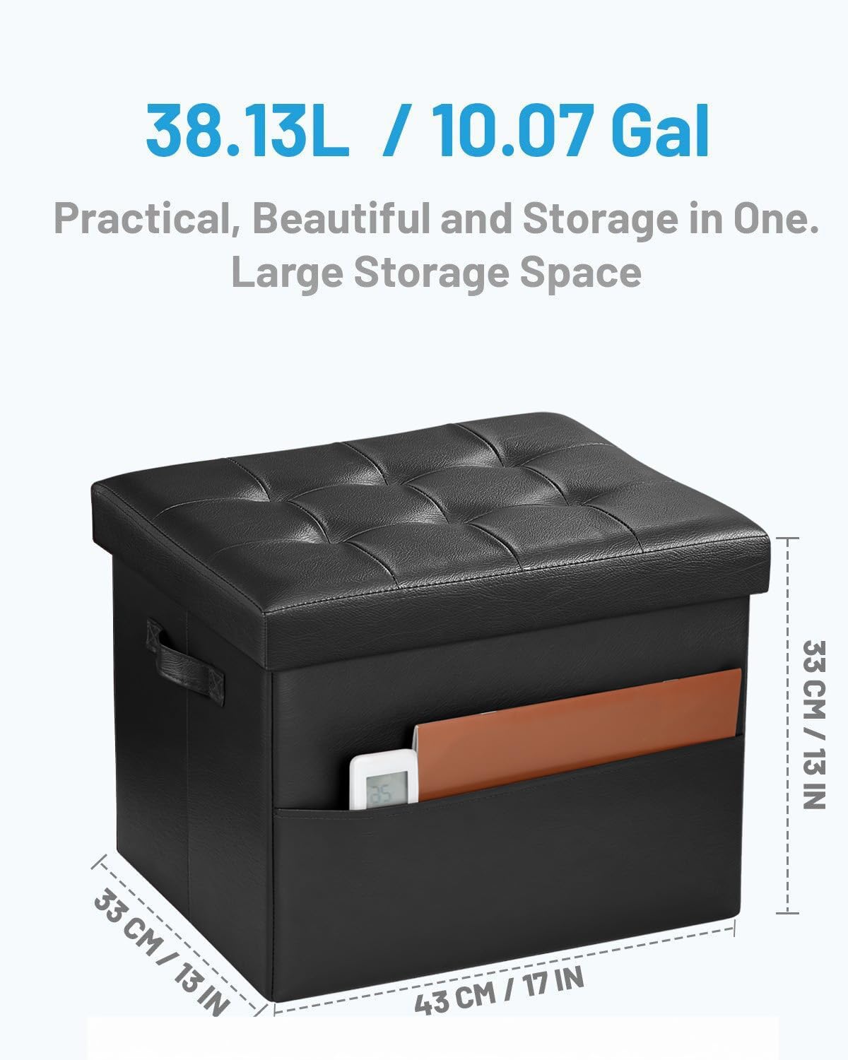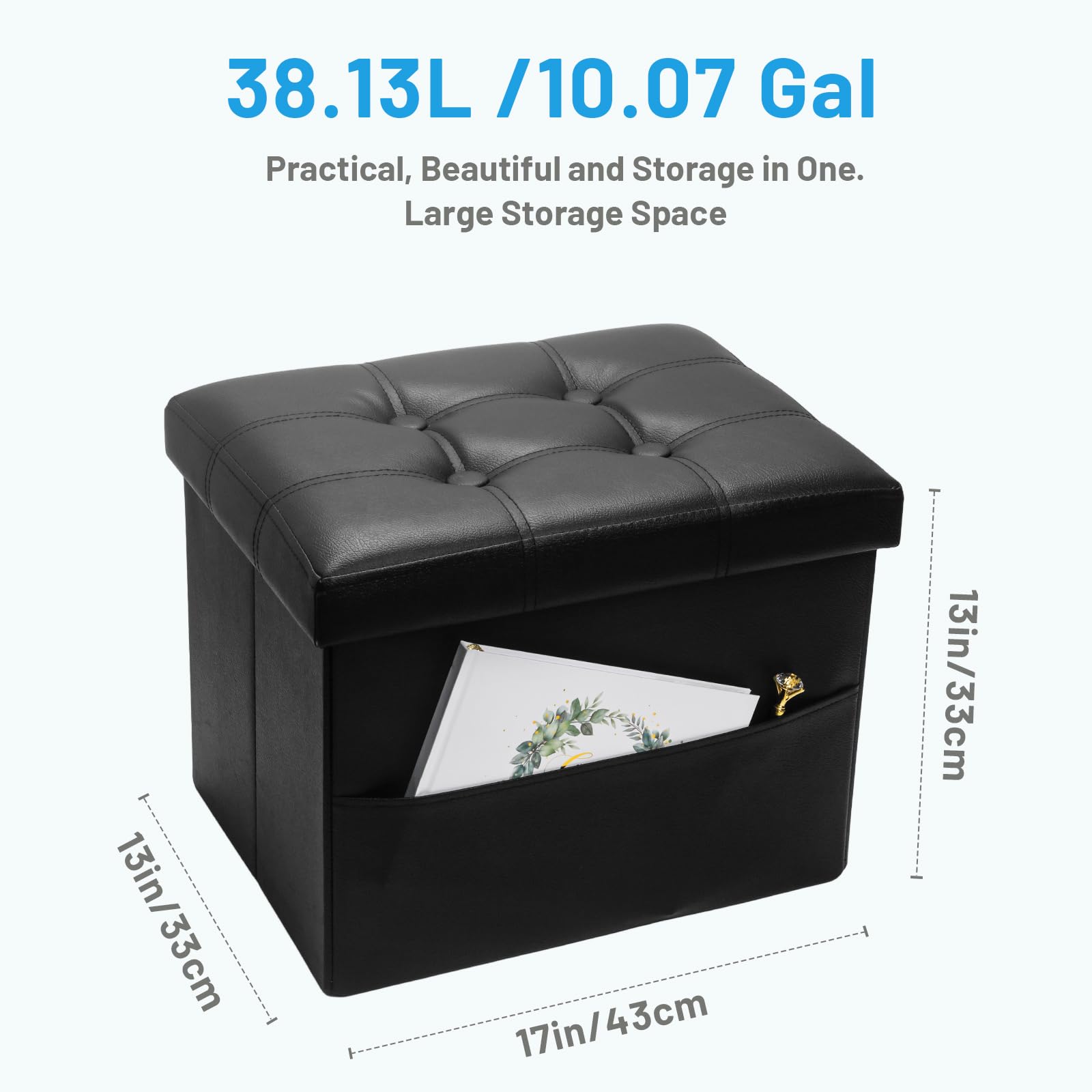 Bsketa Storage Ottoman, Folding Foot Stool with Thicker Foam Padded Seat Small Leather Storage Ottoman Bench Foot Rest for Living Room Foldable Coffee Table 17x13x13in,Black