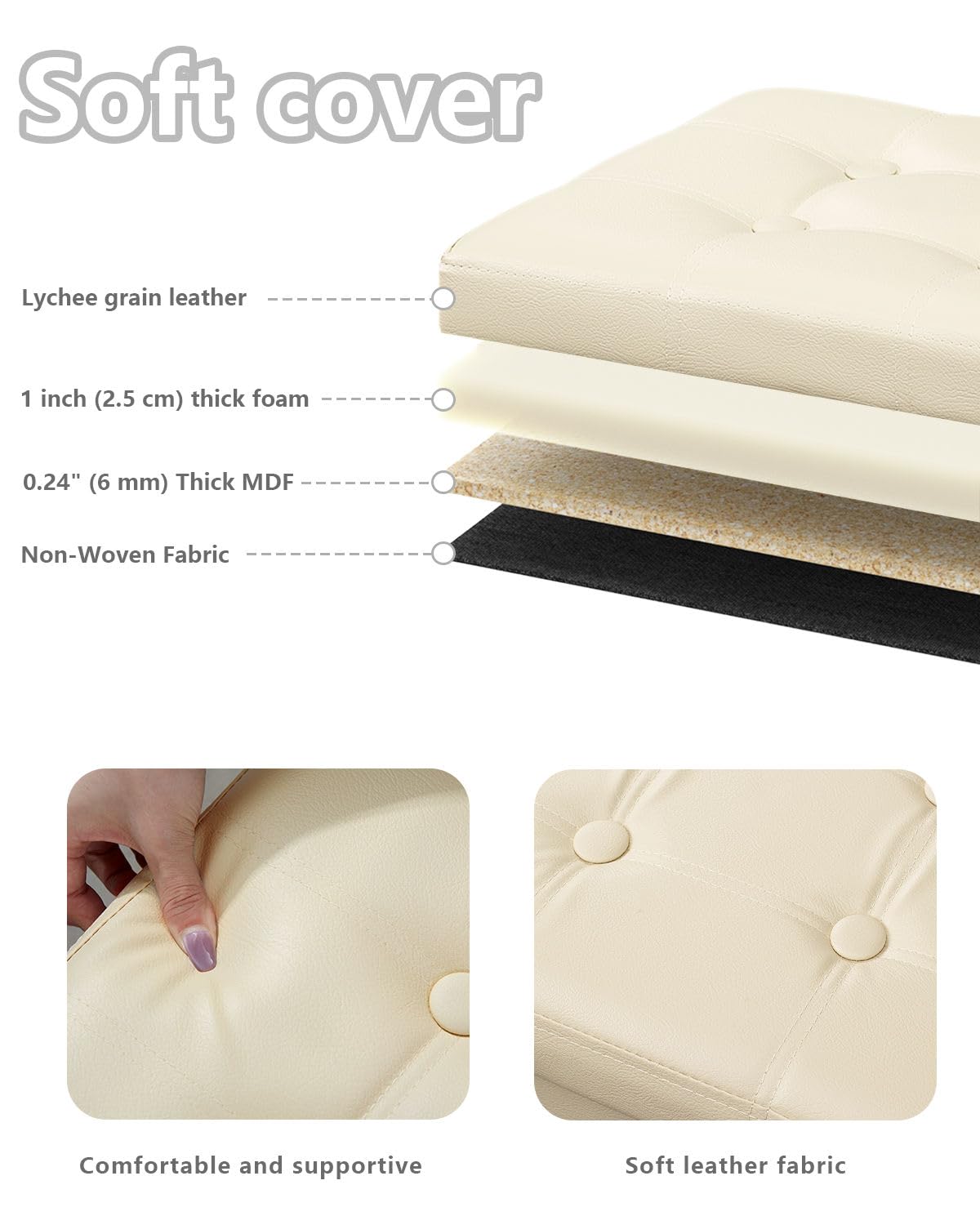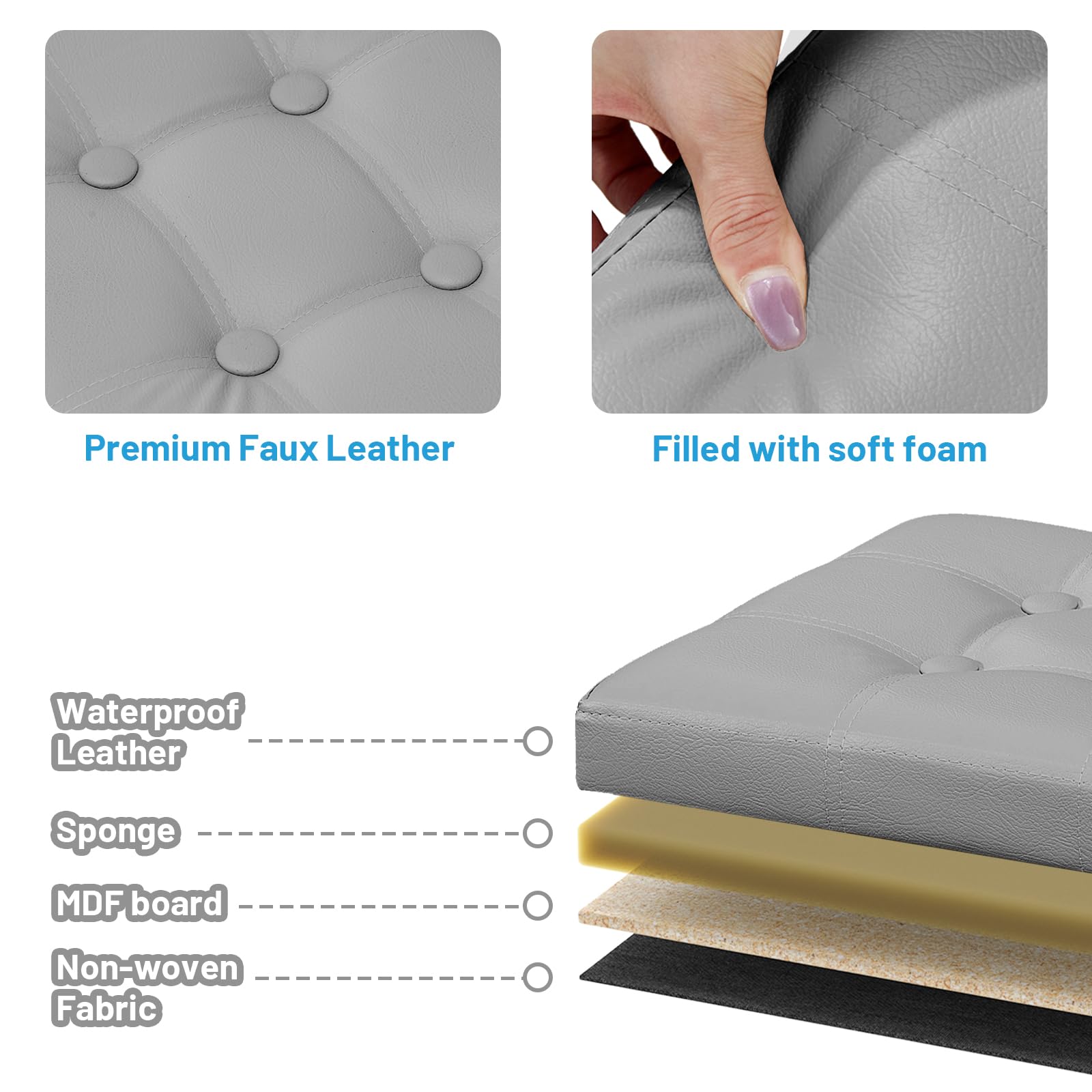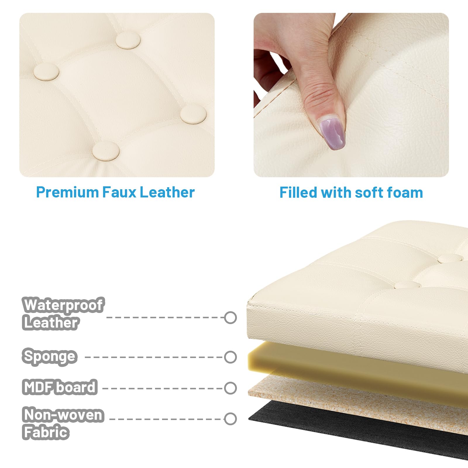 • VERSATILE & PRACTICAL: This multi-purpose storage ottoman can provide extra seating as a step stool/bench or work as a coffee table/puppy step/bed foot stool and many other daily uses, while the faux leather is waterproof and soft, super easy to wipe clean.