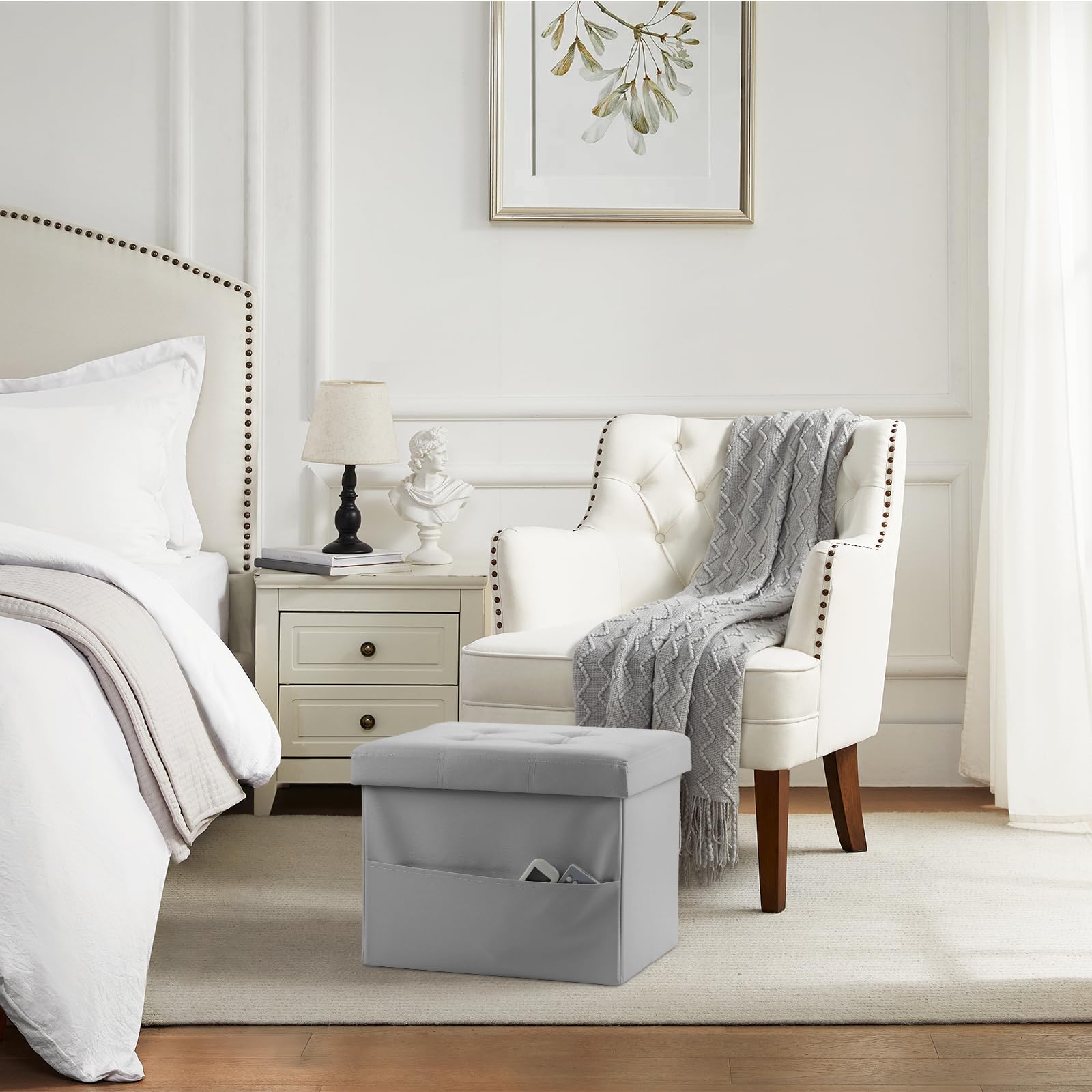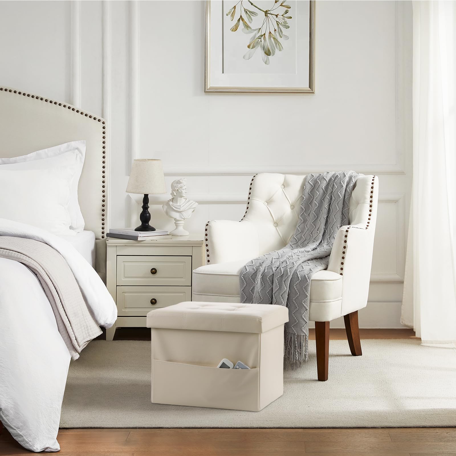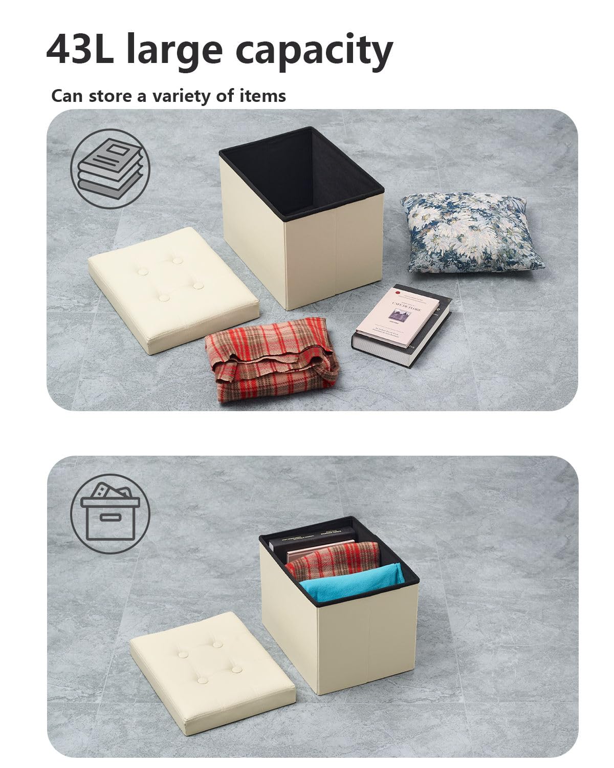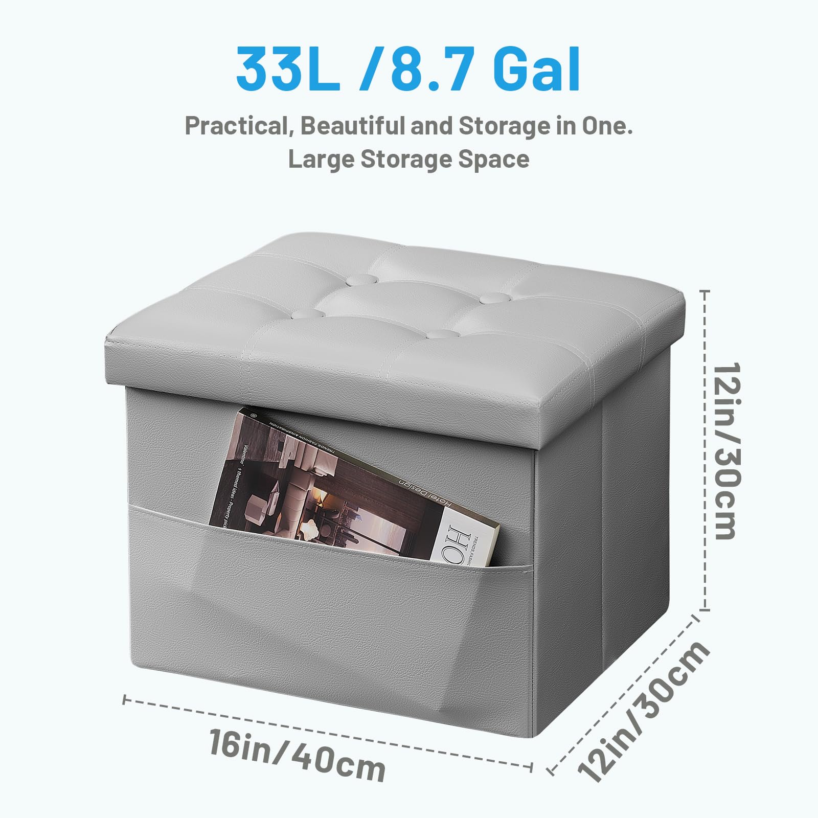 • VERSATILE & PRACTICAL: This multi-purpose storage ottoman can provide extra seating as a step stool/bench or work as a coffee table/puppy step/bed foot stool and many other daily uses, while the faux leather is waterproof and soft, super easy to wipe clean.