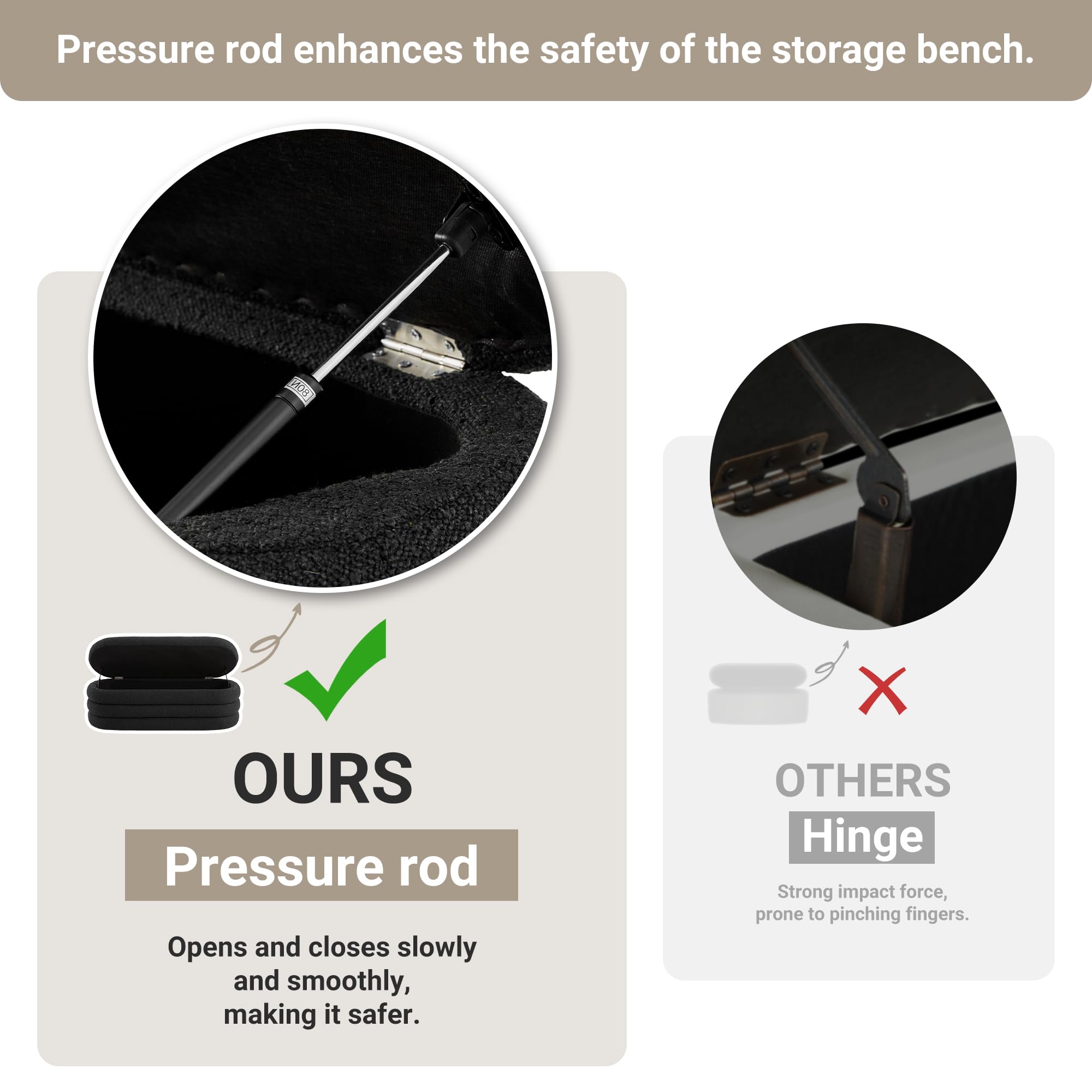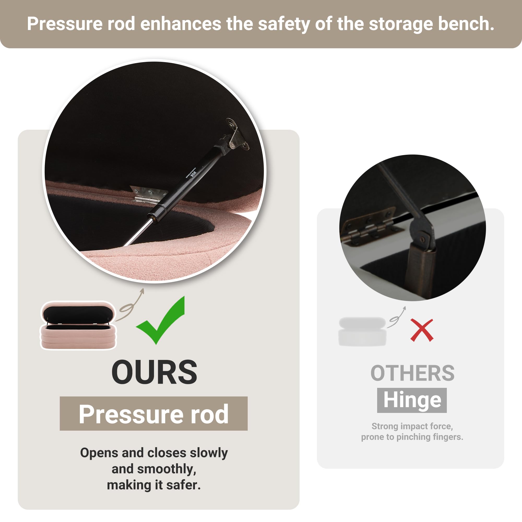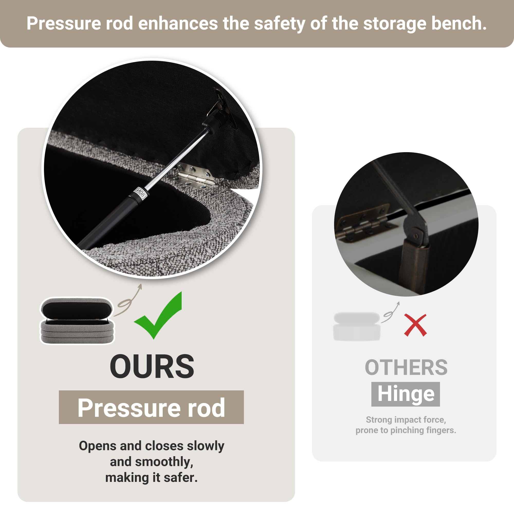 • SAFE PRESSURE BAR AND ROUNDED DESIGN: Ottoman bench features a pressure bar design that is safe and effortless to lift. The bench rounded appearance design helps to avoid children's injuries while playing, suitable for families with children.