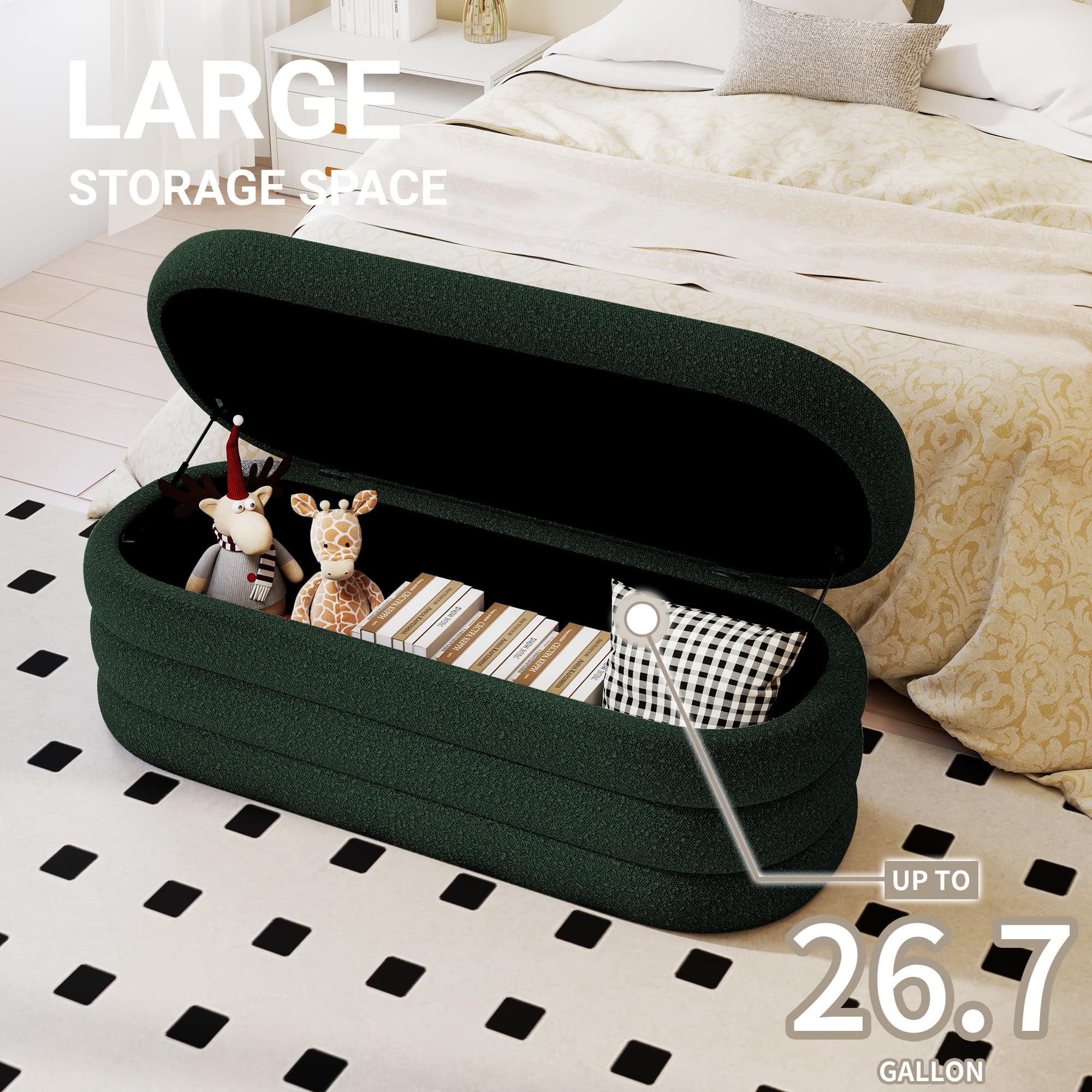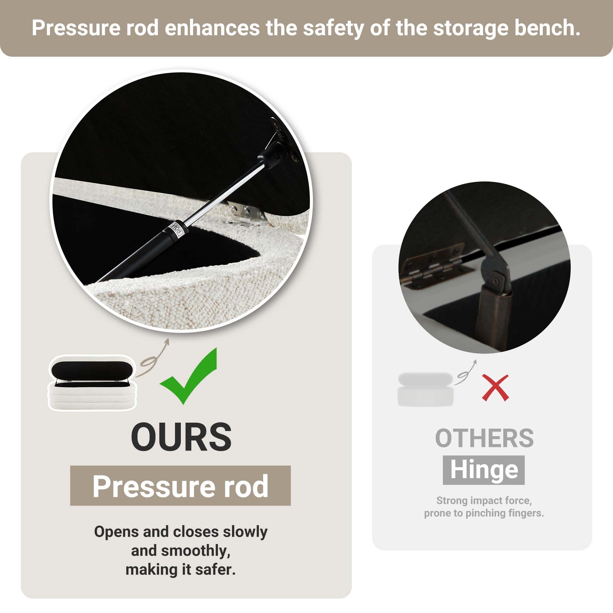 Busaurus Storage Ottoman Bench 49.2 Inch Upholstered Fabric Storage Bench for Bedroom End of Bed Aesthetic Large Oval Ottoman for Living Room Entryway (Ivory)