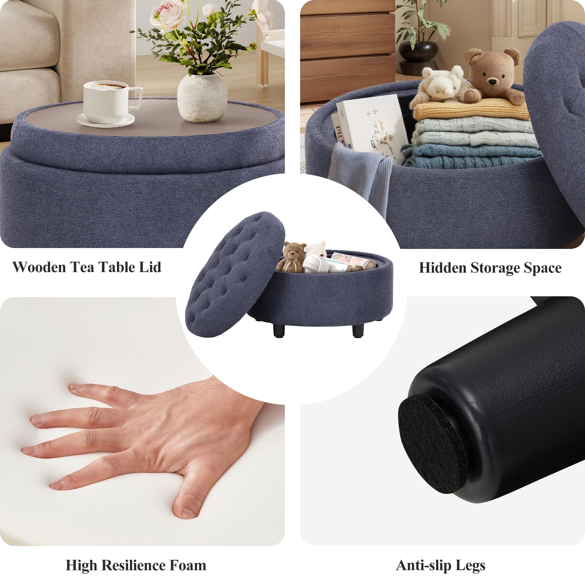 ✅Dimension – Ottoman:25"L*25"W*15"H,Weighing at 17.31 lbs our Round Ottoman Storage supports a capacity of up to 250lbs .If you have any questions about the products, please feel free to contact us, we will always be online and within 24 hours to respond to your questions in a timely manner to solve your confusion and worries