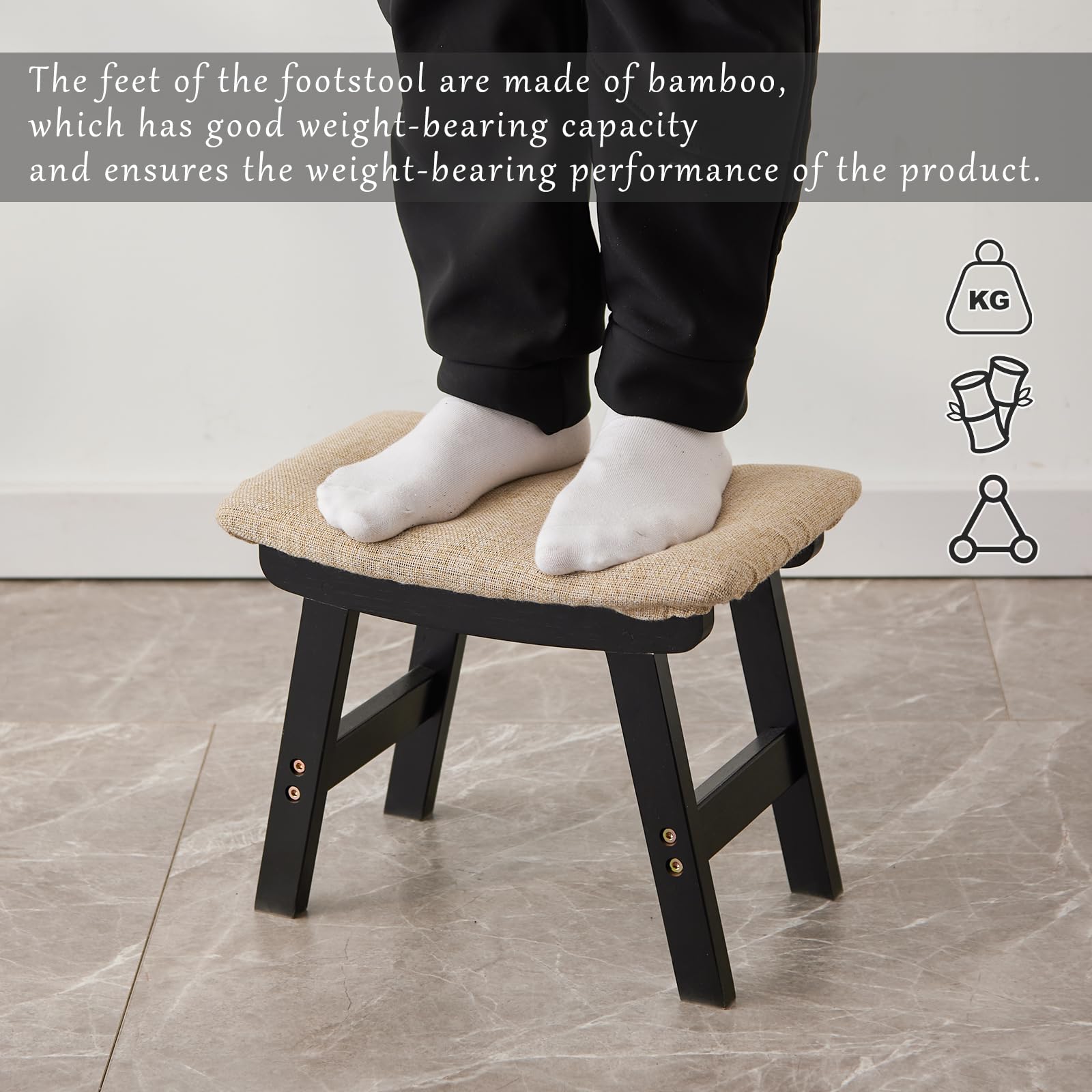 Foot Stool,Ottoman,Bamboo Small Sofa Foot Rest Under Desk,Extra Seating for Living Room, Bedroom and Kitchen(Brown Stool Legs - Beige Surface)