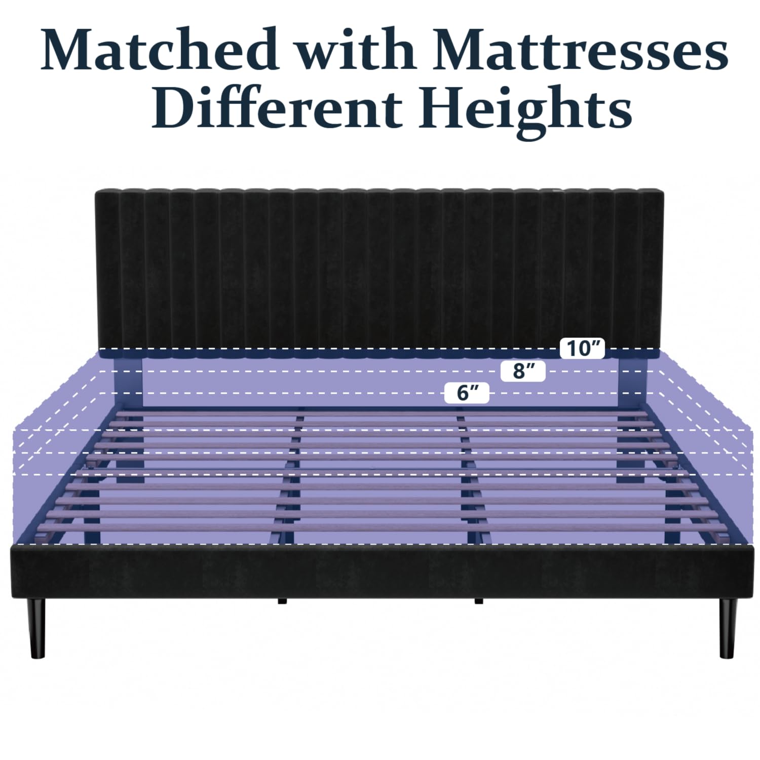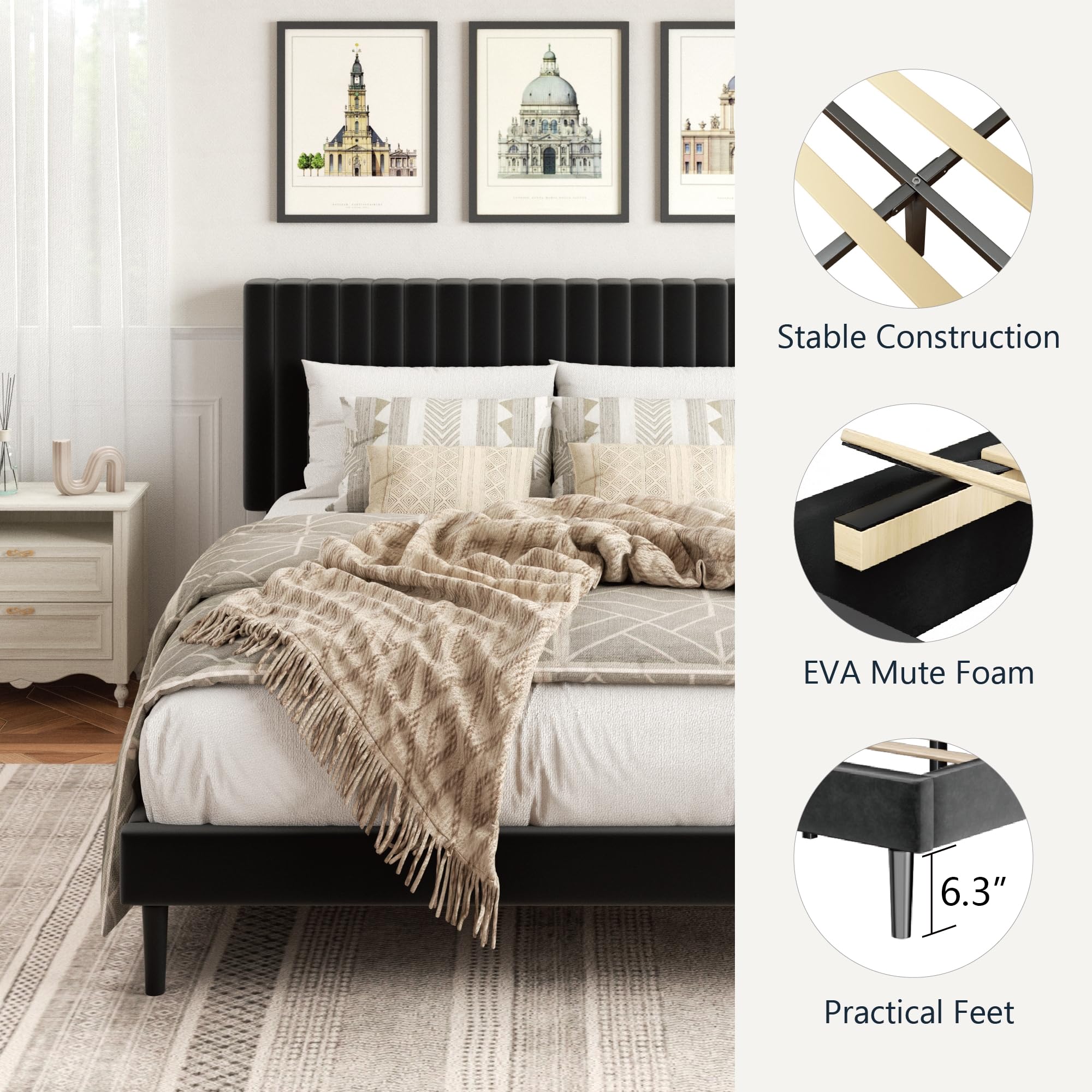Comfortable and Elegance: The vertical channel tufted headboard is wrapped in smooth velvet and built-in soft foam, introducing a touch of elegance to any bedroom.