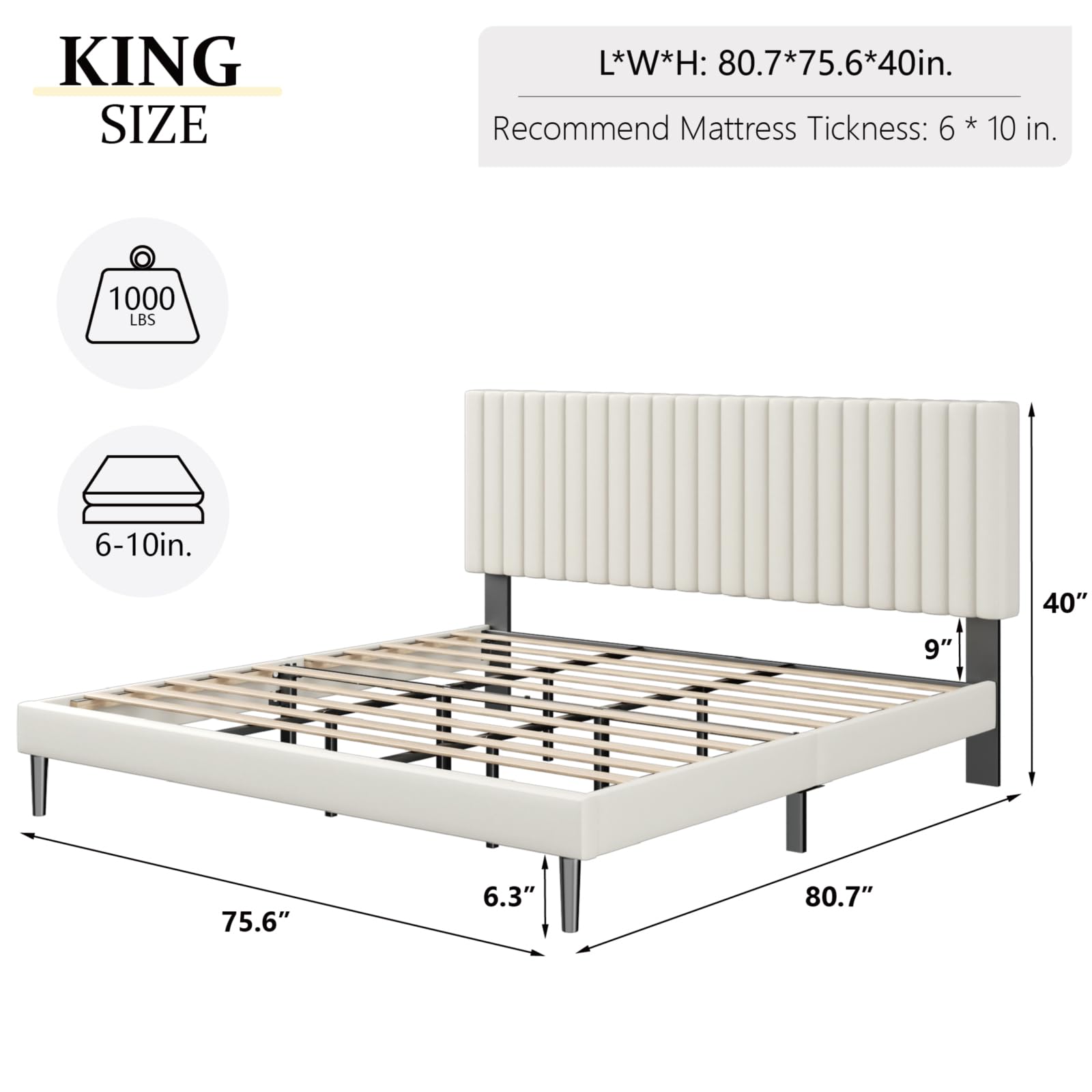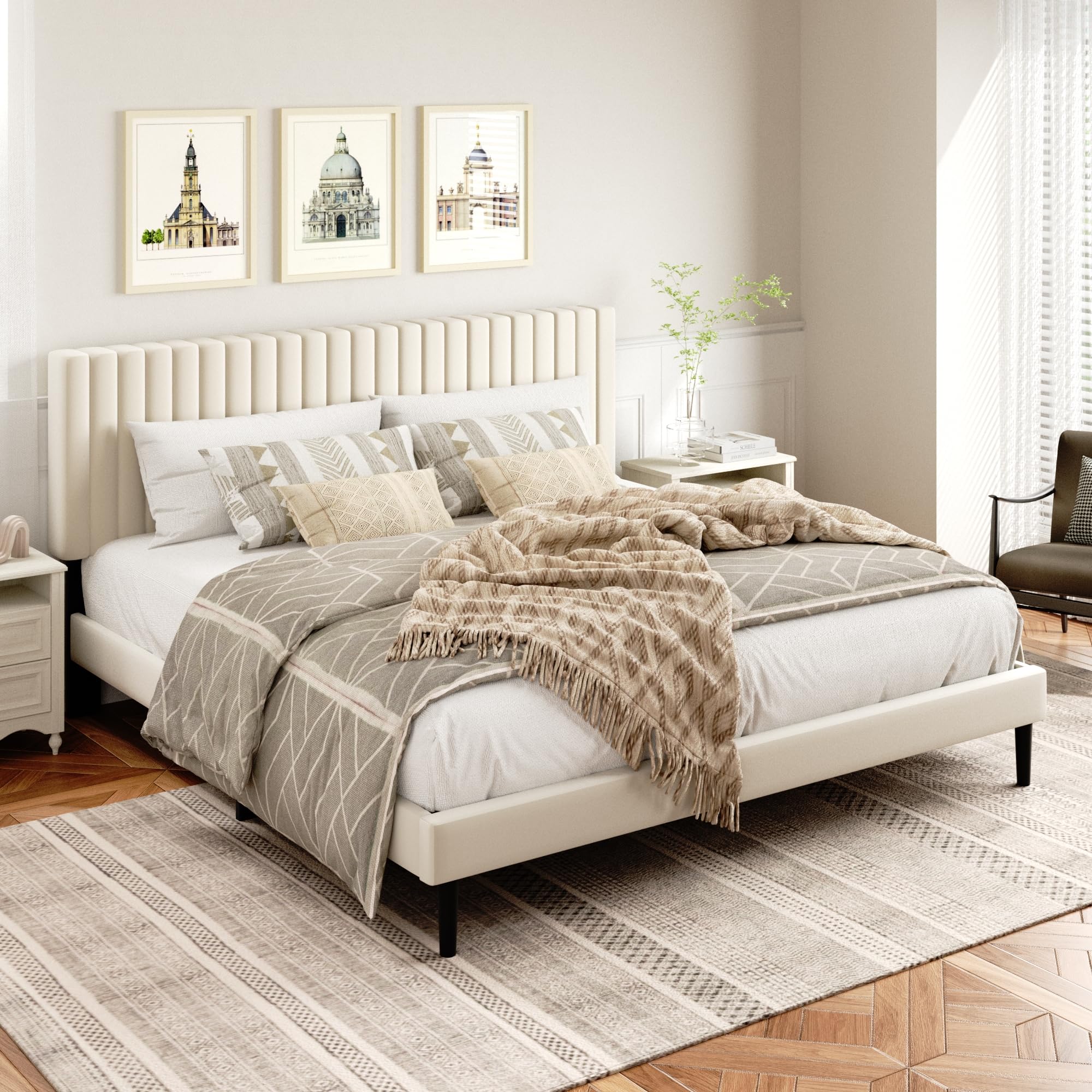 HAOARA King Size Bed Frame,King Size Platform Bed Frame and Velvet Upholstered Headboard with Strong Wood Slats, Box Spring Optional, Mattress Foundation, Easy Assembly Beige