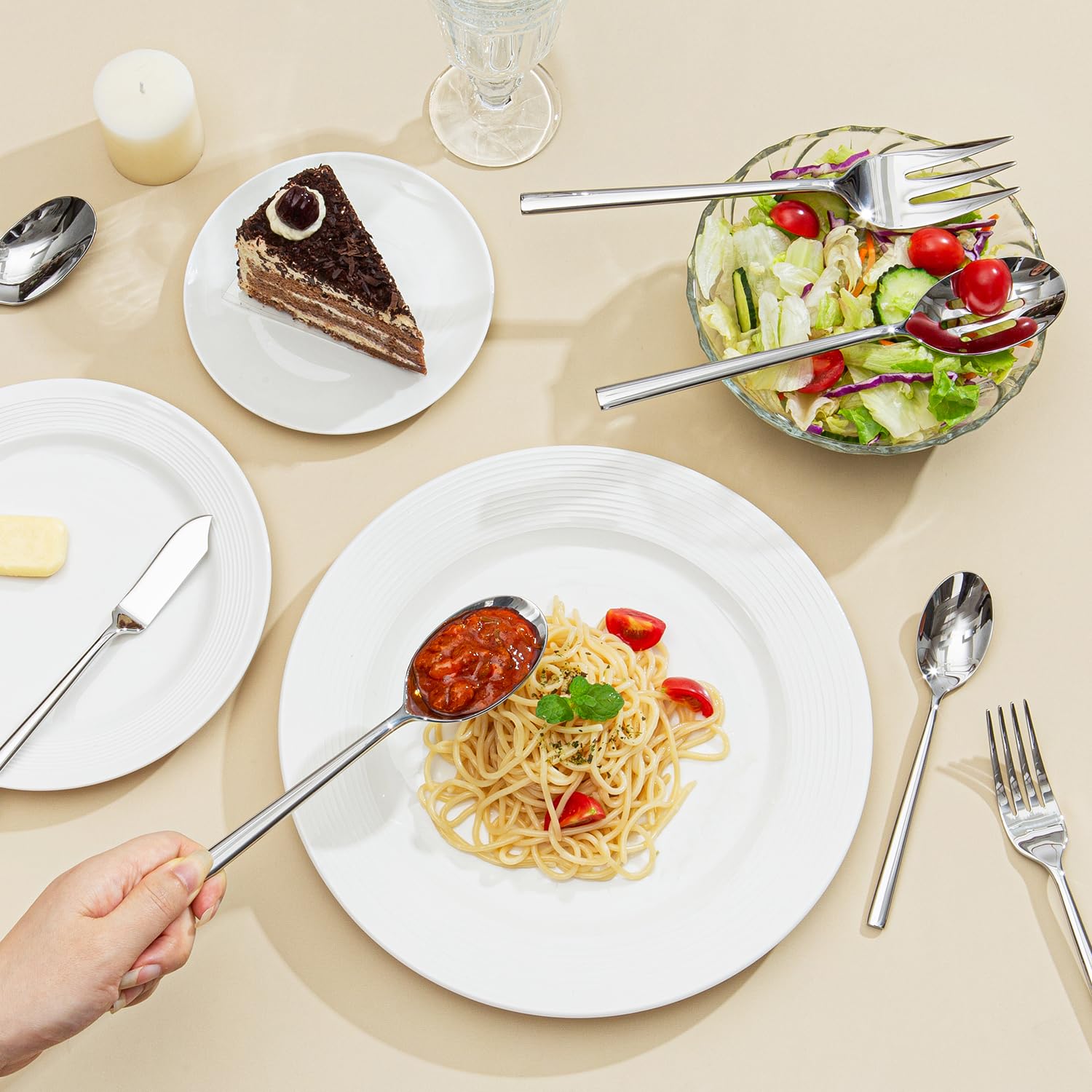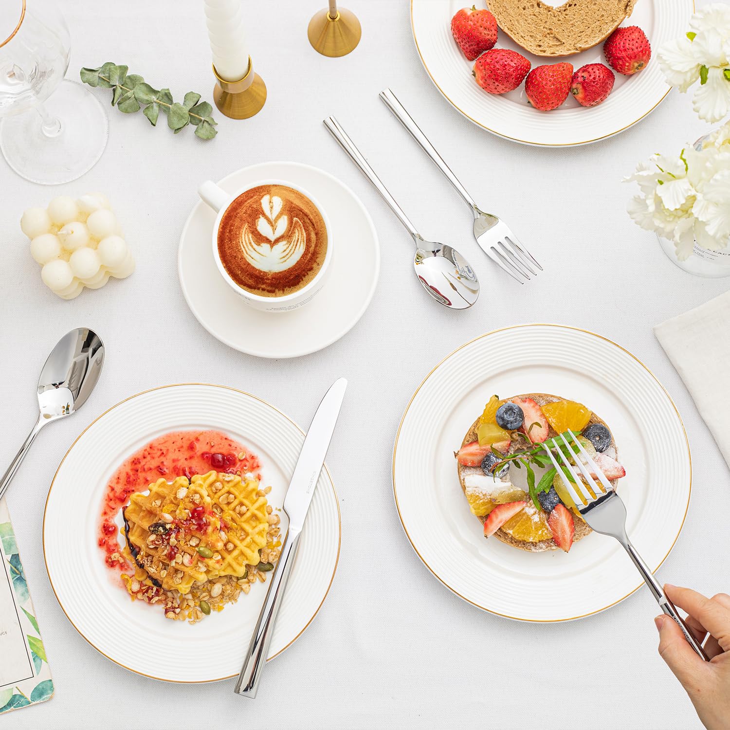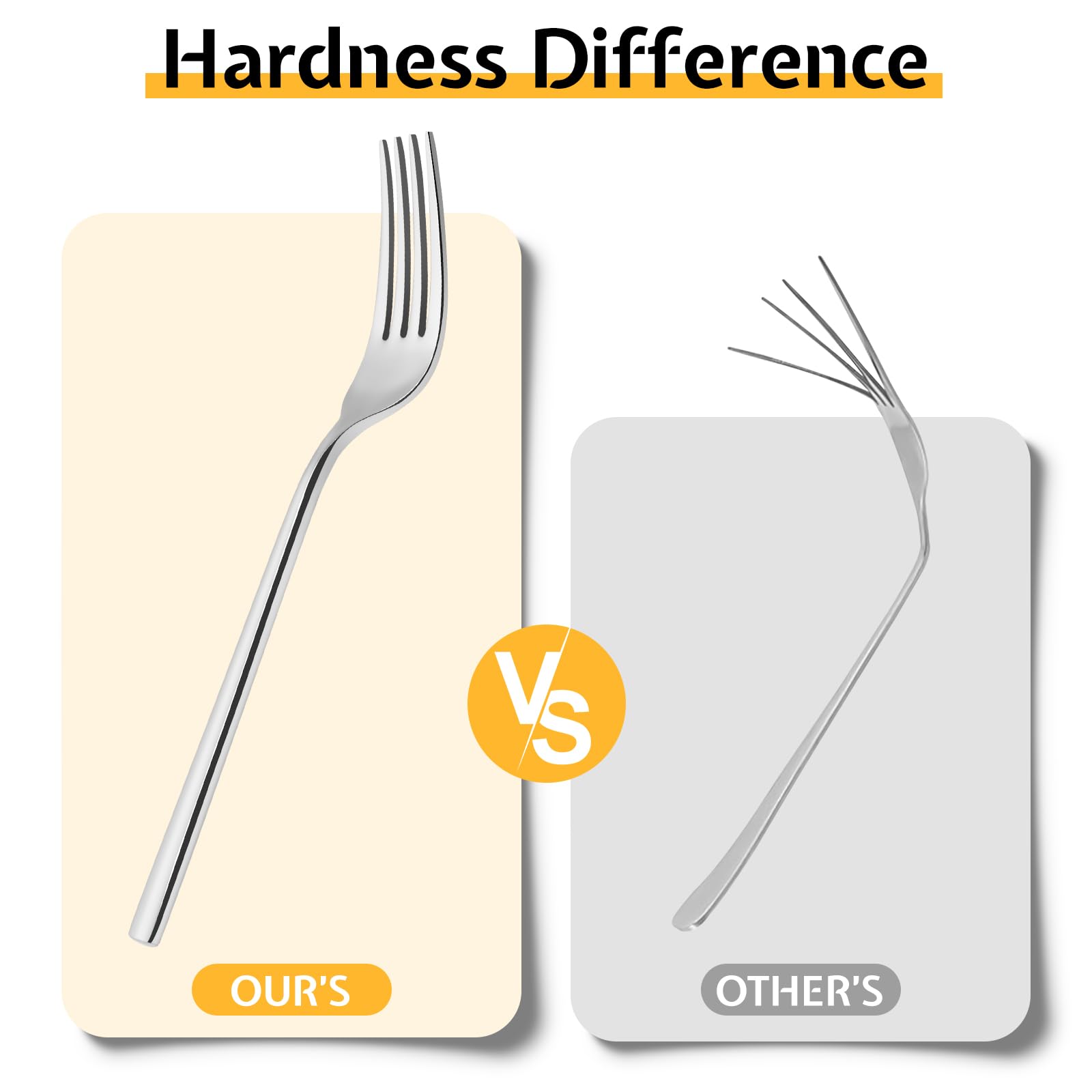• DESIGN AND APPEARANCE: Mirror finish, natural and elegant design.Smooth and silk surface without grain, easy to clean and care in daily use. Crafted forged process,strong and durable,so that the flatware set has a thicker texture