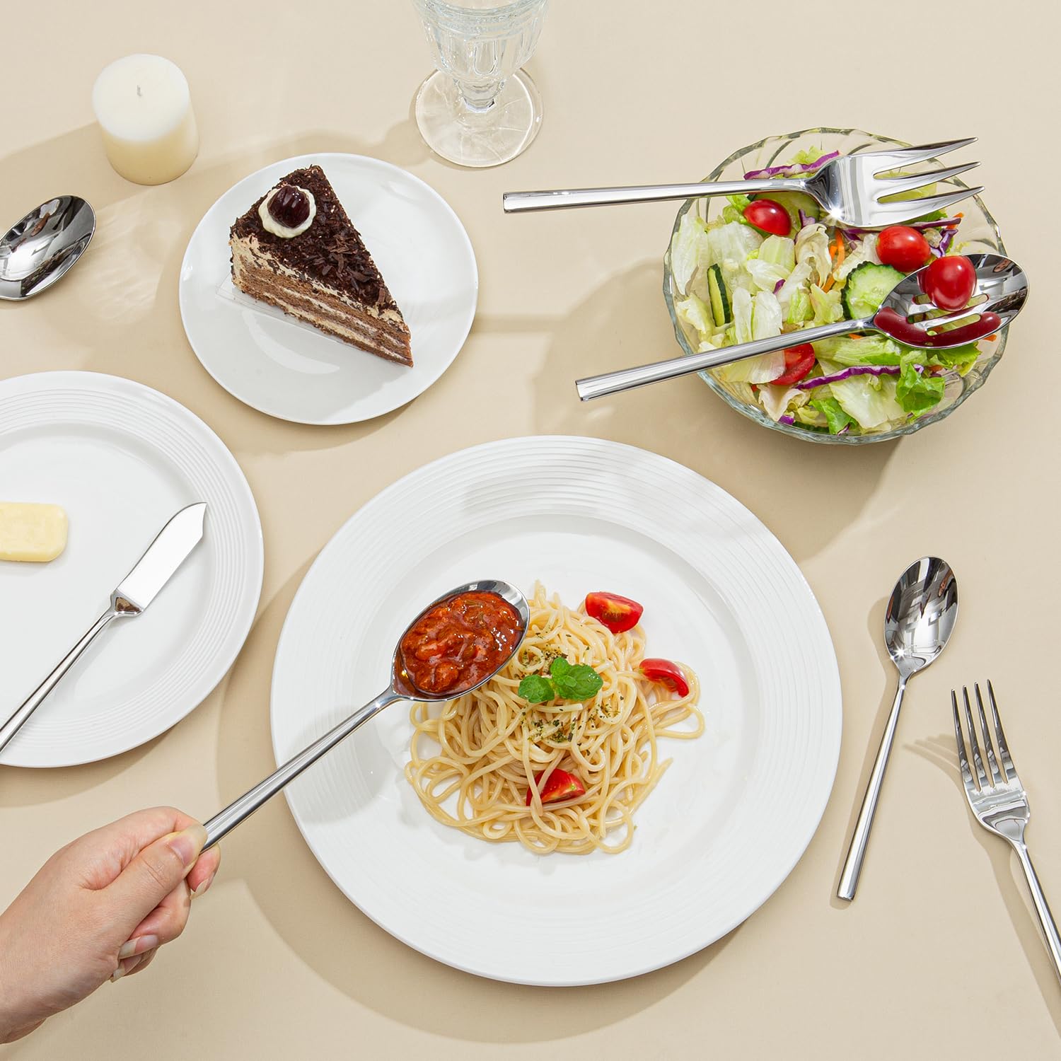 • SILVERWARE SET INCLUDES: 60-piece flatware set includes 12 dinner knife (8.92 inch/2.75 oz), 12 dinner fork (8.31 inch/2.07 oz), 12 dinner spoon (8.11inch/2.64 oz), 12 salad fork (7.01 inch/1.41 oz)and 12 teaspoon (6.9 inch/1.63 oz), service for 12