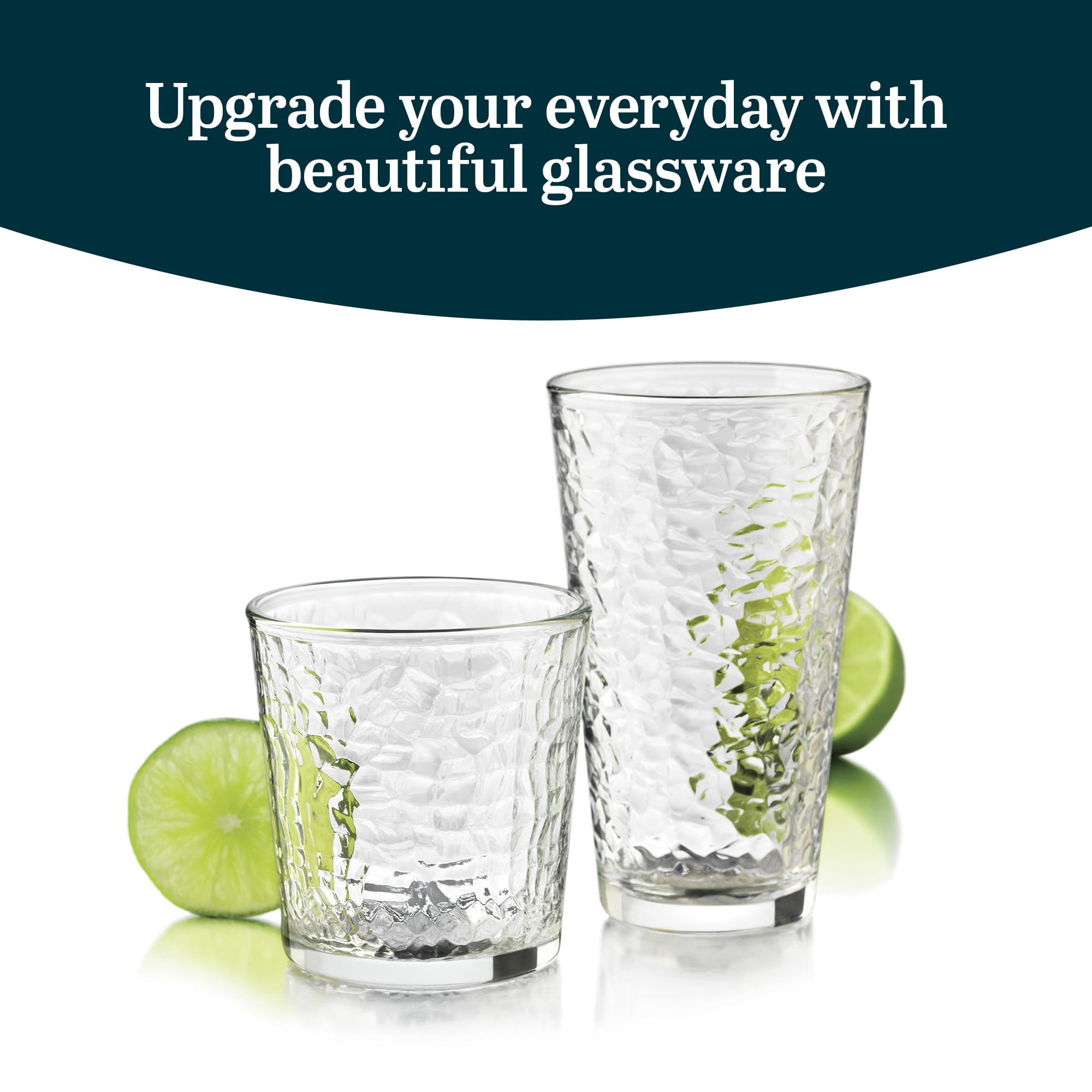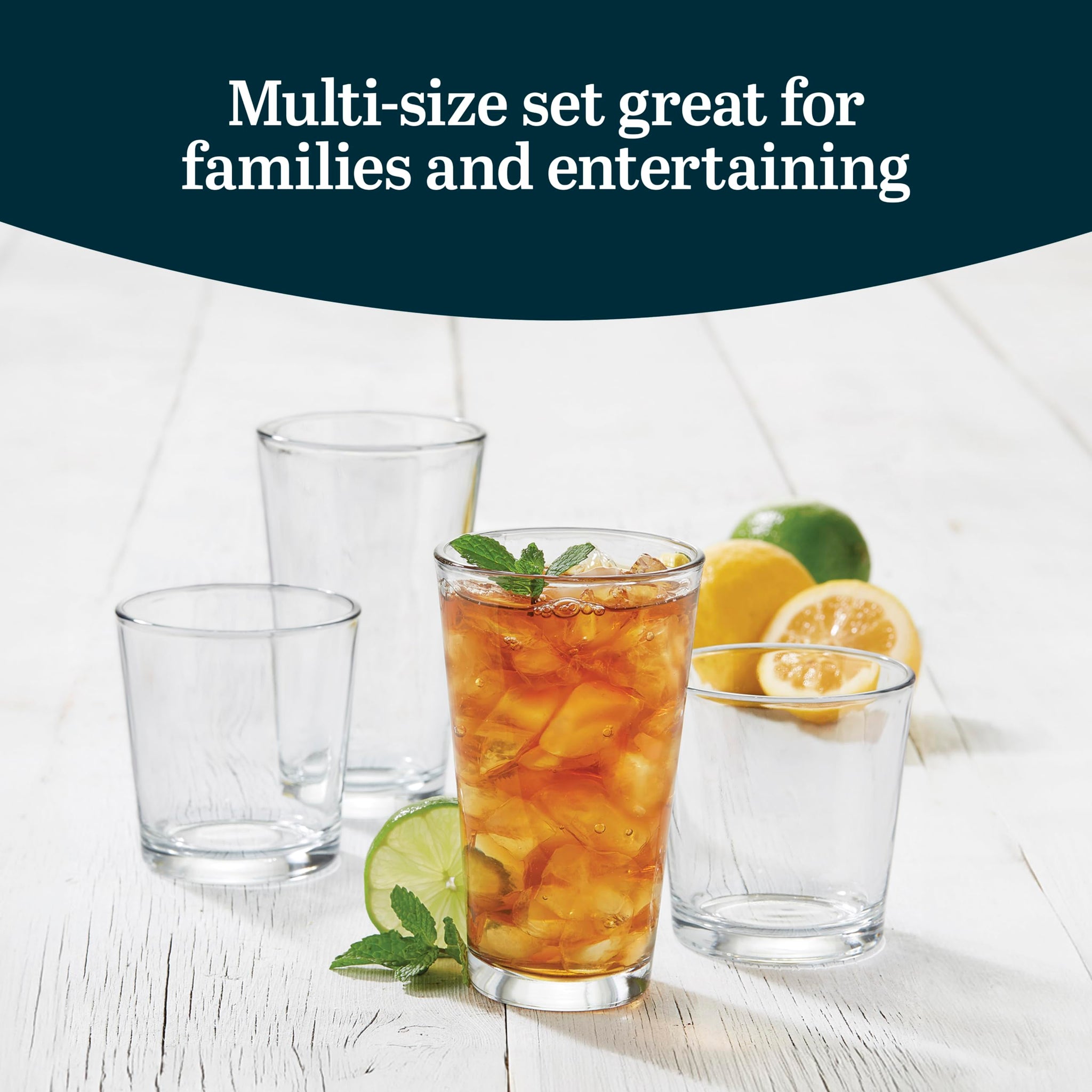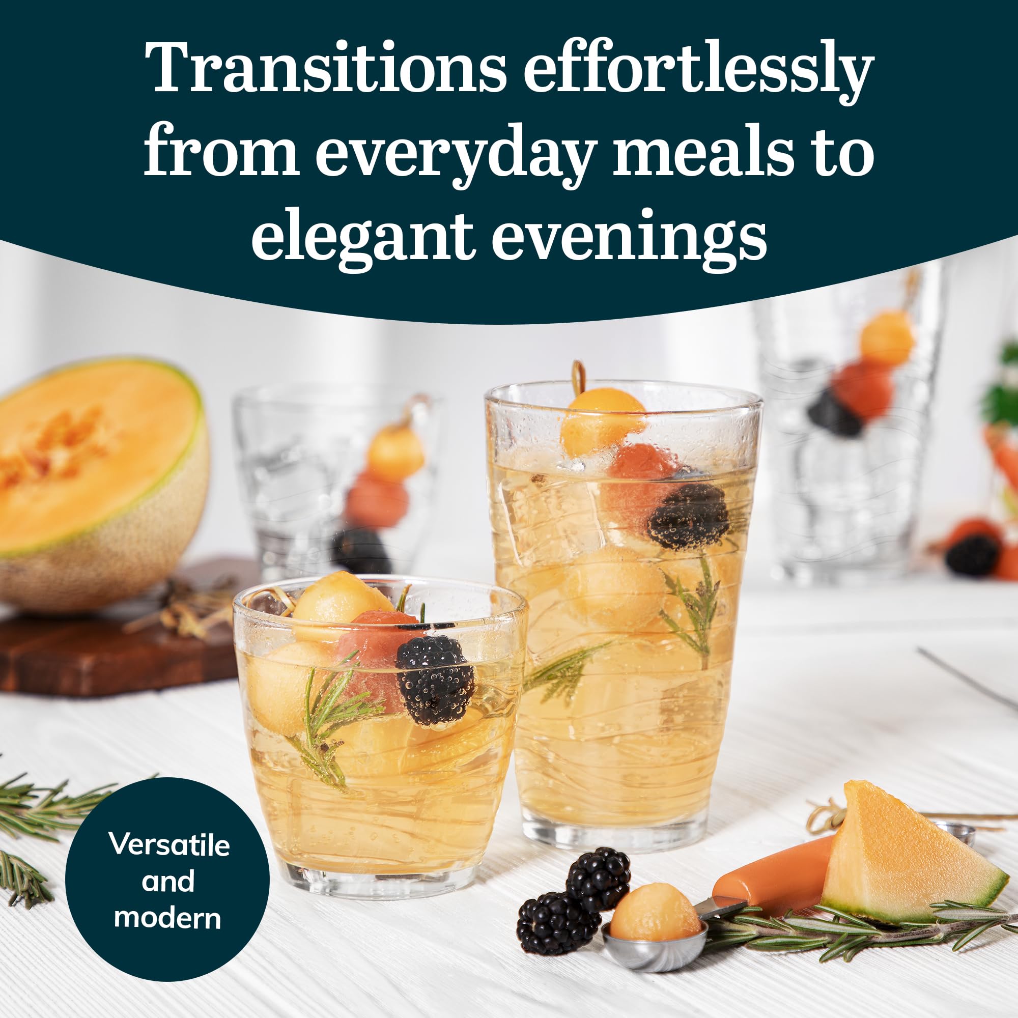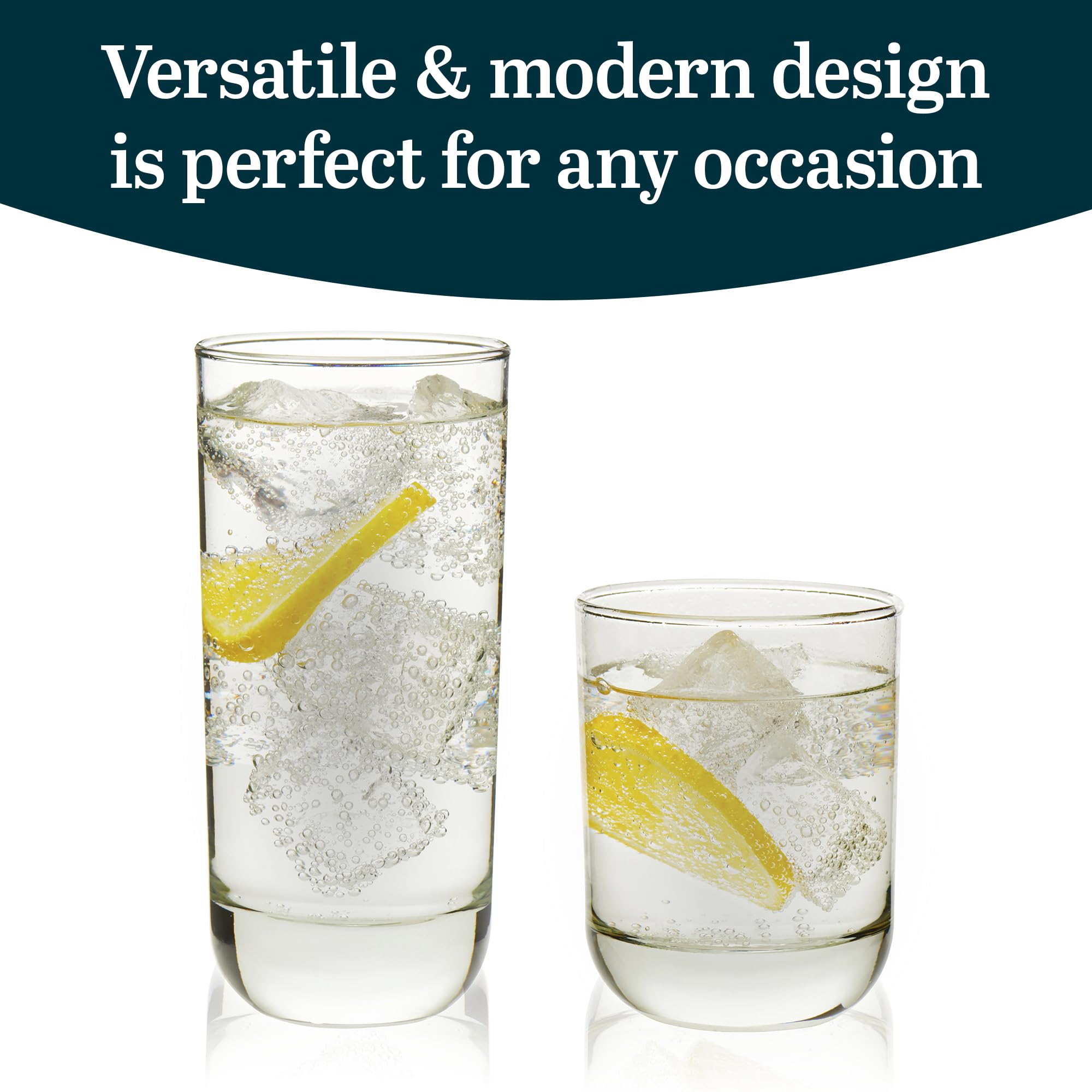 Libbey Ascent Tumbler and Rocks Drinking Glasses Set of 16, Glass Drinking Glasses with Curvature, Versatile Glassware Set for Parties and More