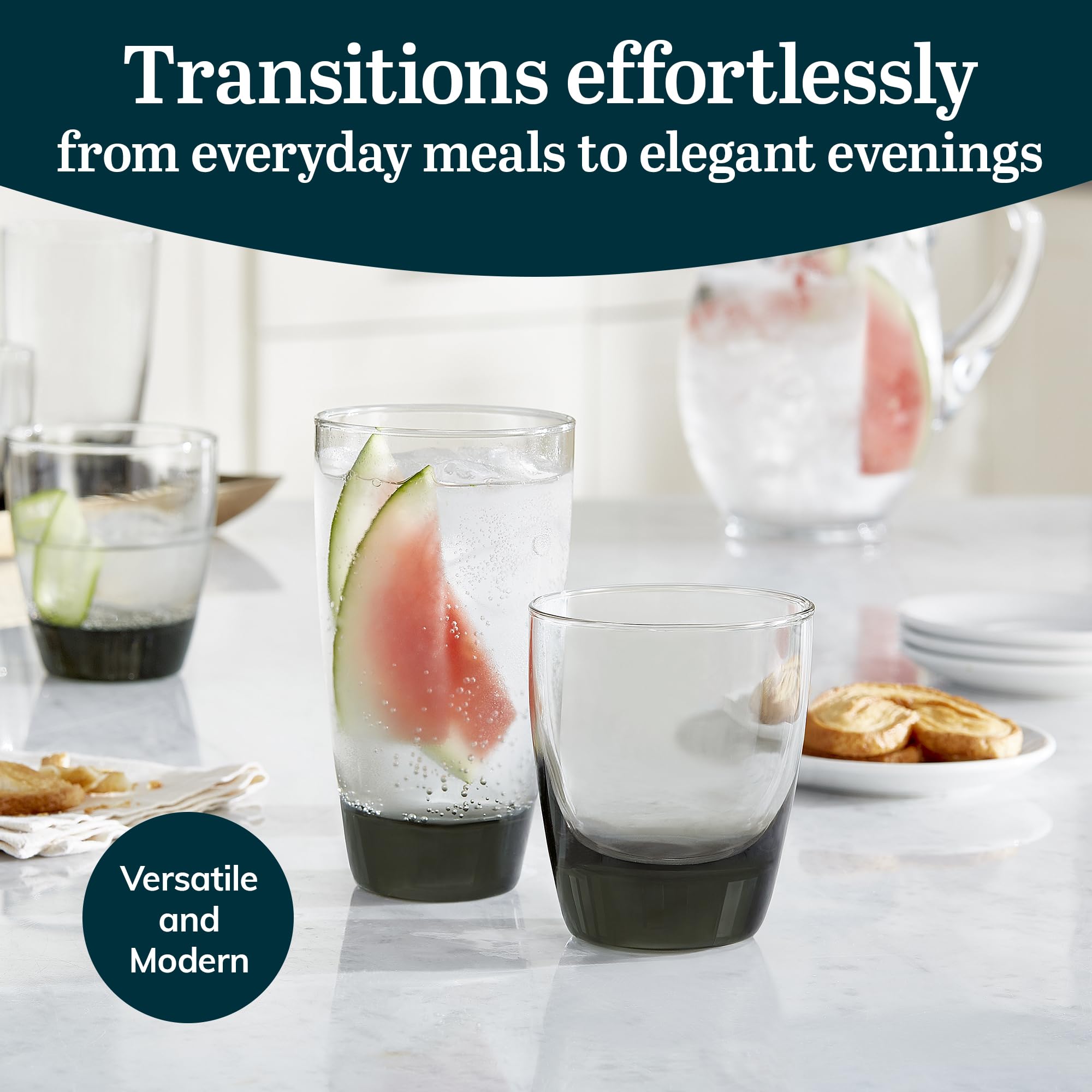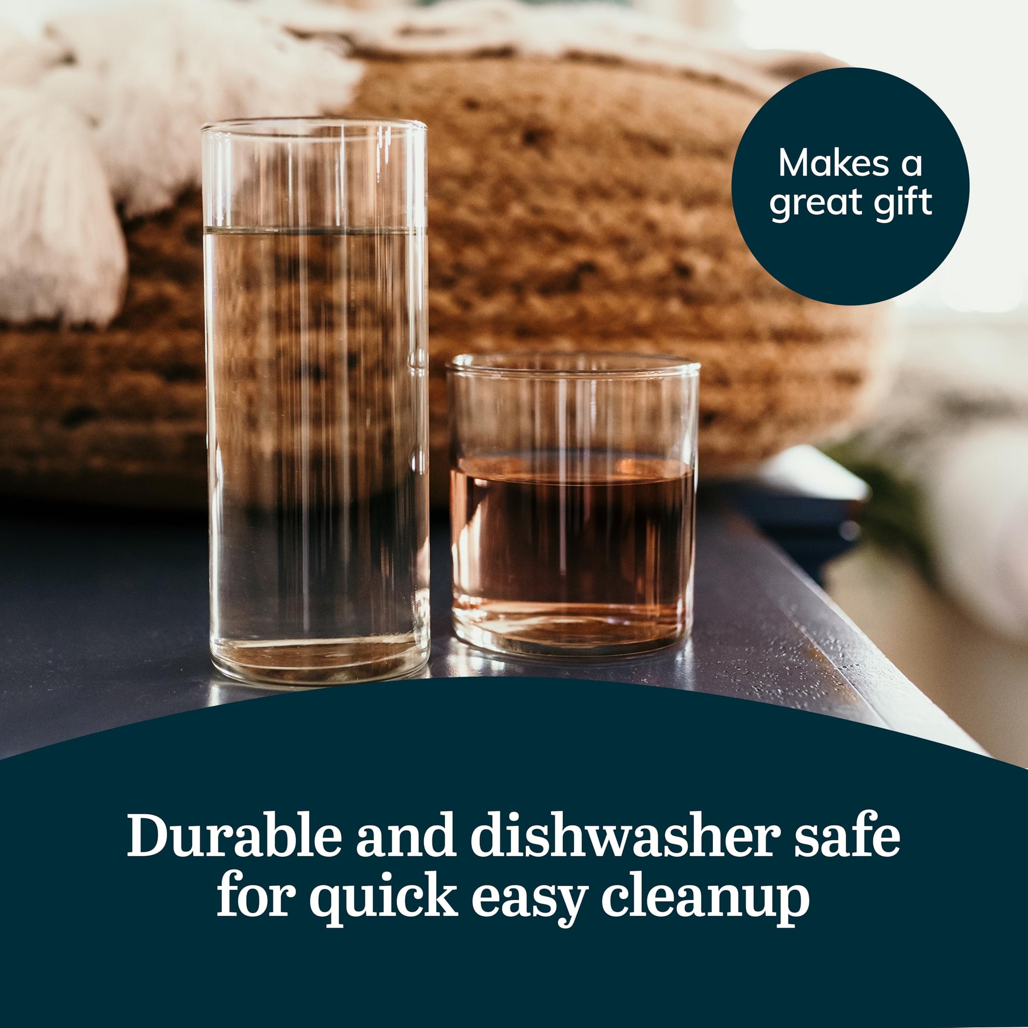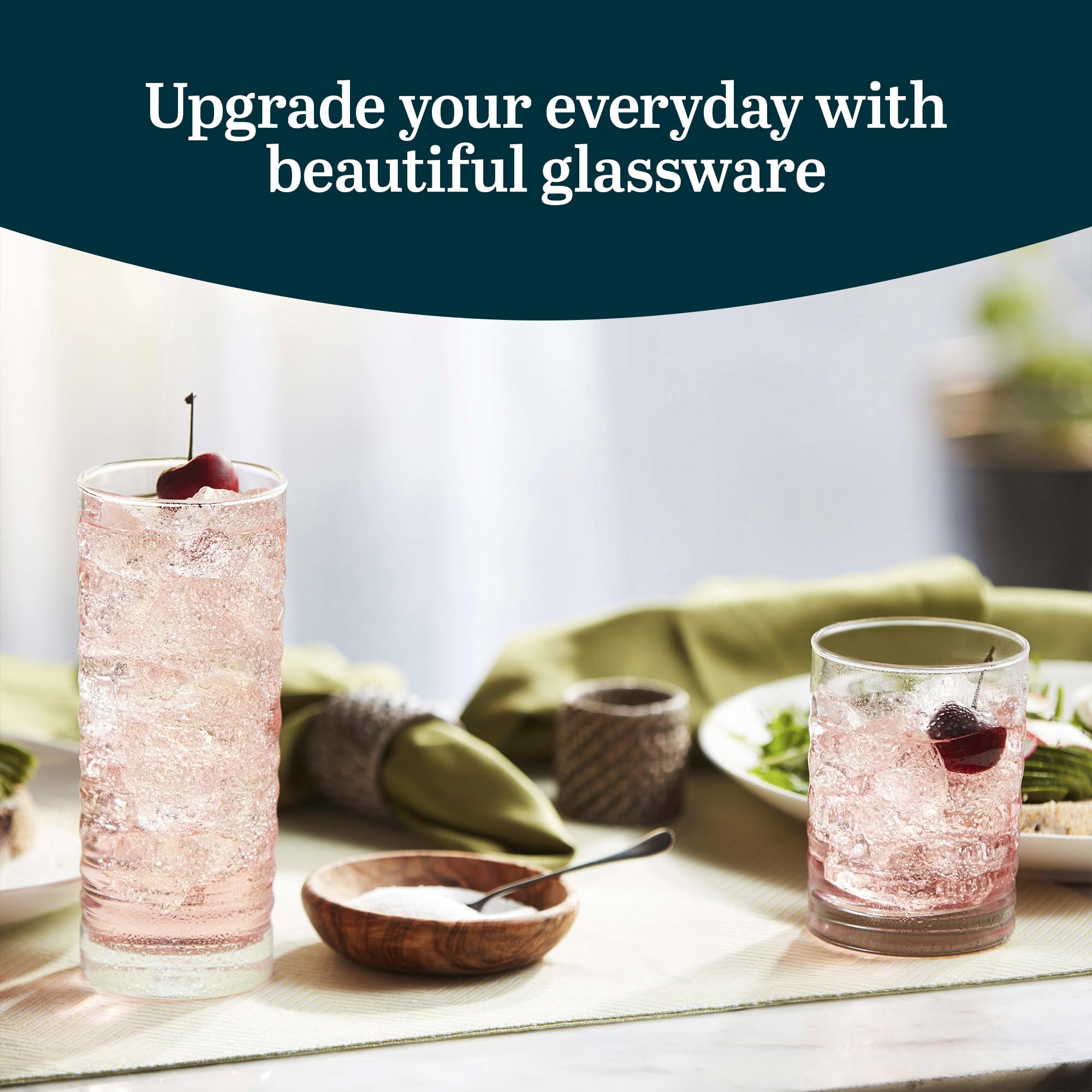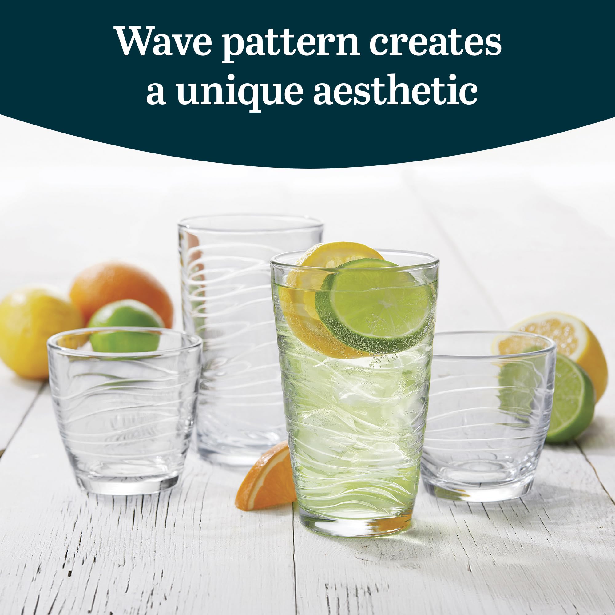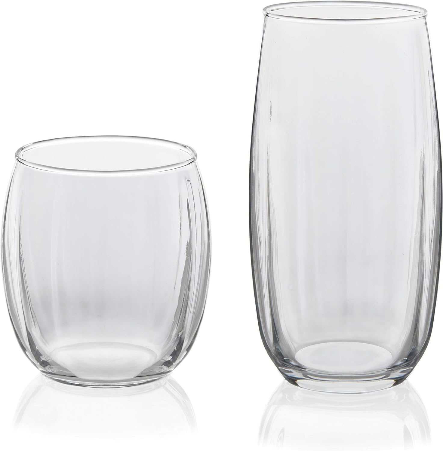 Libbey Ascent Tumbler and Rocks Drinking Glasses Set of 16, Glass Drinking Glasses with Curvature, Versatile Glassware Set for Parties and More