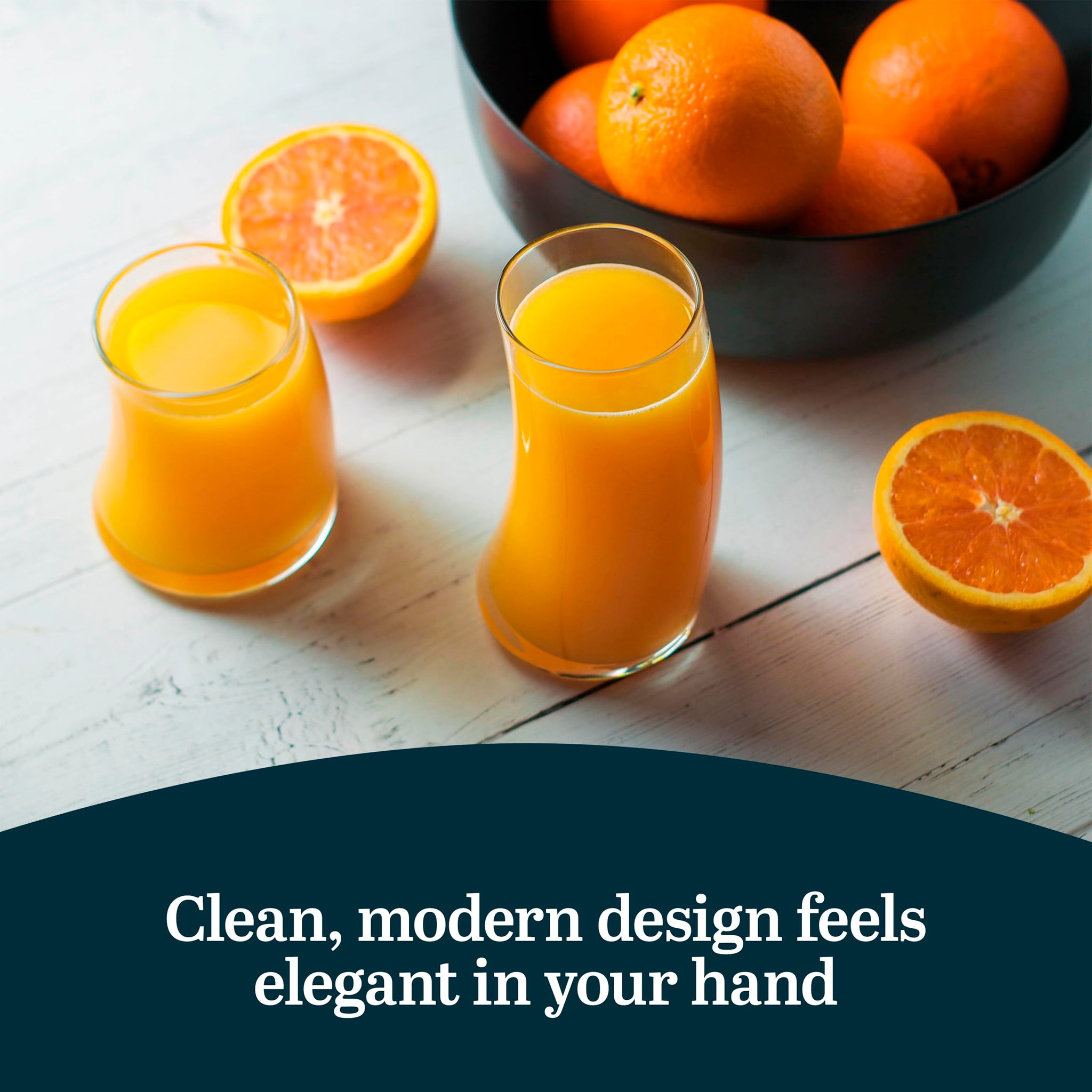 • Elegant Drinking Glasses: Our kitchen dinner glasses features an elegant curvature and smart, strong lines; the graceful curved base of these clear drinking glasses meet pin-straight walls for a starkly elegant presentation