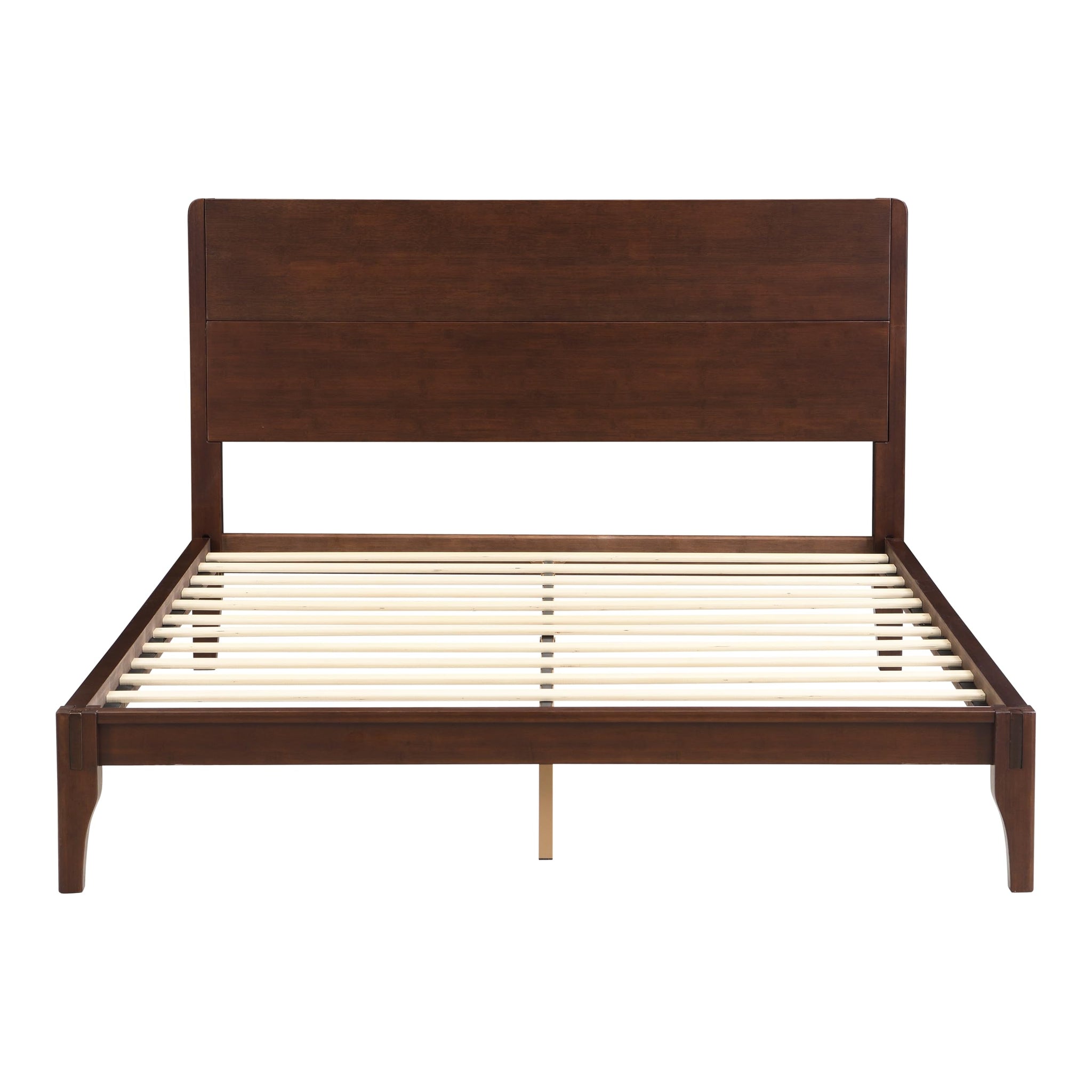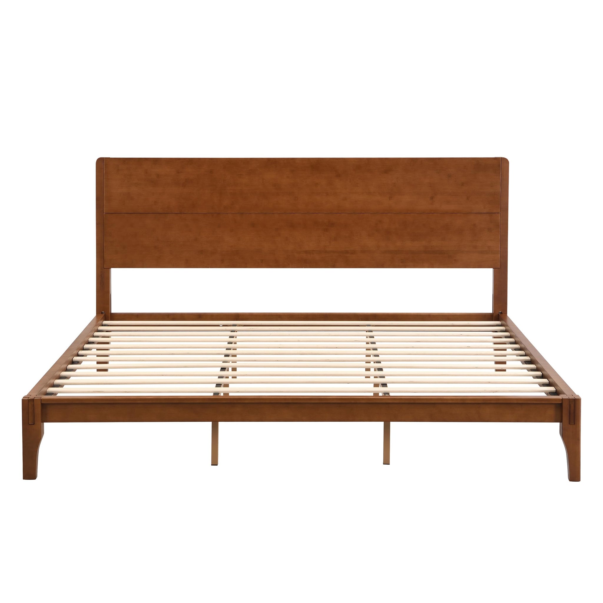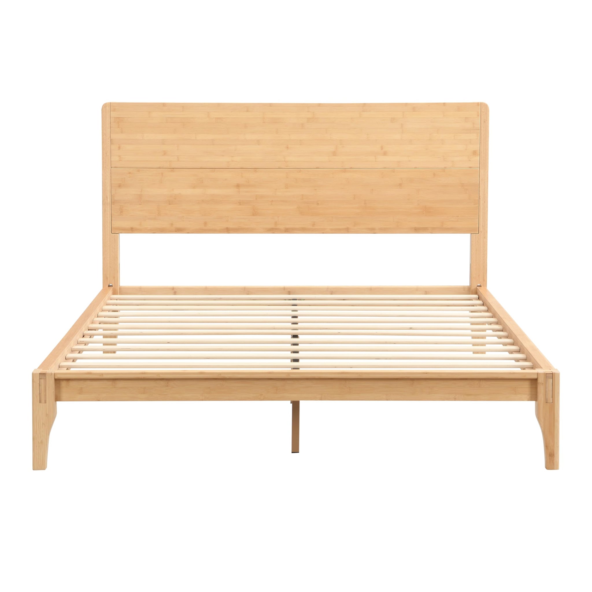 Merax Queen Size Bamboo Platform Bed, Mid-Century Modern Bed Frame with Tall Headboard, Solid Sustainable Bedframe Queen-size, Wood Slat Support, No Box Spring Needed, Easy Assembly, Noise Free, Brown