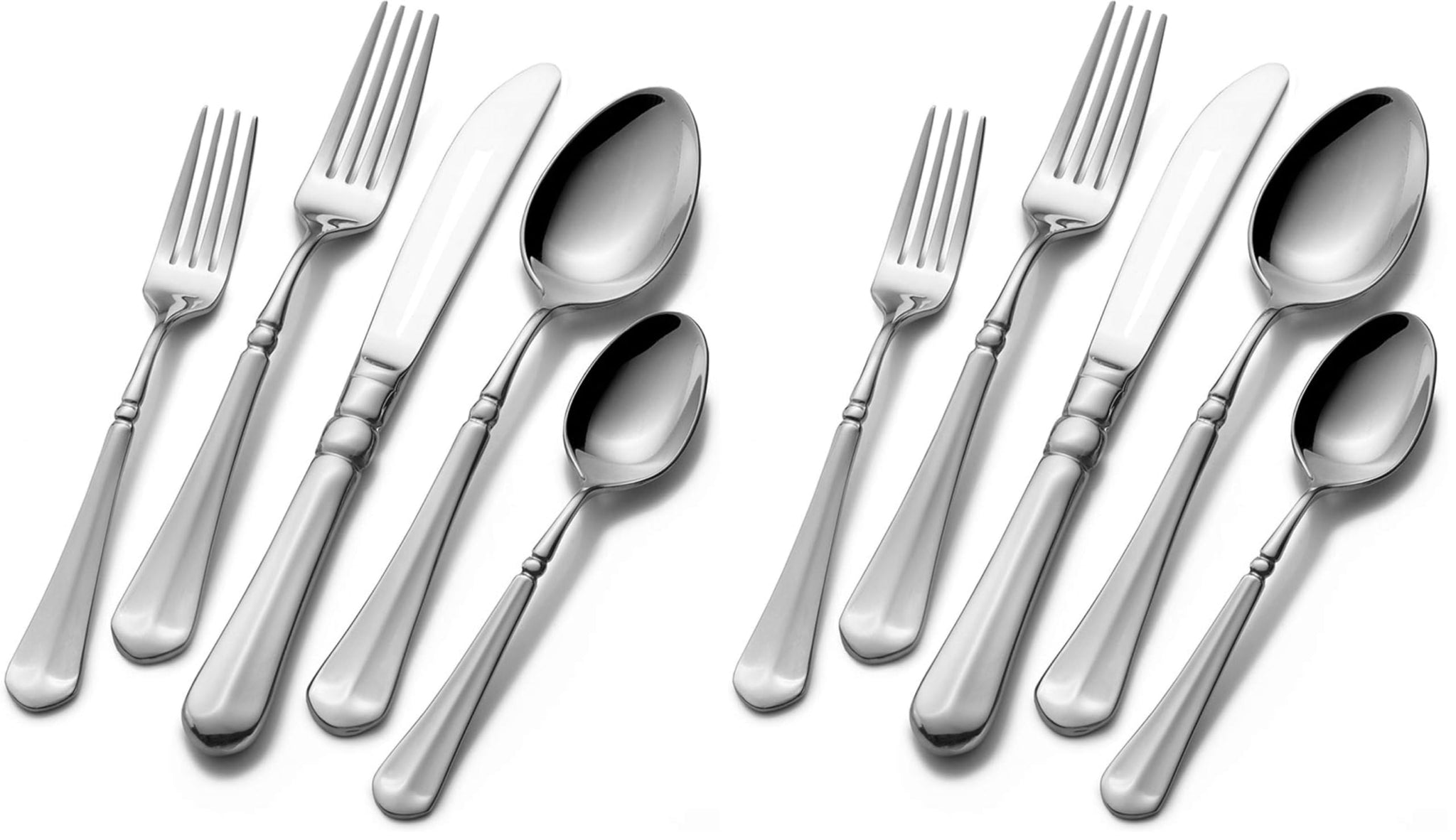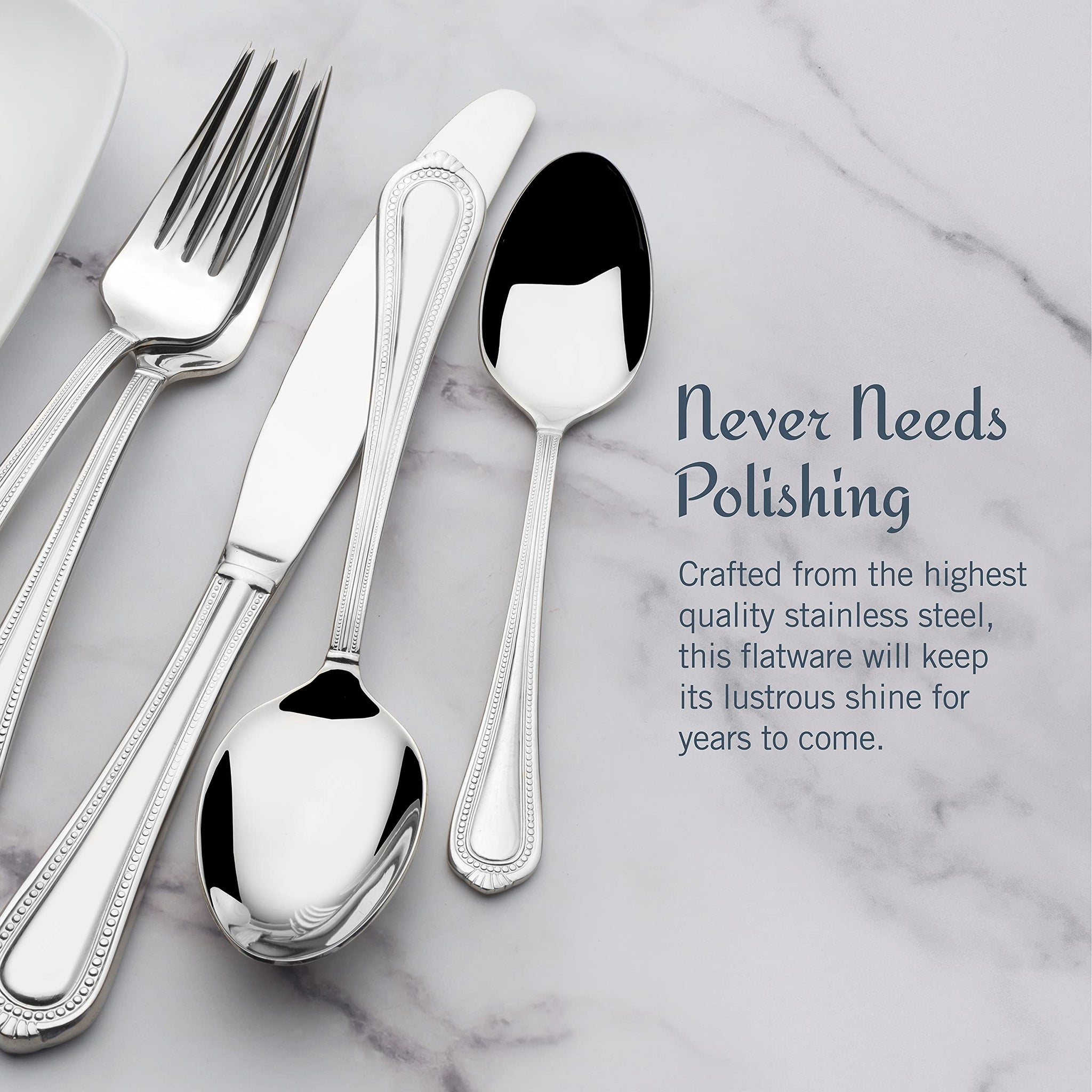Mikasa Regent Bead 65-Piece Flatware Set for 12, 18/10 Stainless Steel Silverware with Full Service and Serving Utensils, Classic Beaded Edge Design