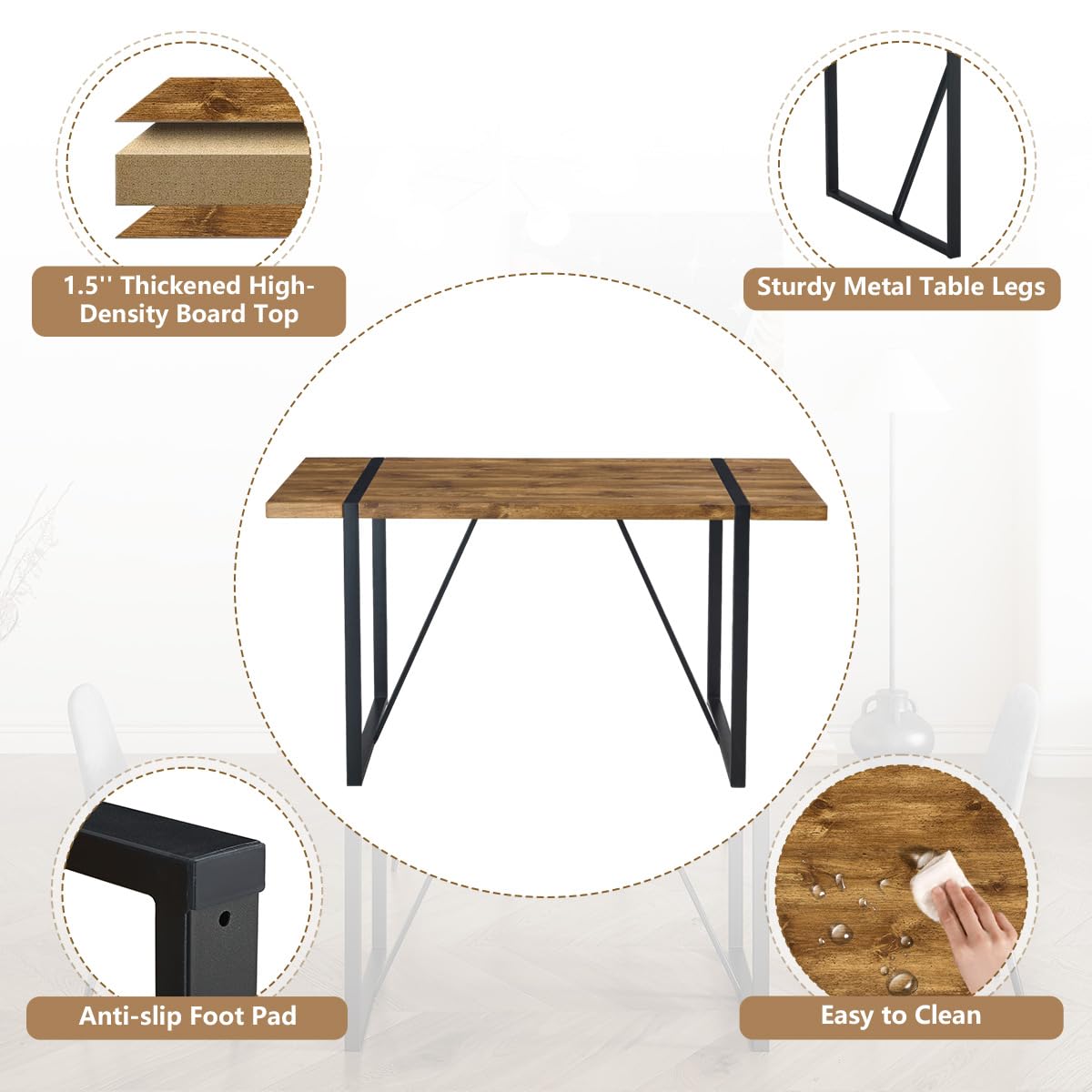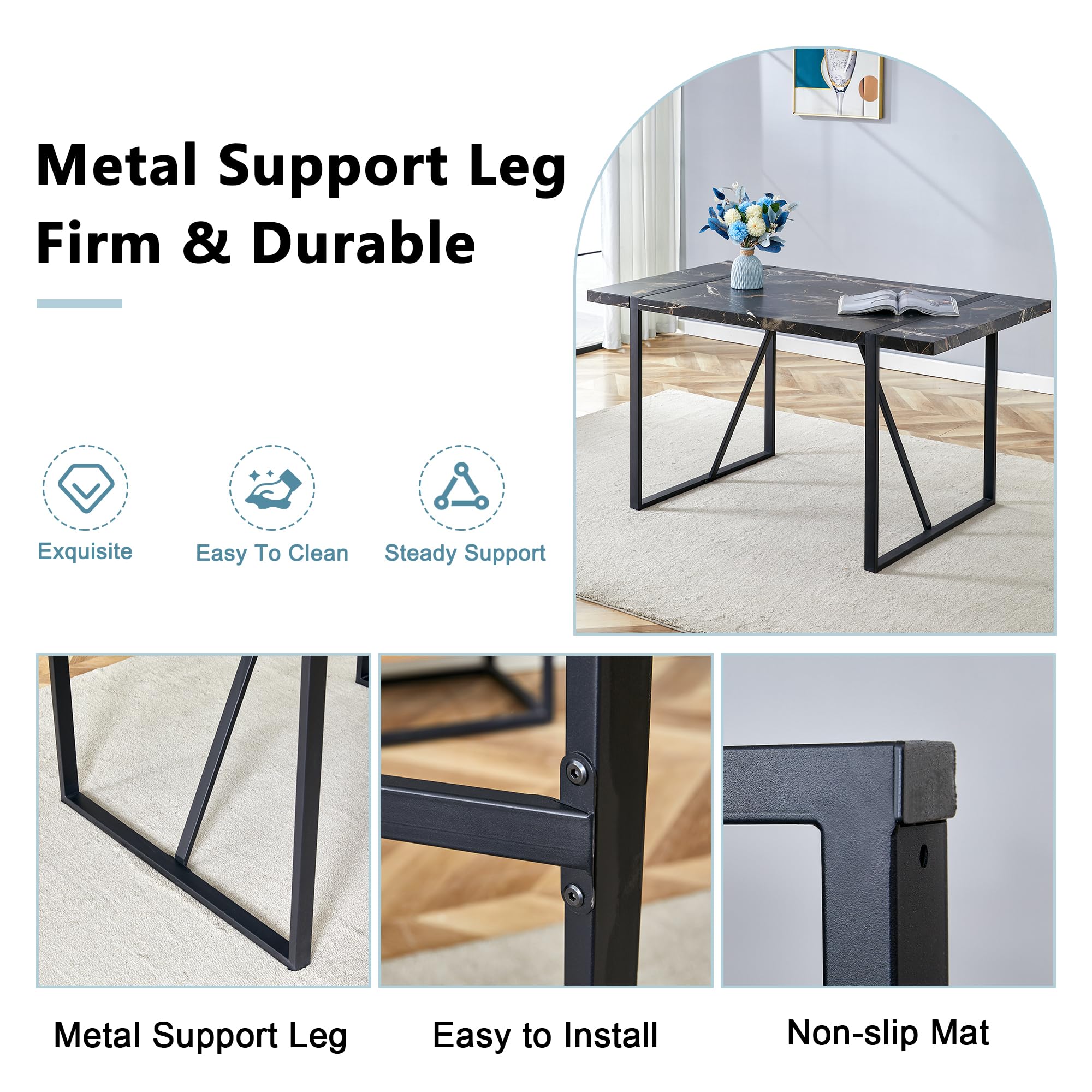 Effortless Assembly and Cleaning: 5 piece dining table set comes with all the necessary components and user-friendly instructions, ensuring that assembly is a breeze for everyone. Plus, it's designed to be scratch-resistant and incredibly easy to maintain. To clean, simply wipe the tabletop with a damp cloth to remove any grease or stains, saving you valuable time and effort