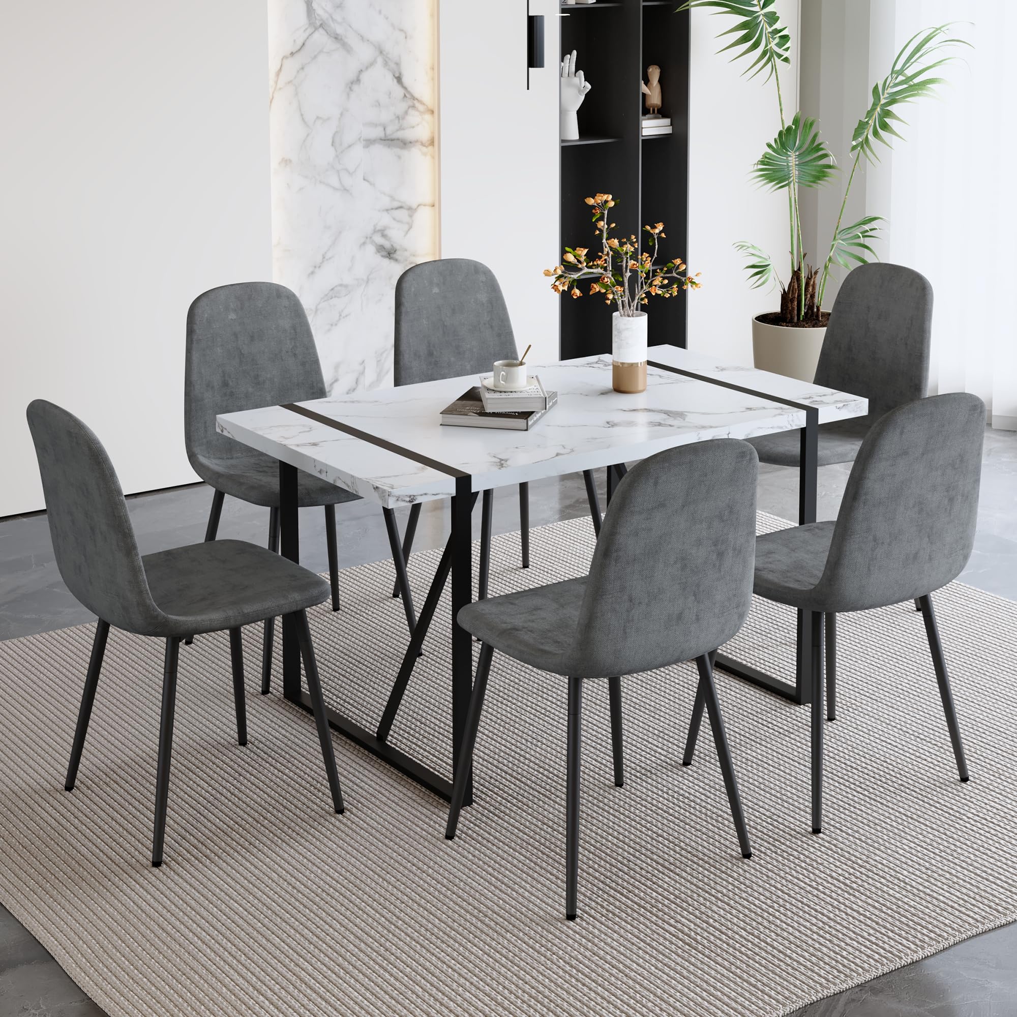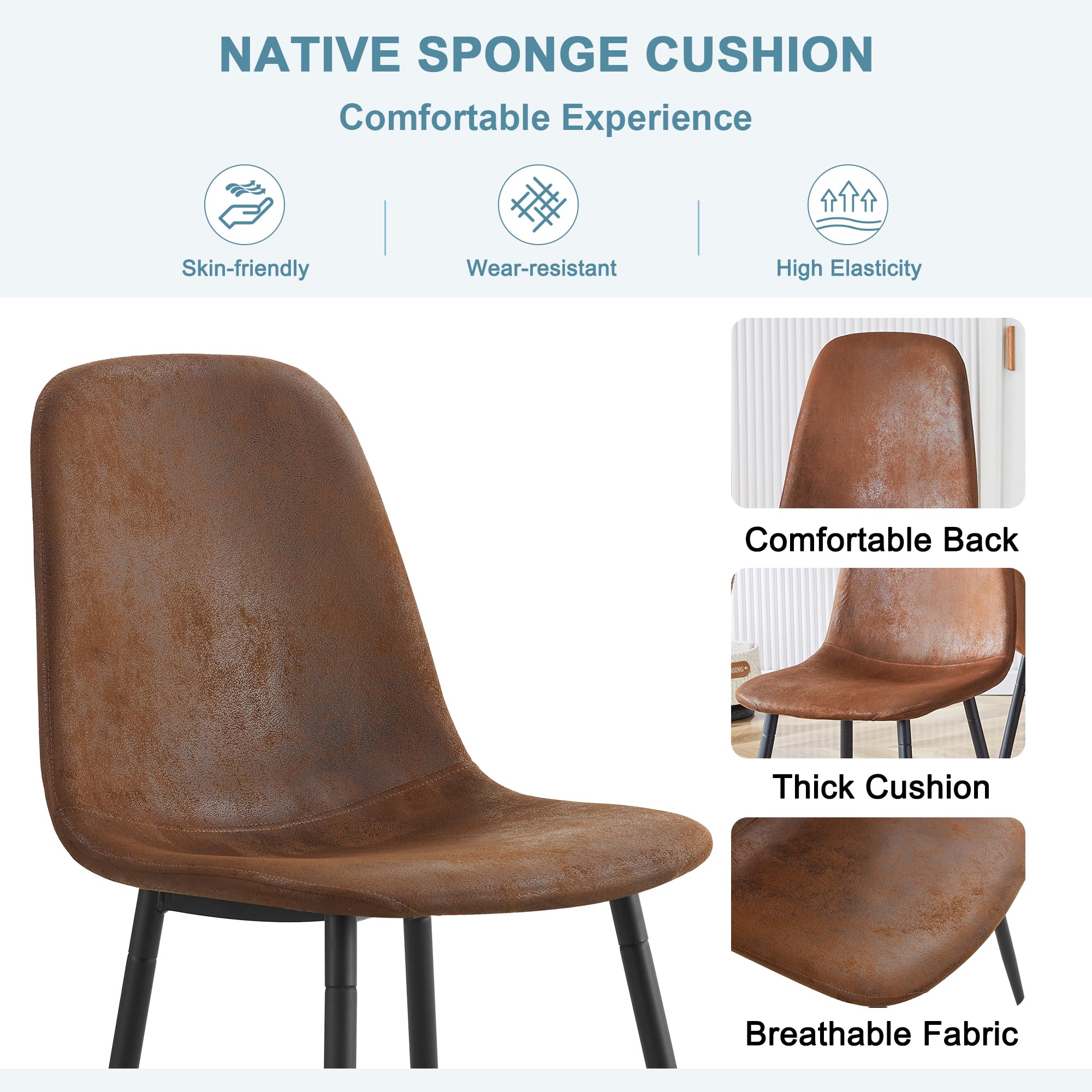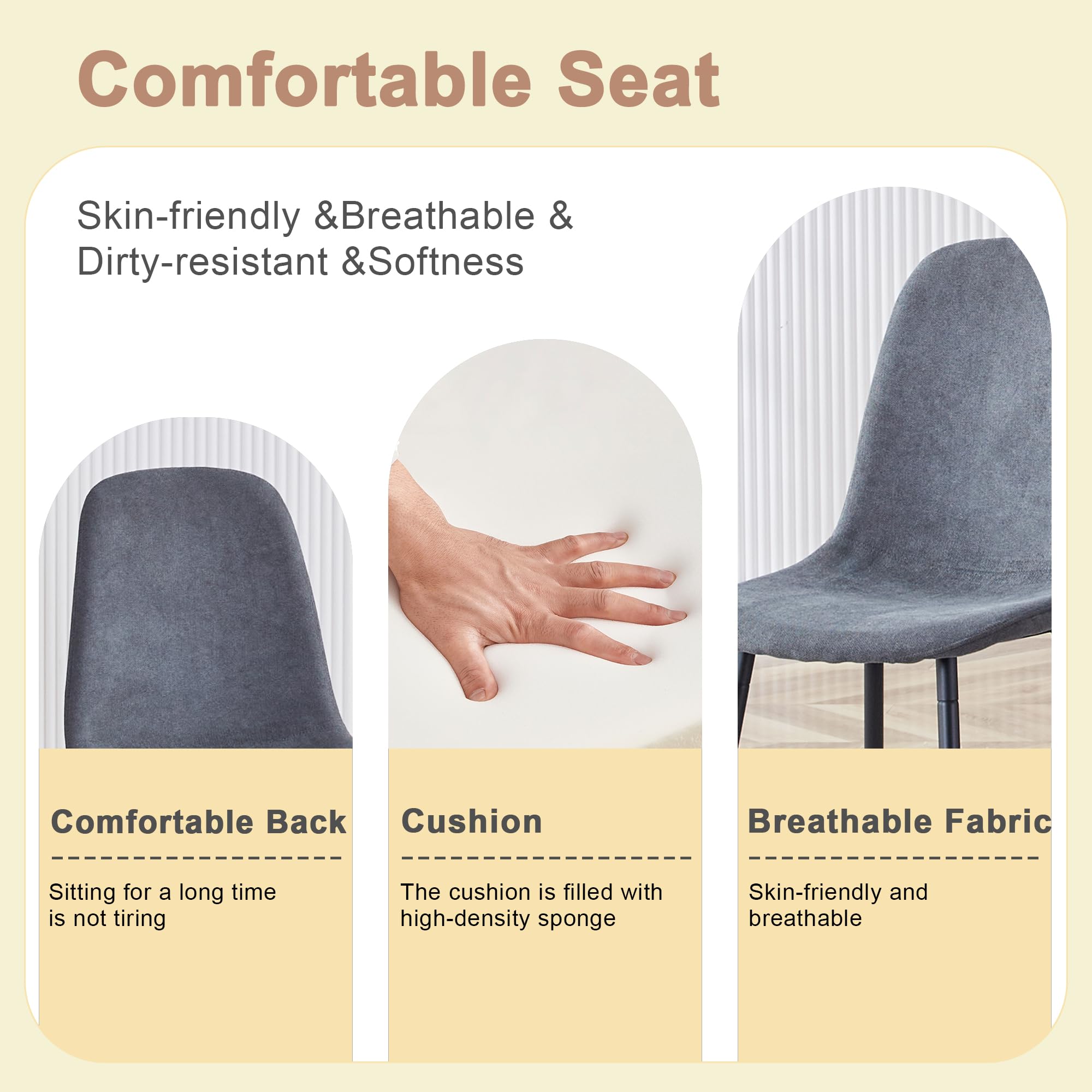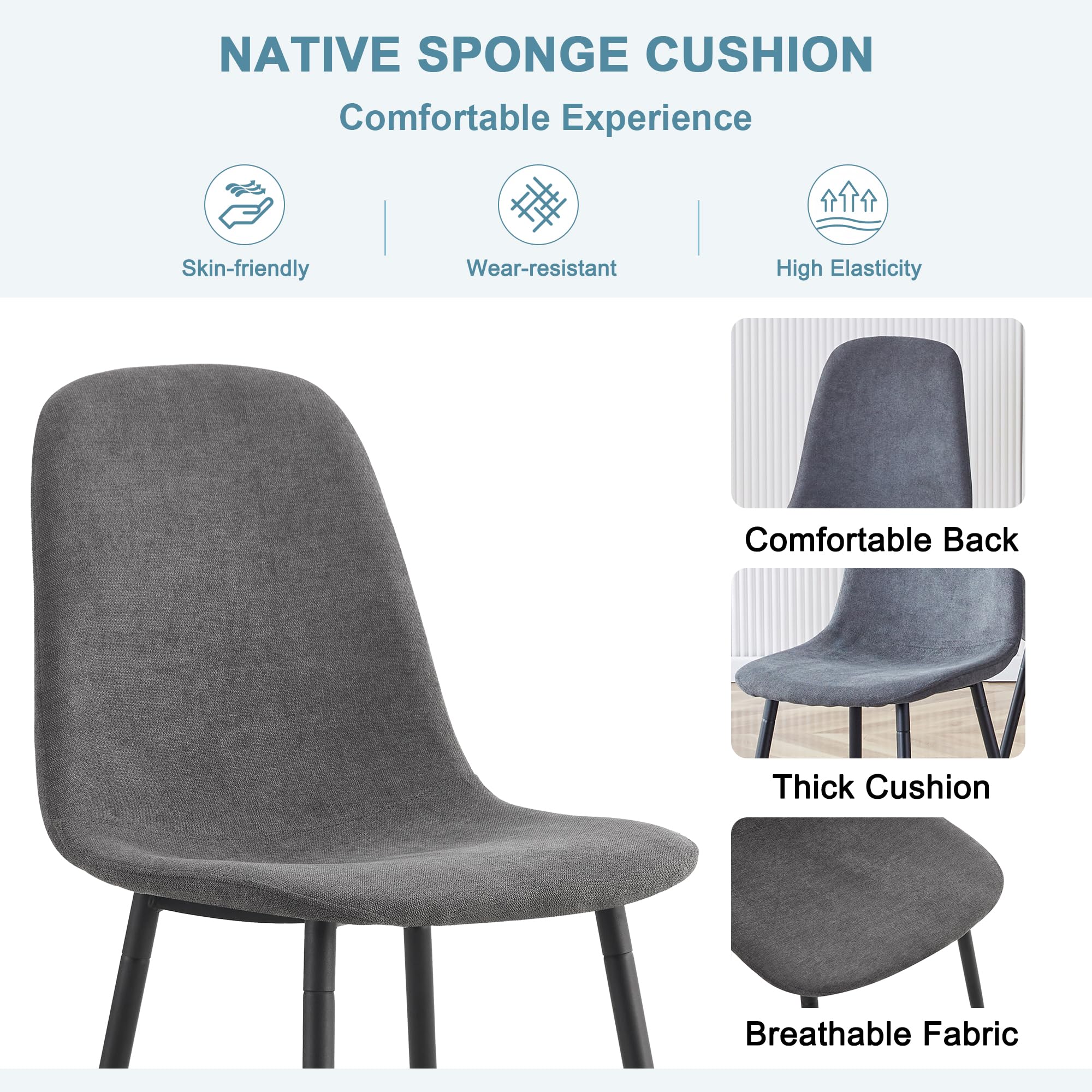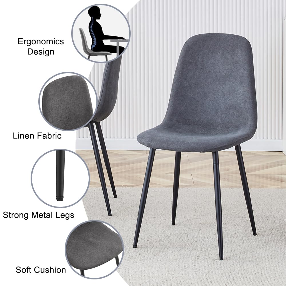 Durable & Sturdy Dining Table Set for 4: Our dining table set is designed for durability. The table boasts a 1.5-inch thick high-density board top supported by sleek black-painted metal table legs, ensuring a sturdy and long-lasting lifespan. The chairs, crafted from linen fabric, offer perfect ergonomic support, making your dining experiences comfortable and enjoyable