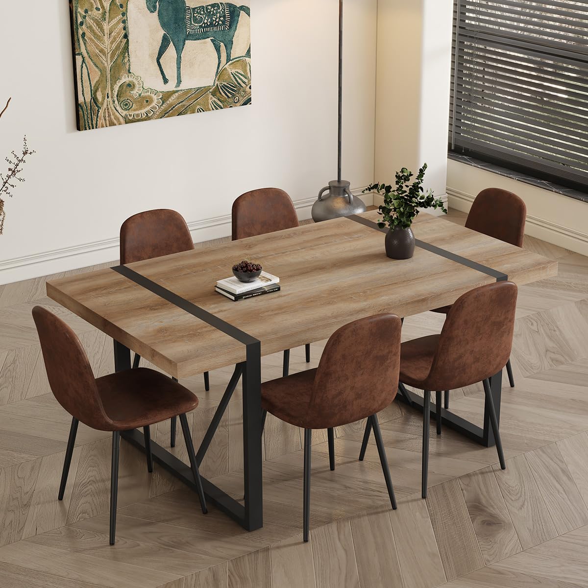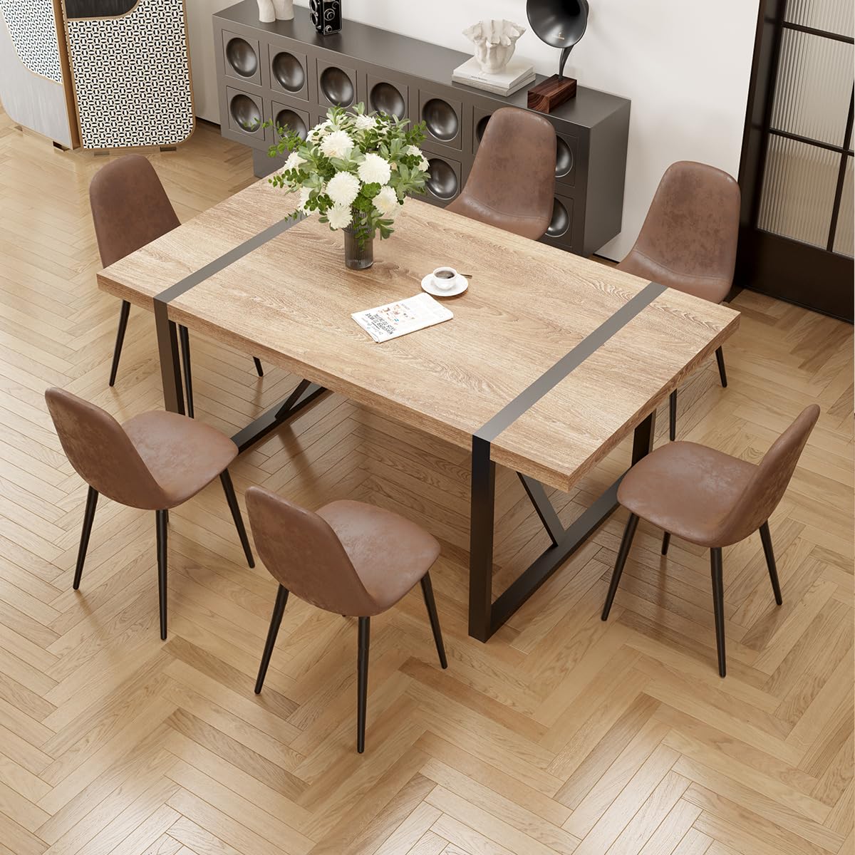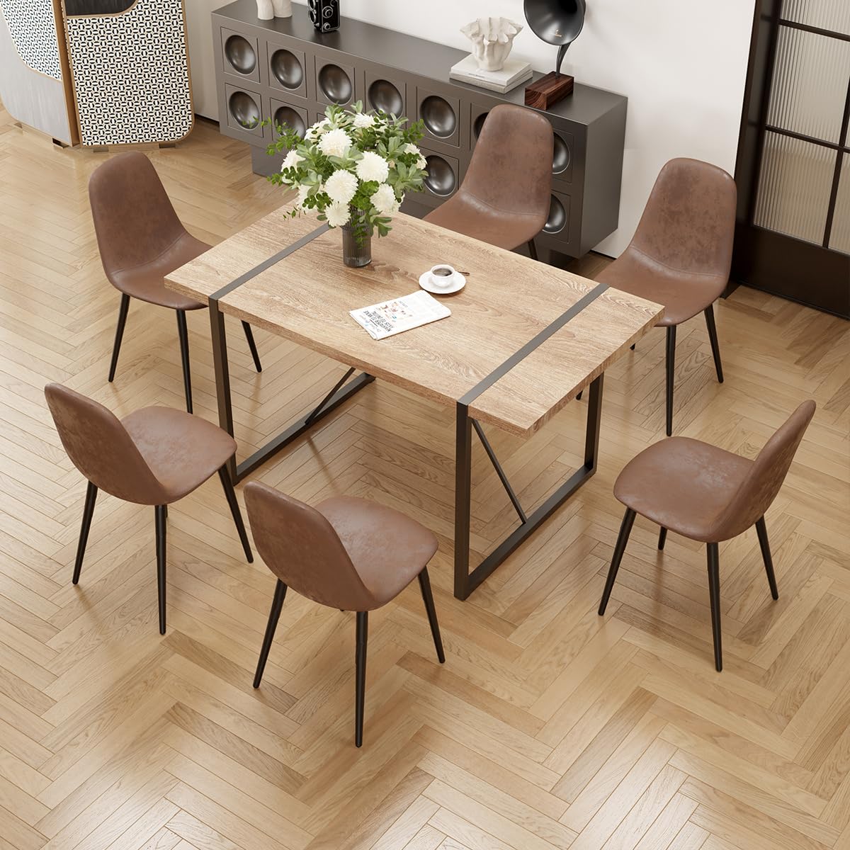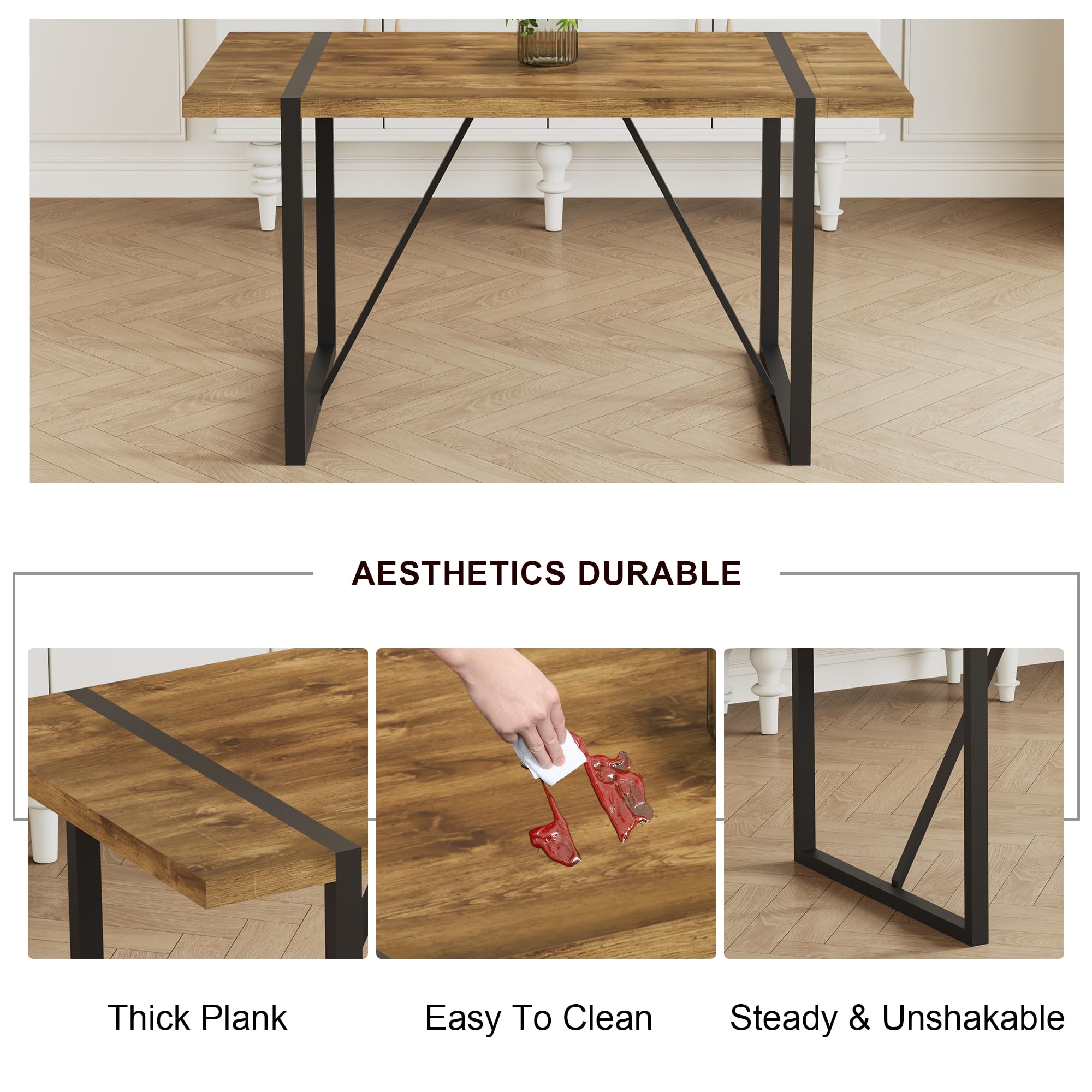 Durable & Sturdy Dining Table Set for 4: Our dining table set is designed for durability. The table boasts a 1.5-inch thick high-density board top supported by sleek black-painted metal table legs, ensuring a sturdy and long-lasting lifespan. The chairs, crafted from linen fabric, offer perfect ergonomic support, making your dining experiences comfortable and enjoyable