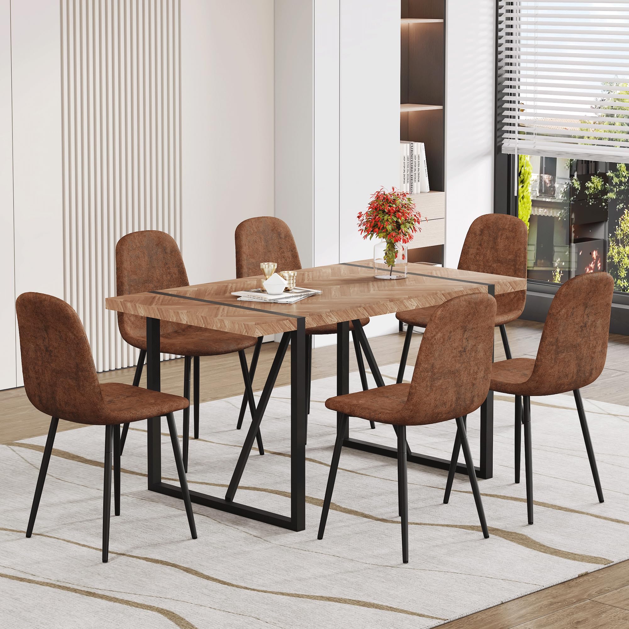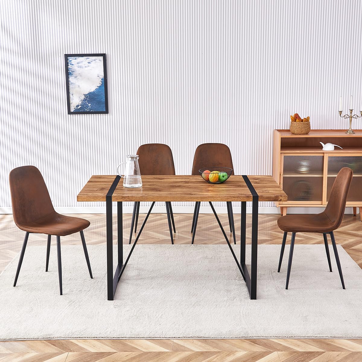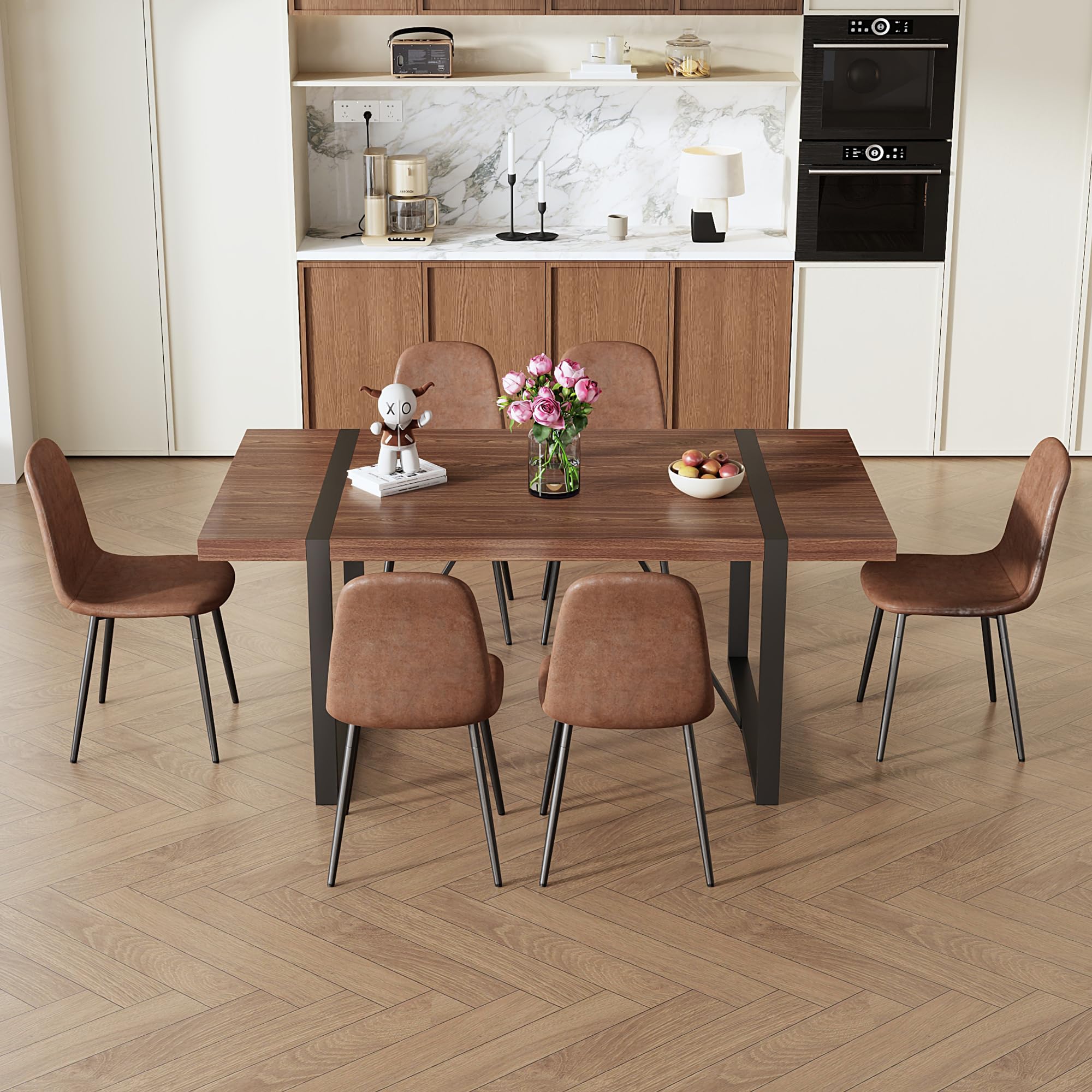 MUUOKY Dining Table Set for 4, Modern 55'' Wood Dinette Table Set for 4 with Fabric Dining Chairs,Table and Chairs Set of 4,Ideal for Kitchen Dining Room