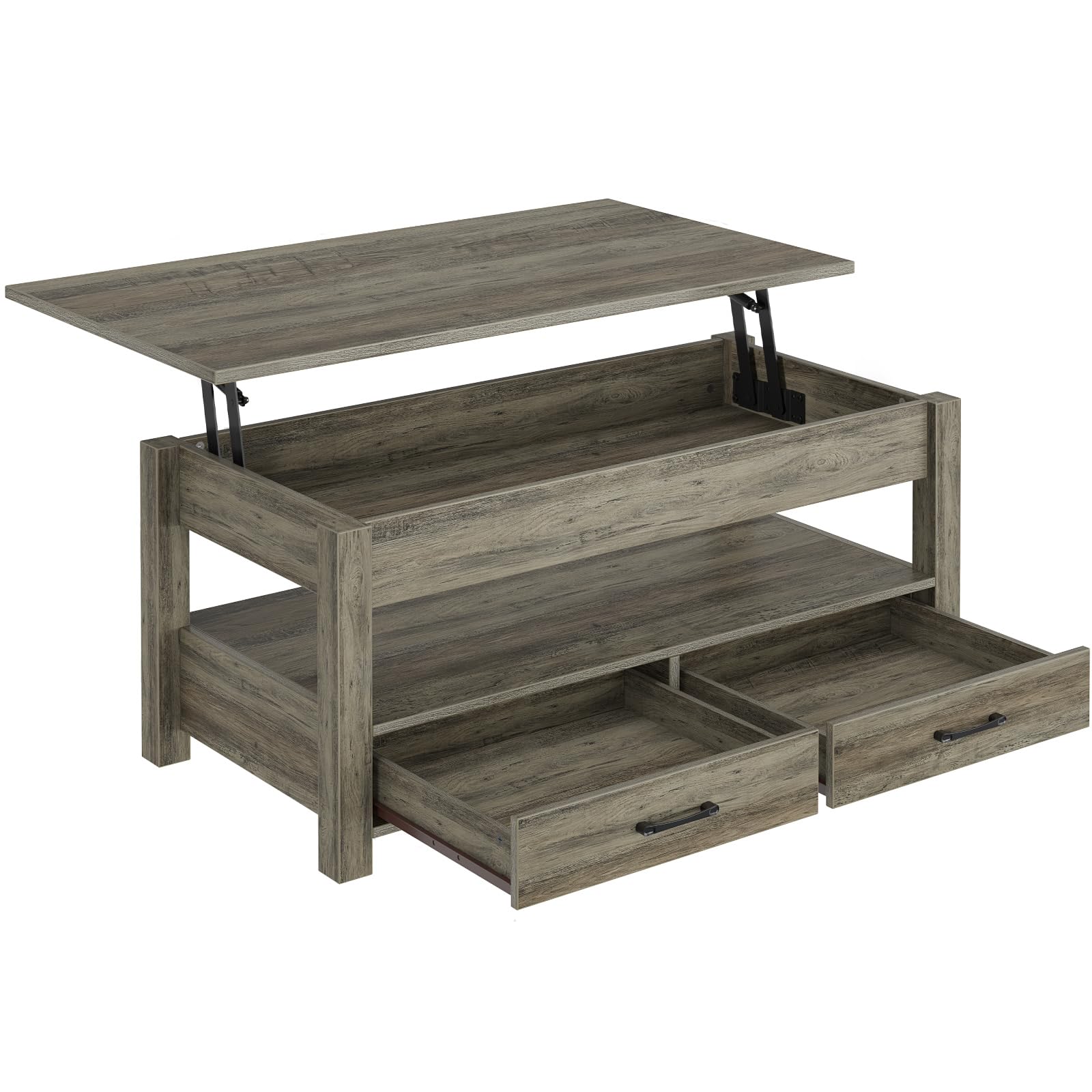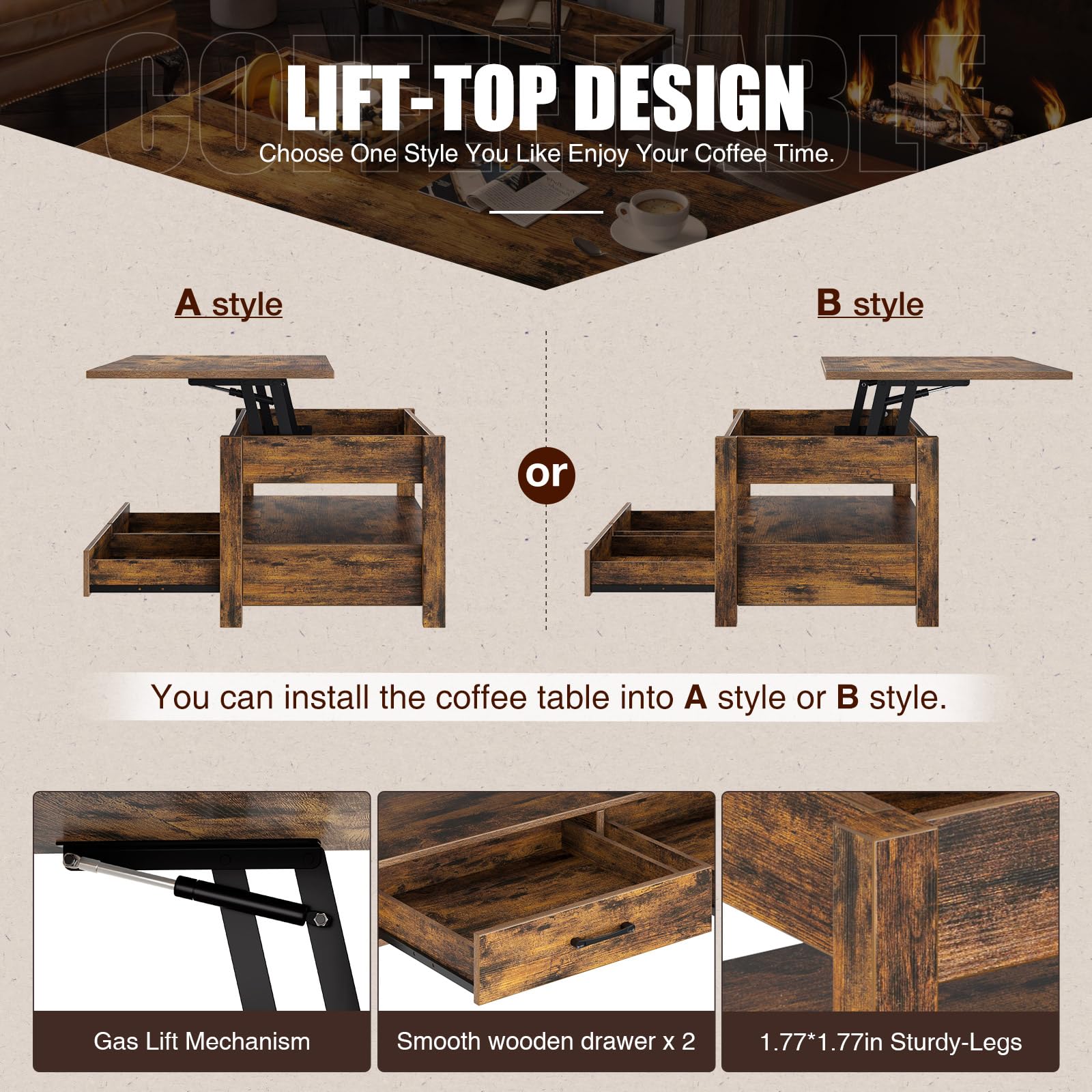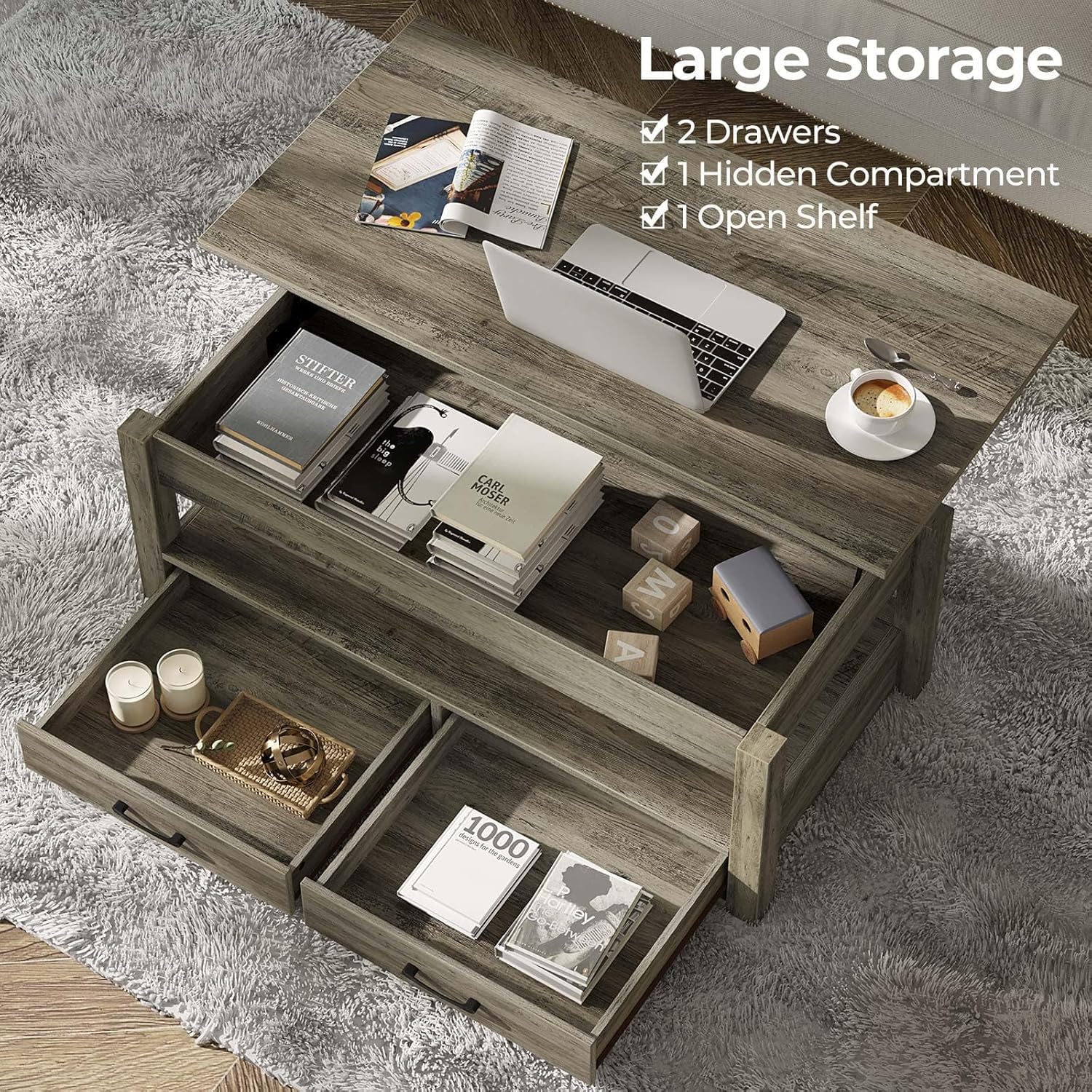 Rolanstar Coffee Table, Lift Top Coffee Table with Drawers and Hidden Compartment, Retro Central Table with Wooden Lift Tabletop, for Living Room,Espresso