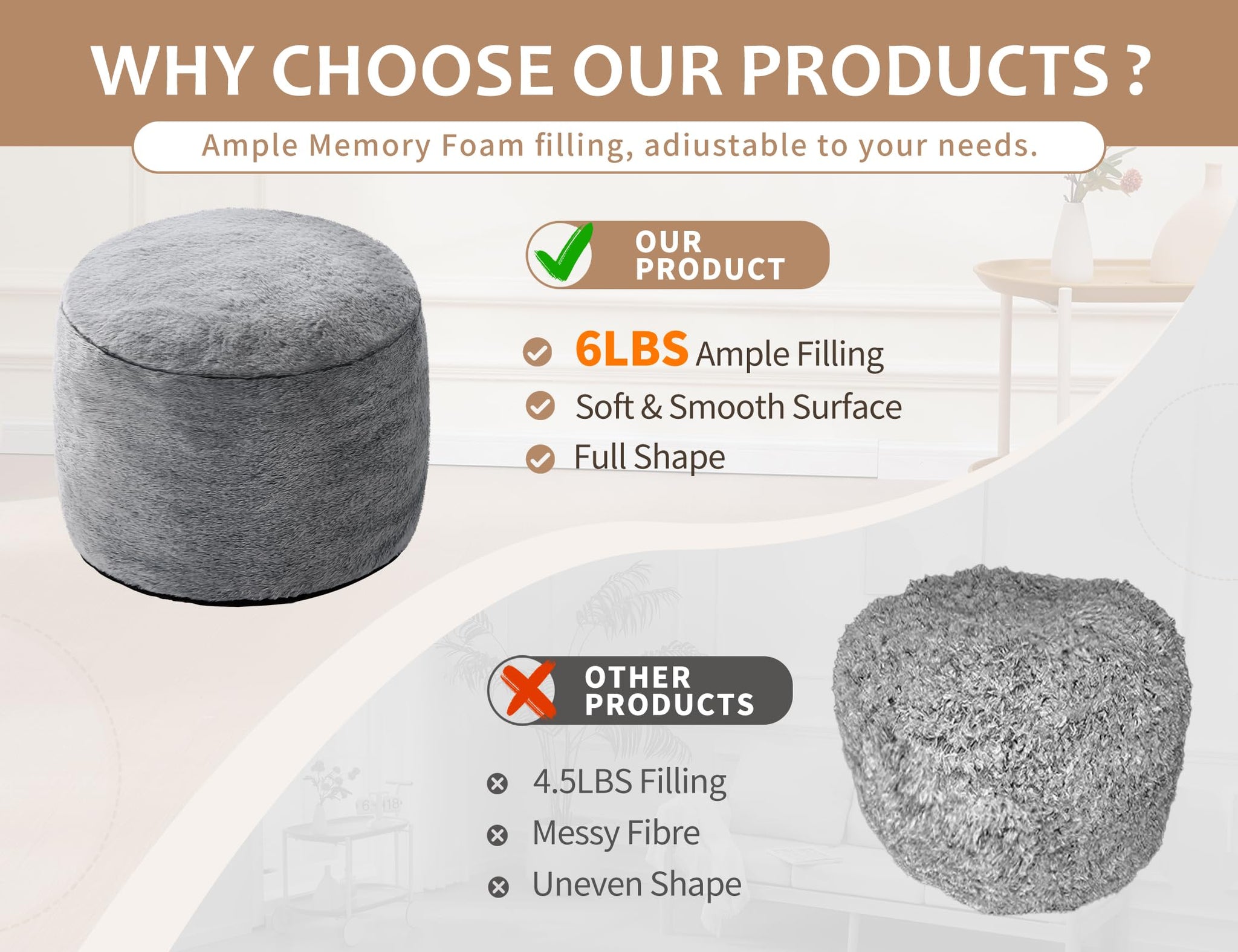 • Thoughtful Gift Tall Ottoman: This quality foot pouf ottoman is sure to be the perfect addition to your home and office. The soft ottoman is an ideal gift for friends and family, suitable for birthdays, holidays, and other occasions. The 15 inch height of pouf ottoman stuffed provides optimal support for healthy blood circulation. This large pouf ottoman can be used as a farmhouse ottoman, table, chair, living room furniture, bean bag foot rest, floor cushion, footrest ottoman.