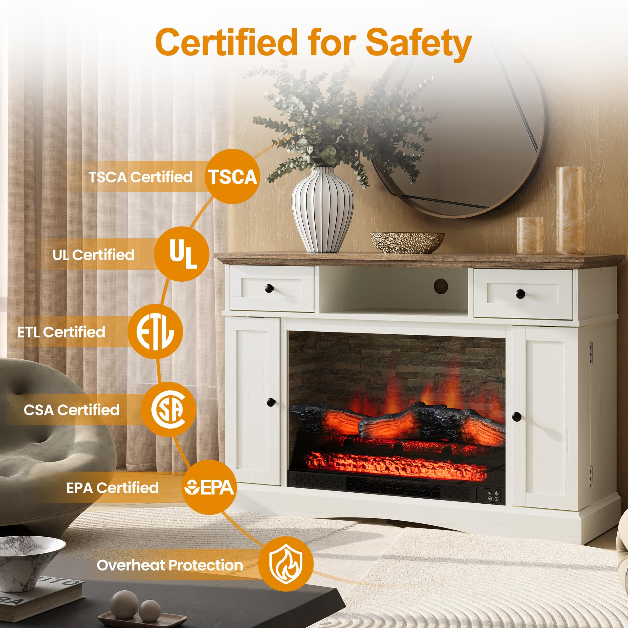 • Safty First: Crafted from premium engineered wood and TSCA/EPA certified, this TV cabinet features a UL and ETL-certified electric fireplace with CSA certification and smart overheat protection for a safe, cozy experience. Intuitive buttons and a convenient remote control make it easy to enjoy warmth at your fingertips.