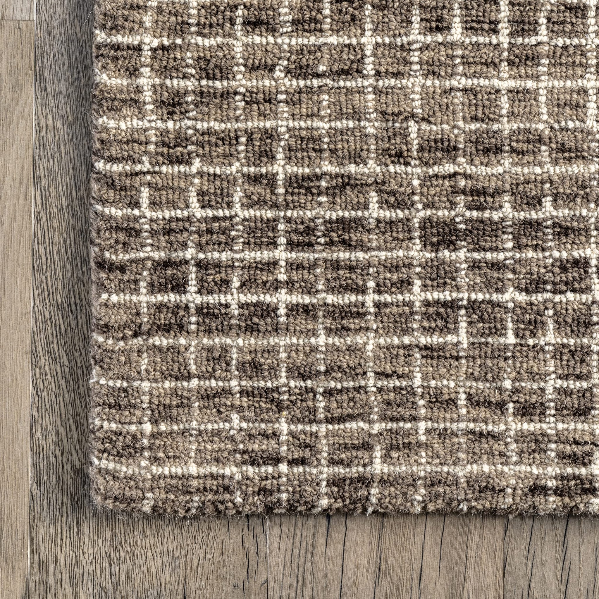 Rugs USA 8'6" x 11'6" Melrose Checked Wool Indoor Area Rug, Contemporary Farmhouse Cream for Living Room, Bedroom, Office, Entryway, Hallway