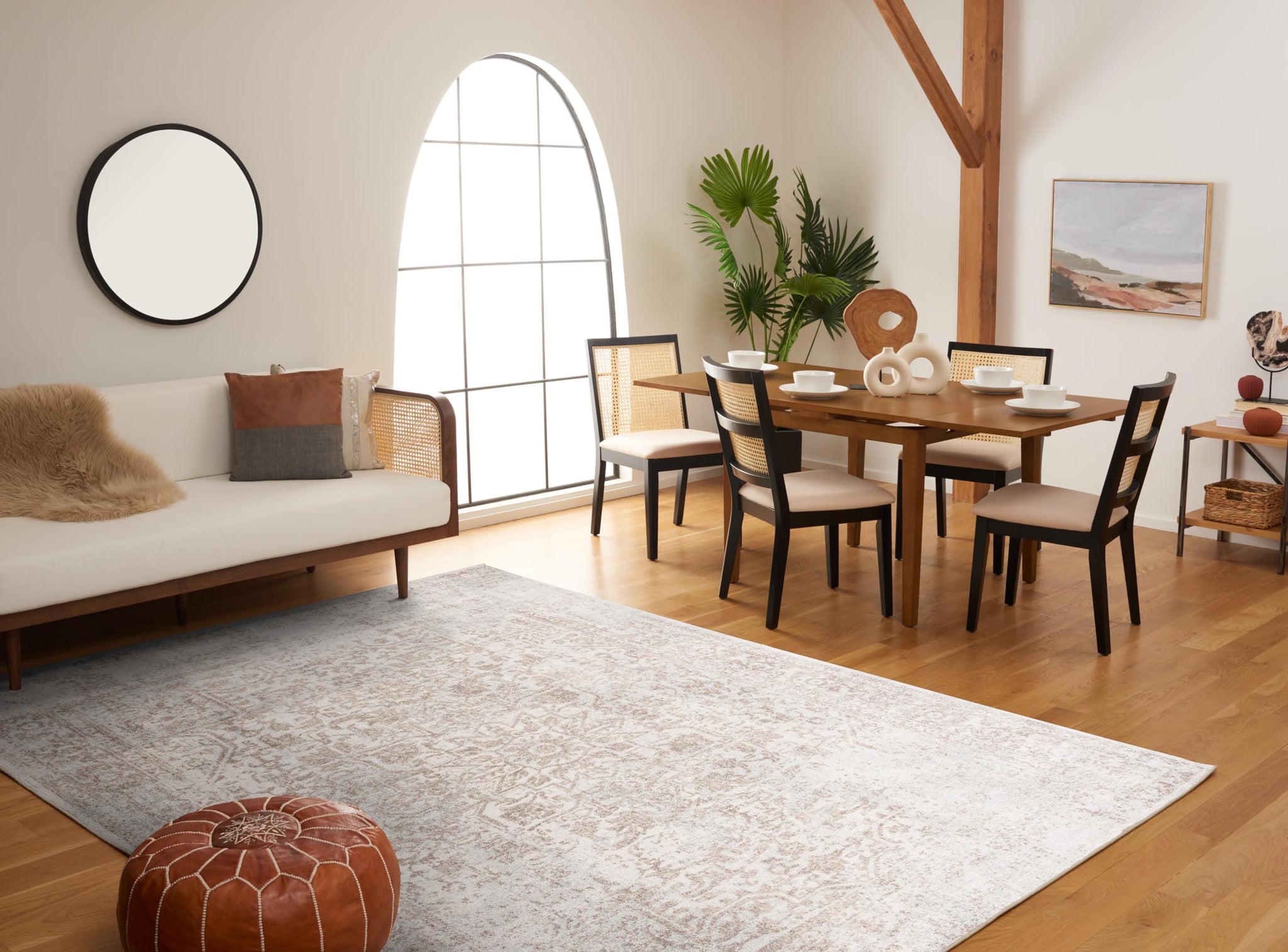 SAFAVIEH Evoke Collection Area Rug - 9' x 12', Ivory & Taupe, Oriental Distressed Design, Non-Shedding & Easy Care, Ideal for High Traffic Areas in Living Room, Bedroom (EVK256E)