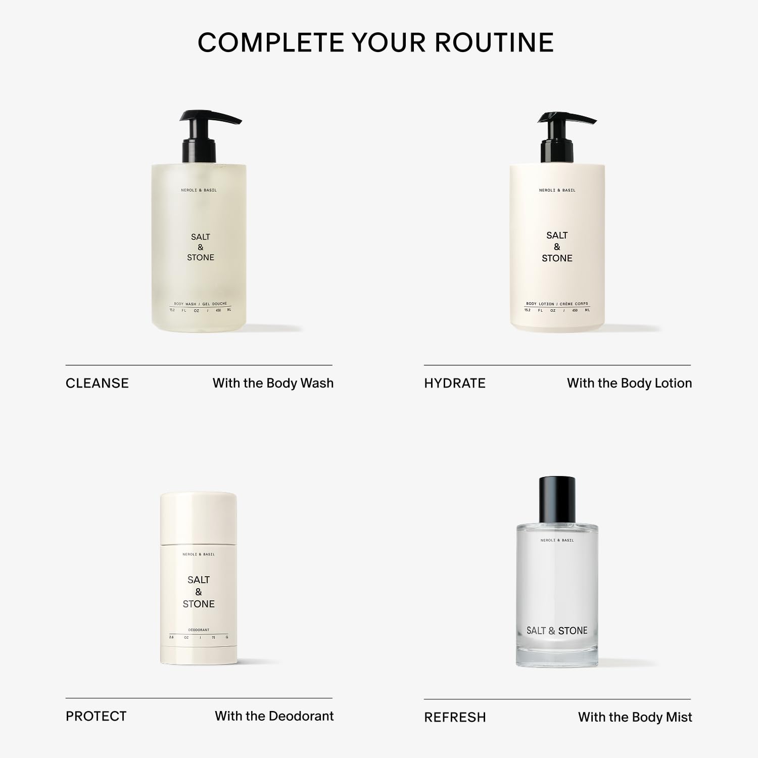 Salt & Stone Body Wash with Antioxidants for Deep Moisture | For Women & Men, Sulfate, Paraben, & Dye Free, Leaving Skin Soft and Hydrated | Bergamot & Hinoki 15.2 fl oz