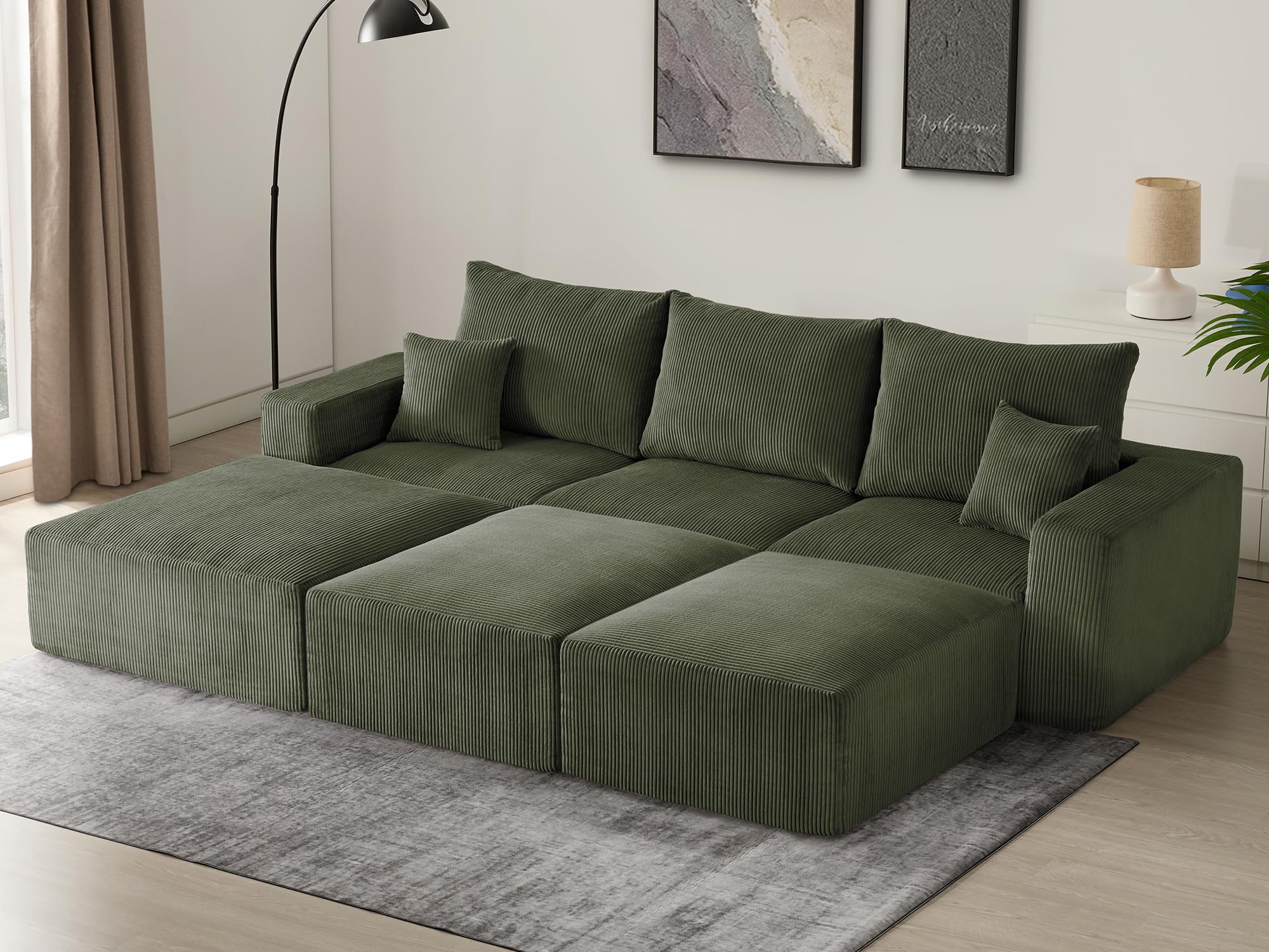 • Multifunctional Use: More than just a regular sofa, This sofa features three large back cushions, two small throw pillows, and two movable ottomans, it transforms into a comfortable U-Shaped Sofa, providing extra sleeping space. Perfect for daily use or accommodating guests, it combines functionality with aesthetic appeal. Enjoy the practicality and stylish design of this versatile sofa bed.