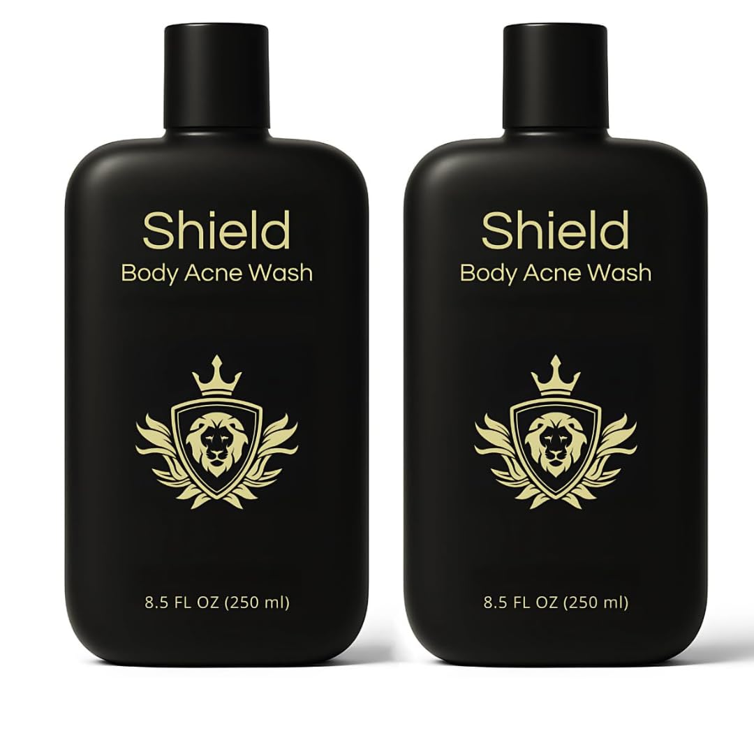 Shield Men's Acne Body Wash for Back, Chest & Shoulders - 4% Benzoyl Peroxide Body Wash, Clears Breakouts & Acne Scars – Unscented with Niacinamide, Glycolic Acid & Ceramides, 8.5 oz