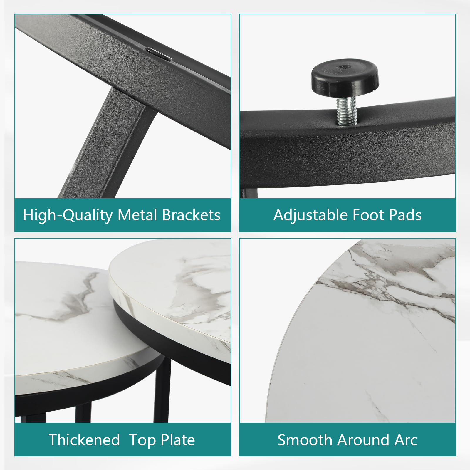 • 【Flexibility】Small Nesting Tables: 15.7"(D) x 15.7"(H), Large Nesting Tables: 23.6"(D) x 17.7". The nesting design of these coffee tables makes them highly flexible, allowing for quick retrieval when guests arrive and easy storage when not needed.