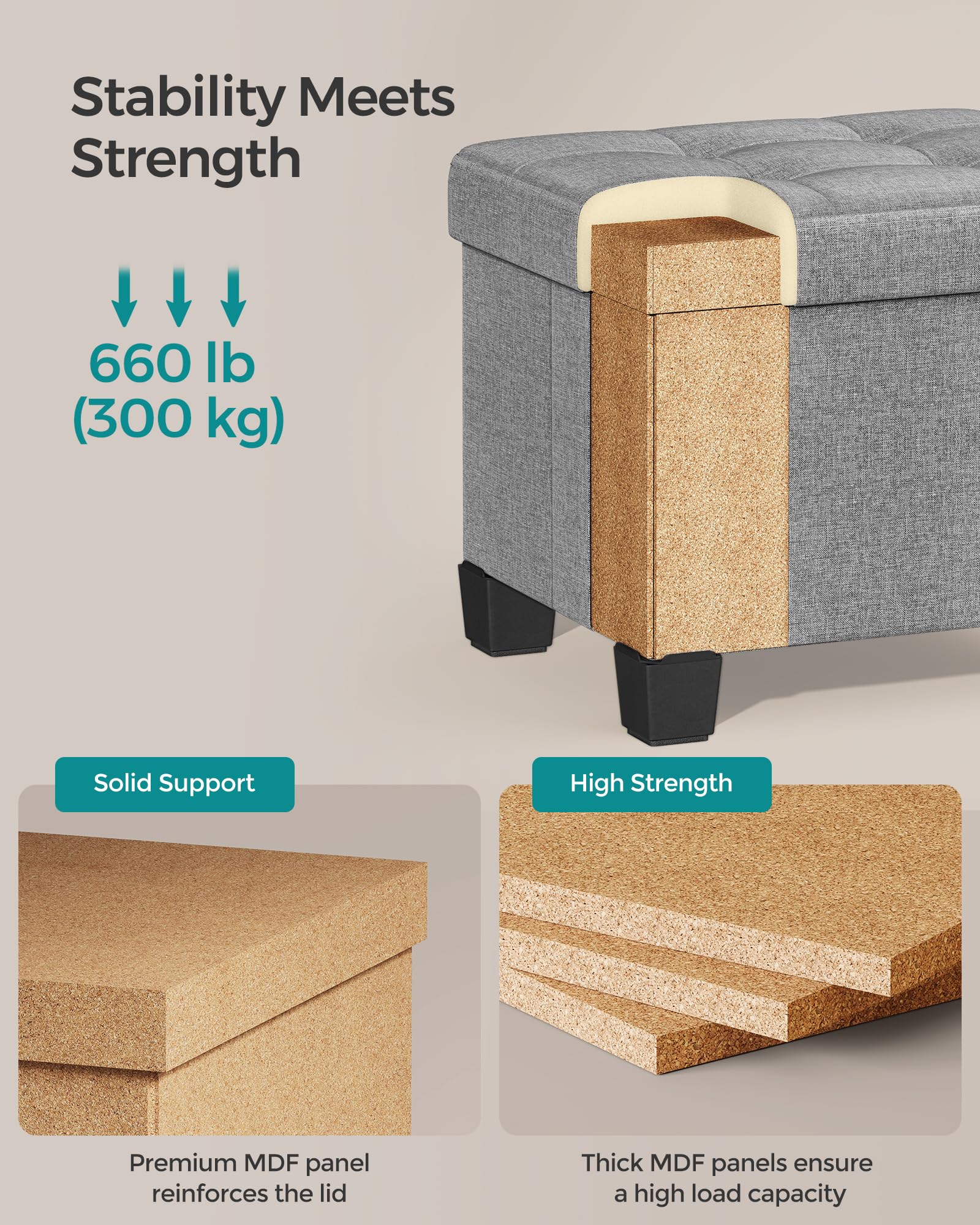 • [Refined & Robust] Crafted from linen-look fabric, this storage ottoman features neat stitching and a refined aesthetic. Built with thick MDF panels and reinforced with metal corner guards on the lid, it has a max. static load capacity of 660 lb (300 kg)