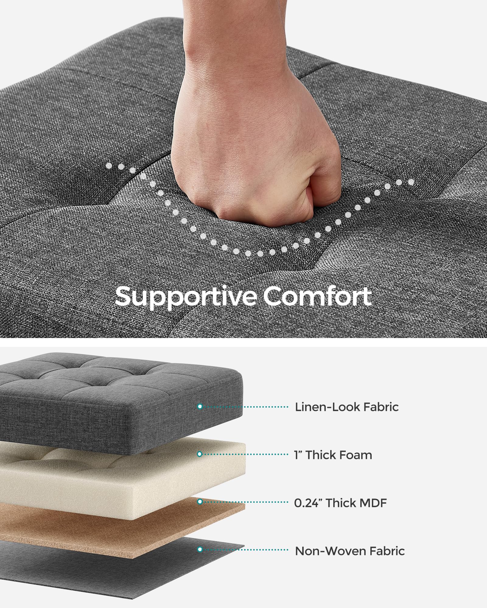 • [Comfortable Seating] Padded with high-density foam on top and covered in a linen-look fabric that is both soft and breathable, this ottoman bench offers great comfort while maintaining its shape over time