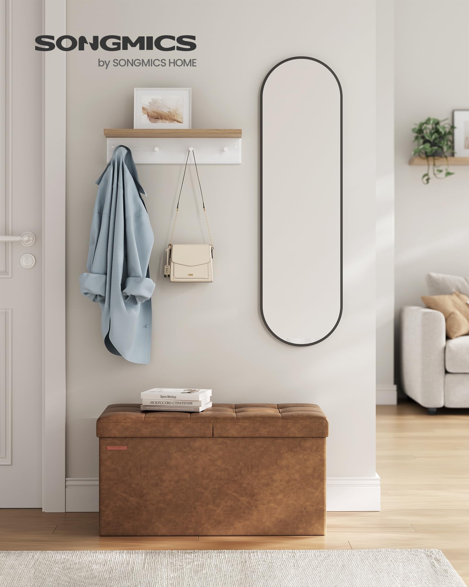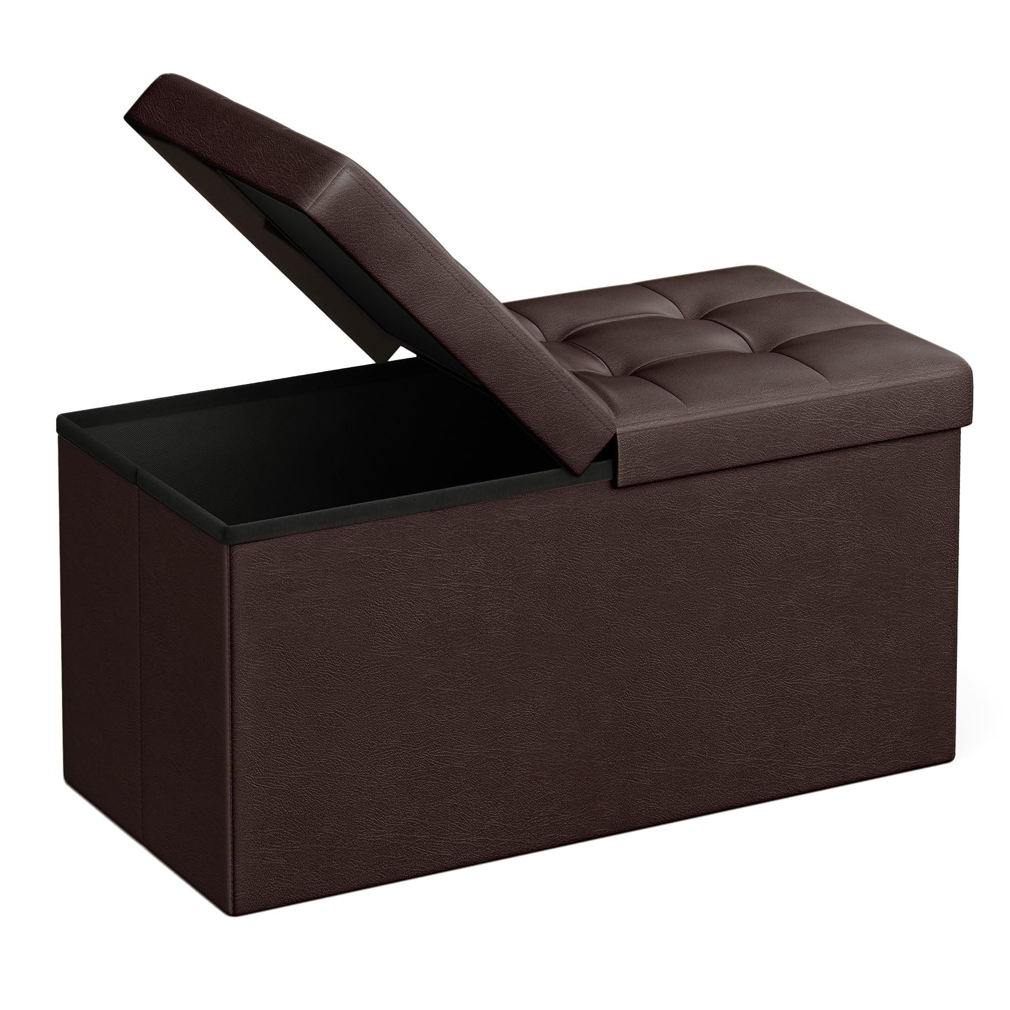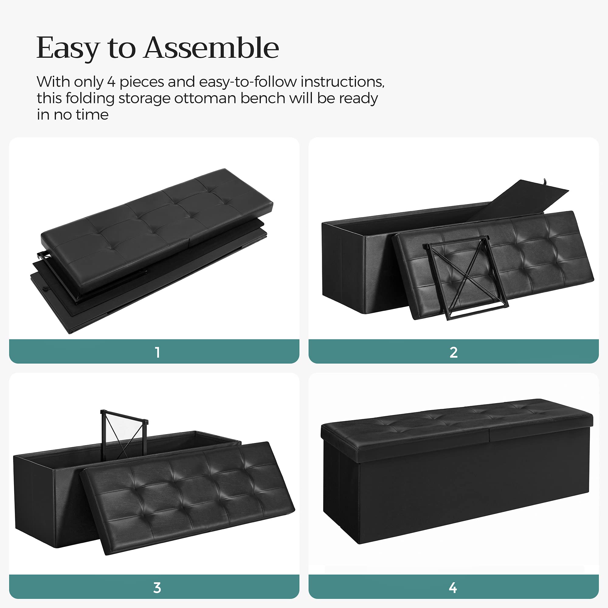 SONGMICS MAZIE Collection - 30 Inches Storage Ottoman Bench with Flipping Lid, Storage Chest Footstool, Load 660 lb, for Entryway, Living Room, Bedroom, Synthetic Leather, Black ULSF45BK