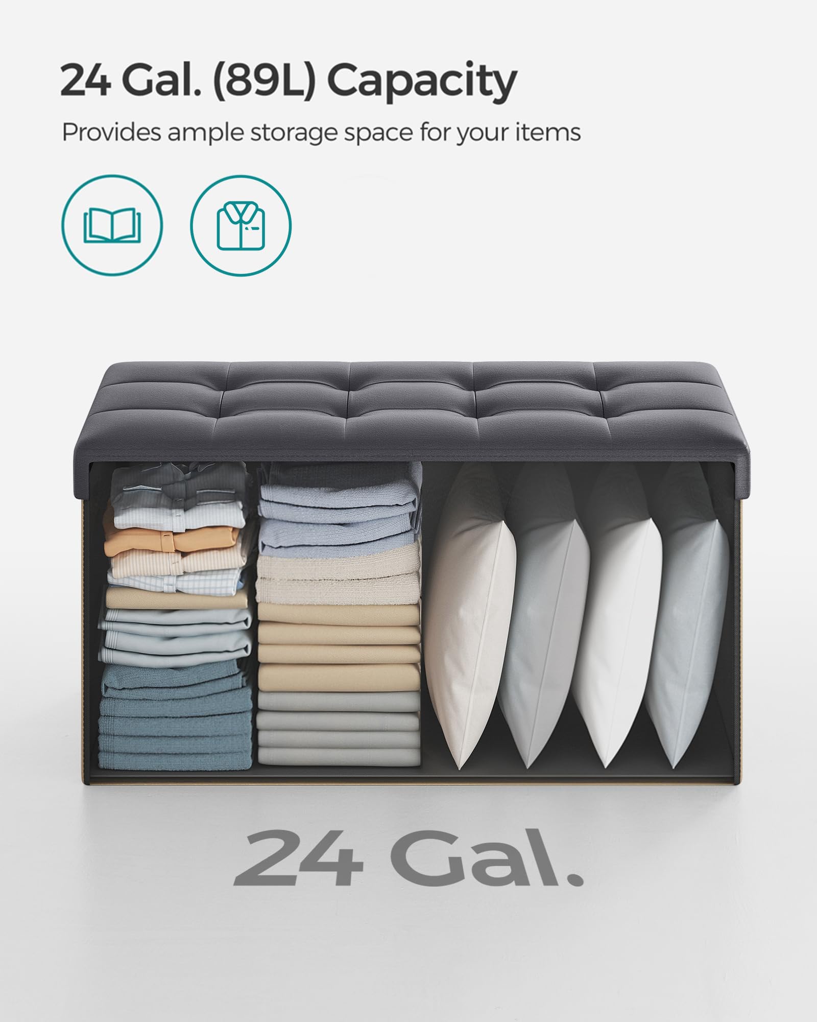 • 【BUILT TO LAST】Featuring sturdy MDF panels for the tops and sides, and a lid reinforced with metal corner guards, the folding storage bench can hold up to 660 lb (300 kg). Its solid construction ensures it will last for years to come