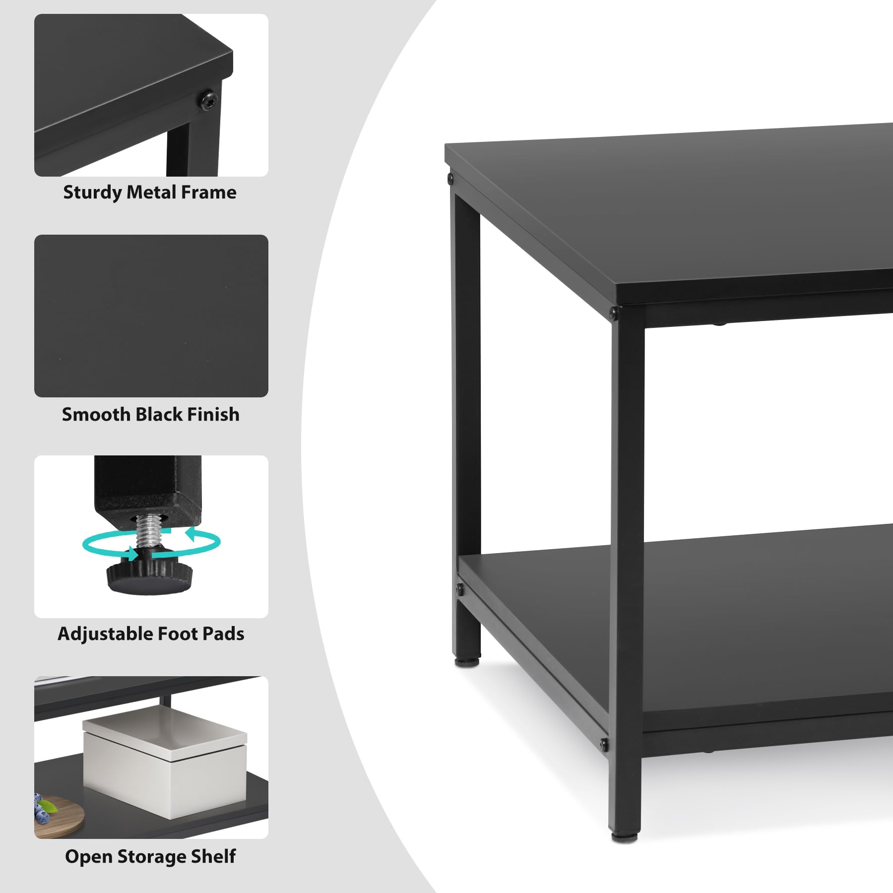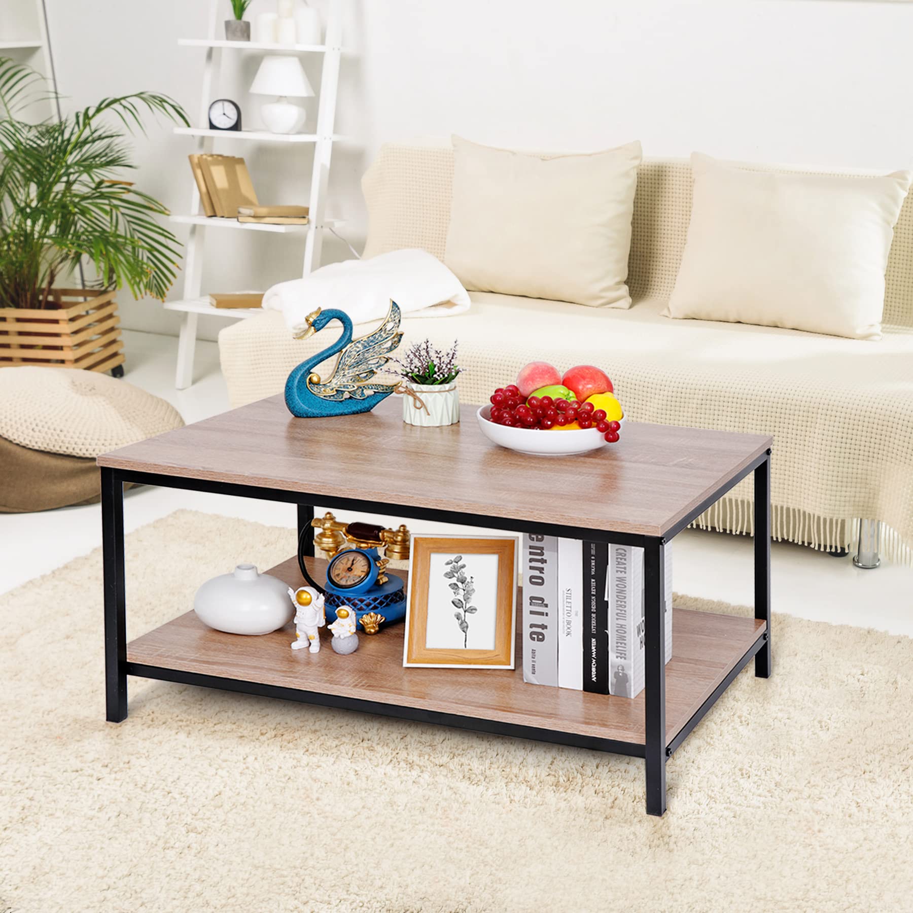 SUPER DEAL 2-Tier Industrial Coffee Table with Storage Shelf for Small Apartment Living Room, Rectangle Wood and Stable Metal TV Stand Side End Table, Rustic Brown